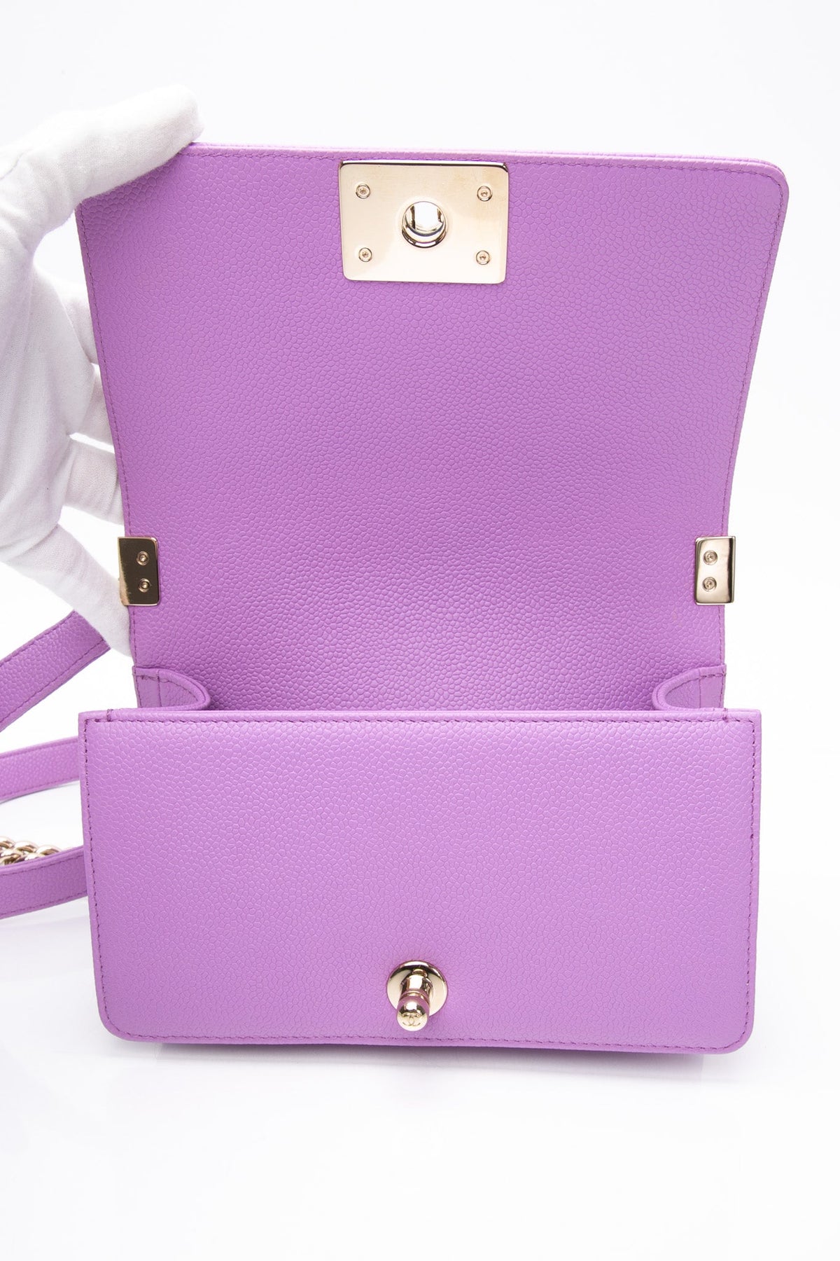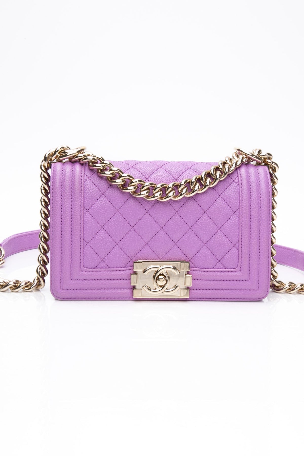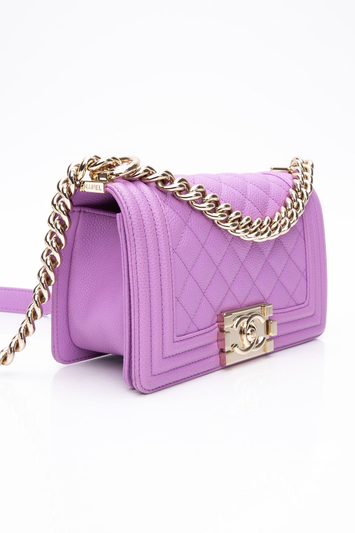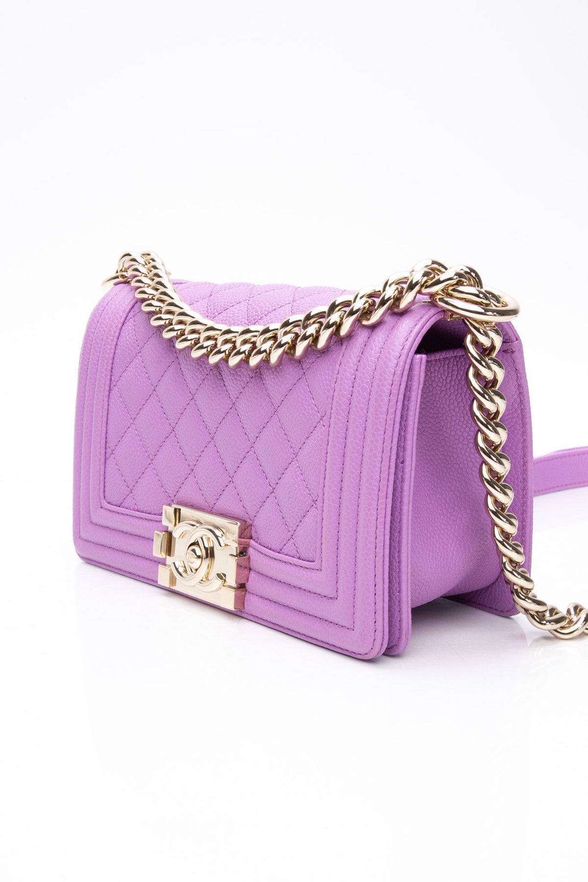 CHANEL Purple Caviar Quilted Boy Small Flap Bag