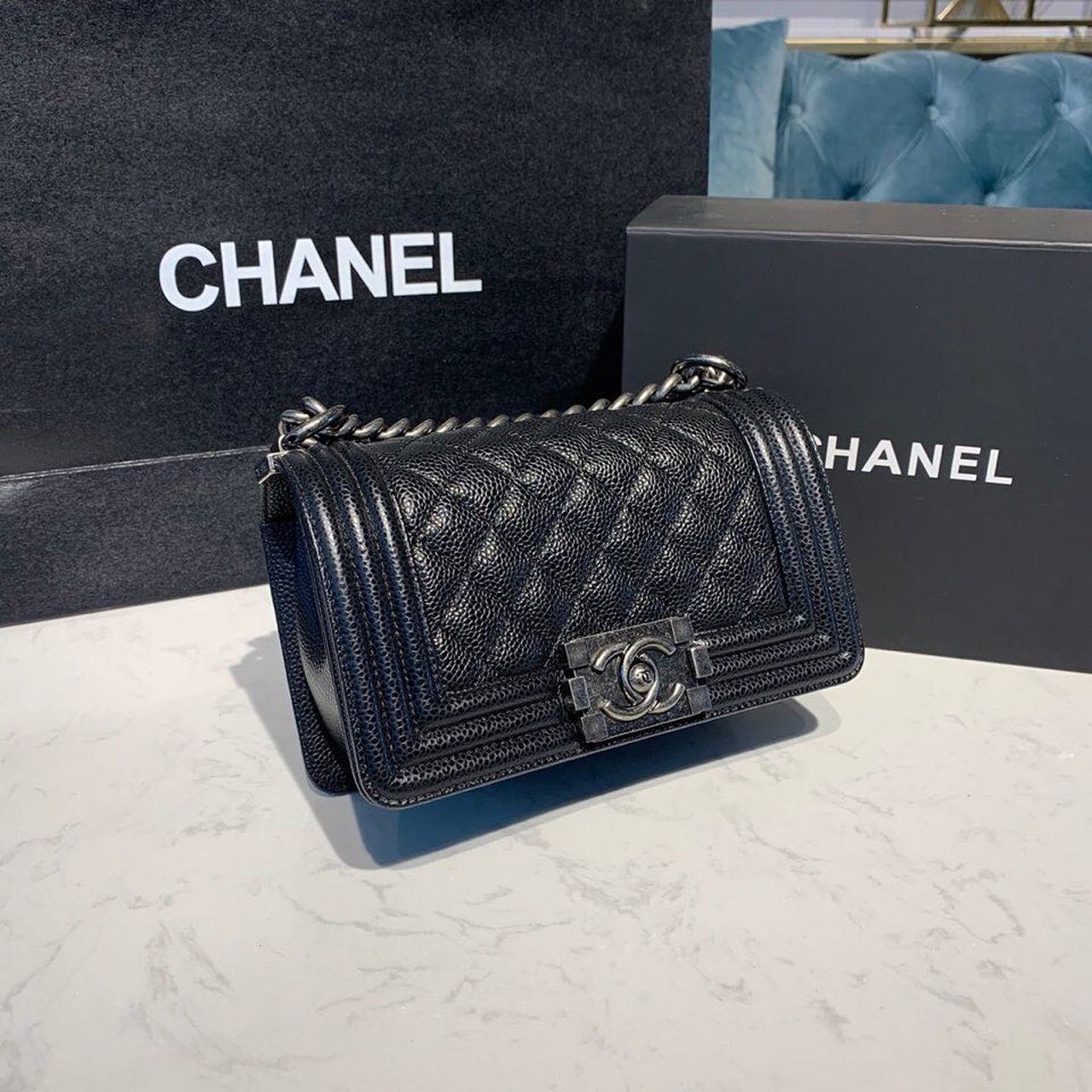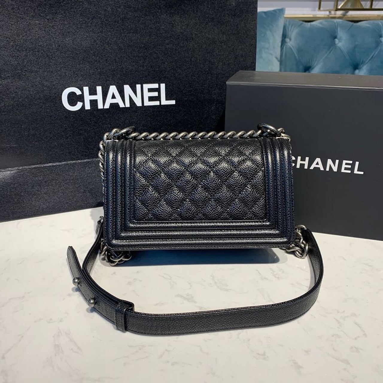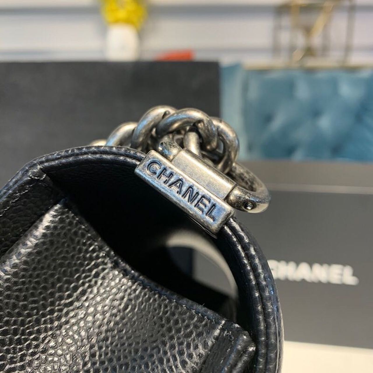 Chanel Quilted Boy Bag 20cm Caviar Leather Antique Silver Hardware Fall/Winter Act 1 Collection Black