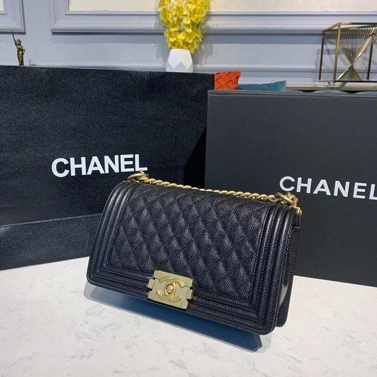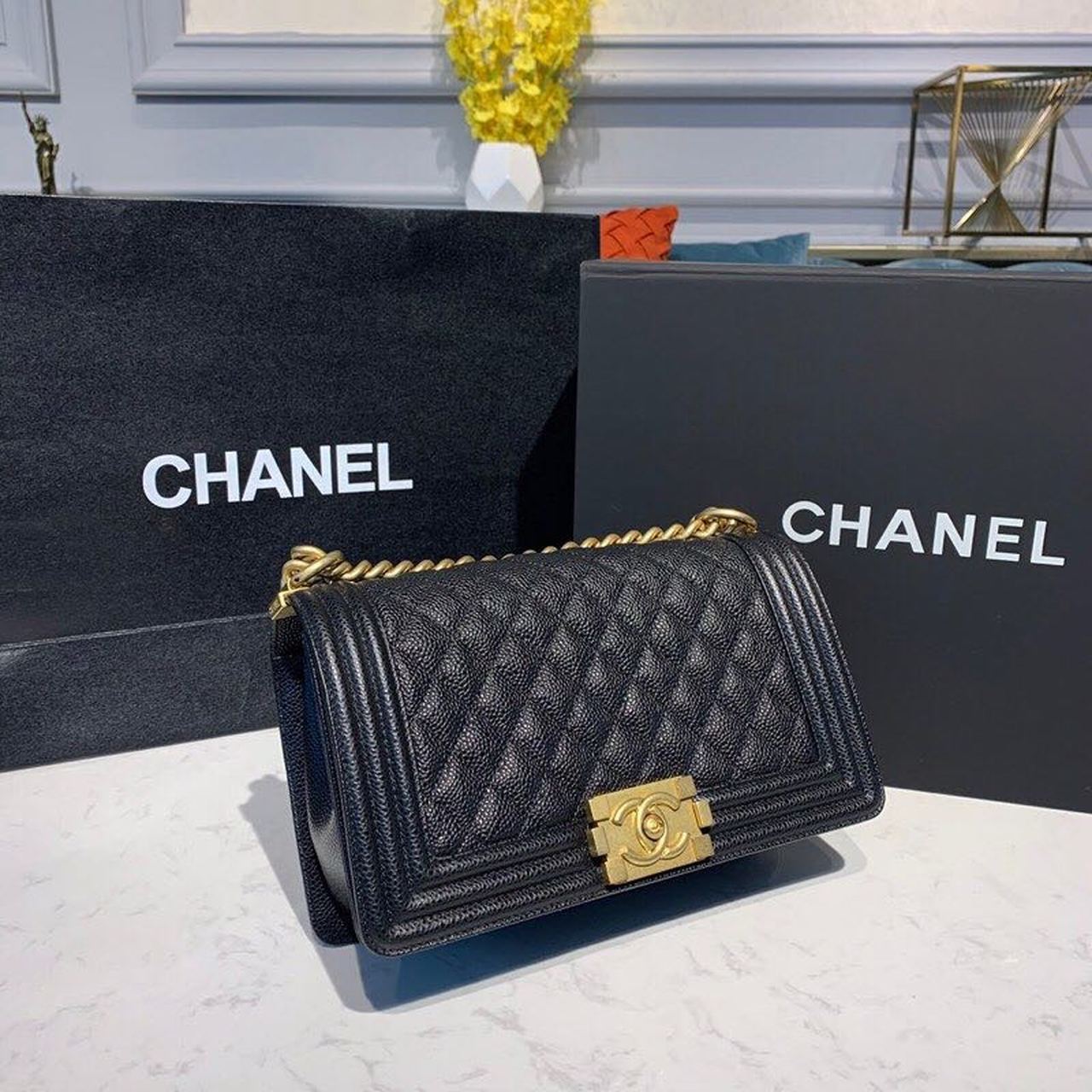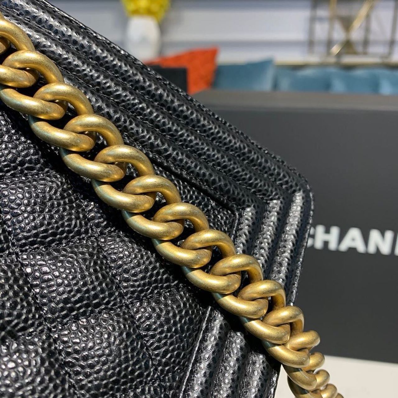 Chanel Quilted Boy Bag 25cm Caviar Leather Antique Gold Hardware Fall/Winter Act 1 Collection Black
