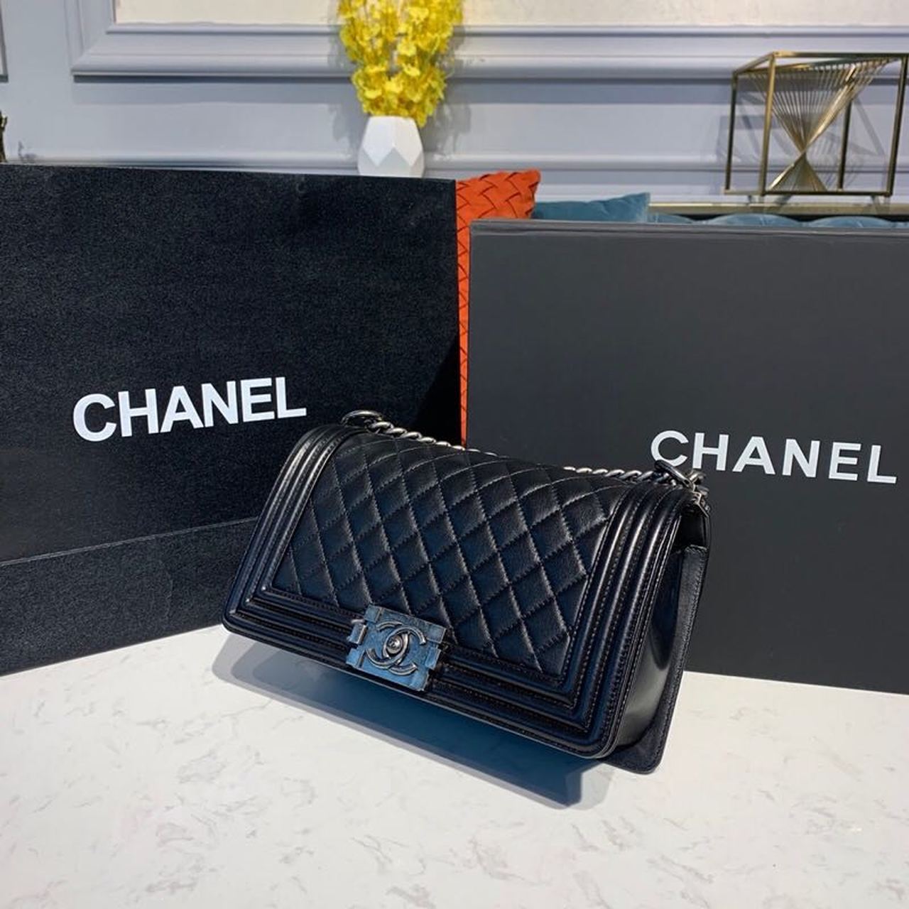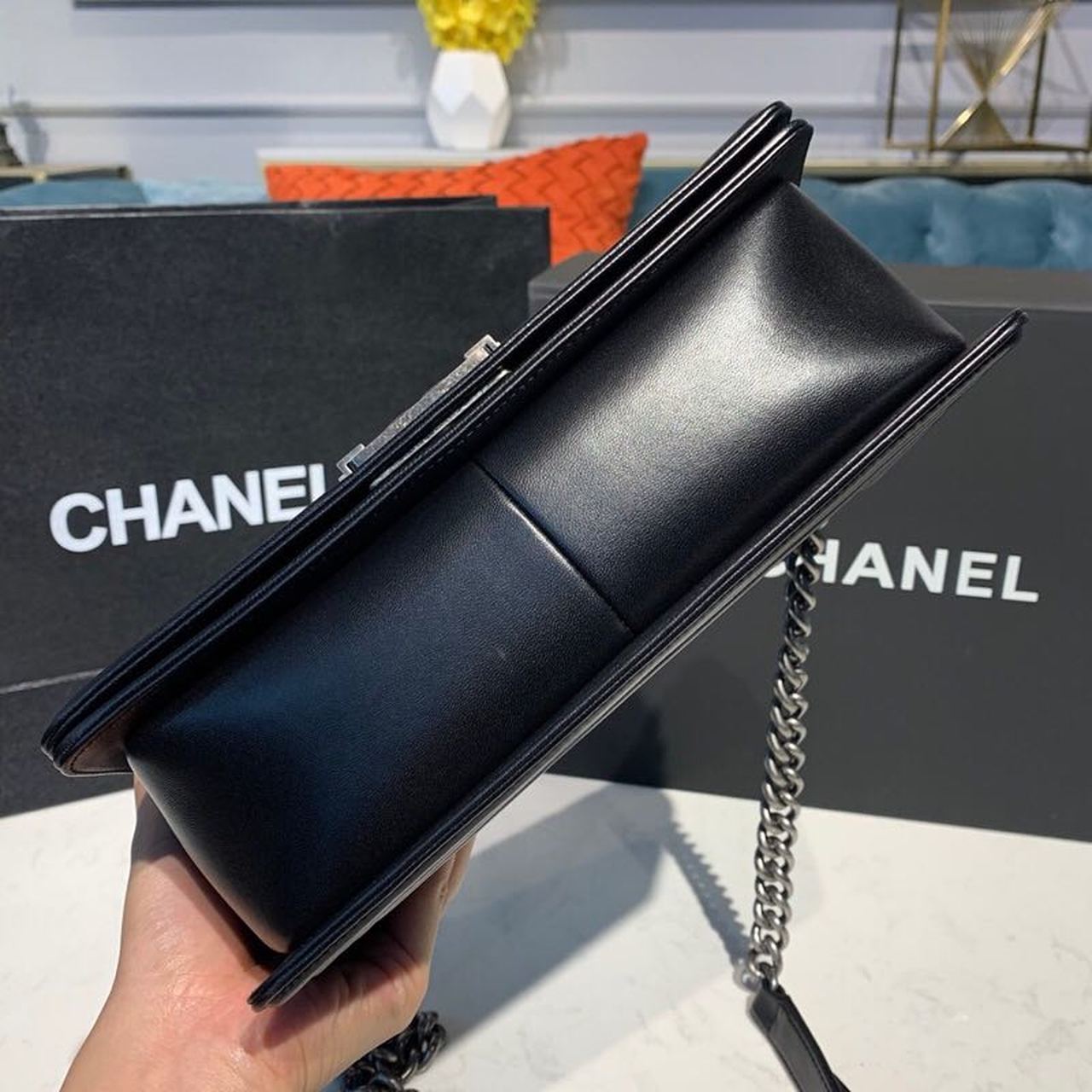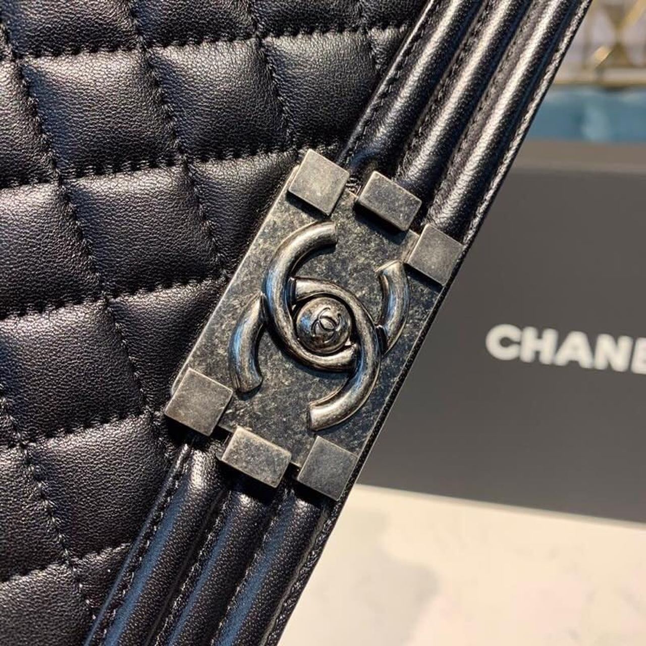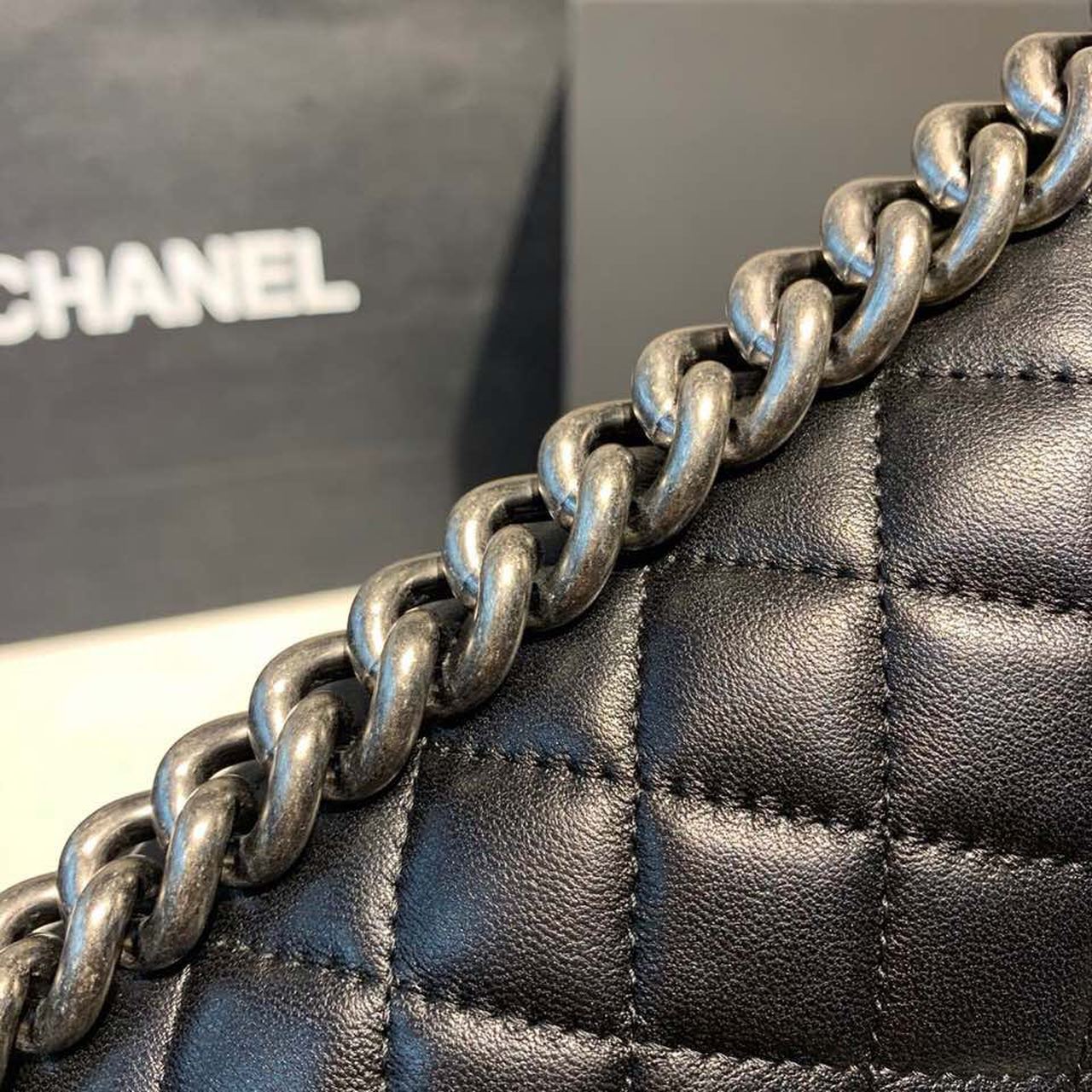 Chanel Quilted Boy Bag 25cm Lambskin Leather Antique Silver Hardware Fall/Winter Act 1 Collection Black