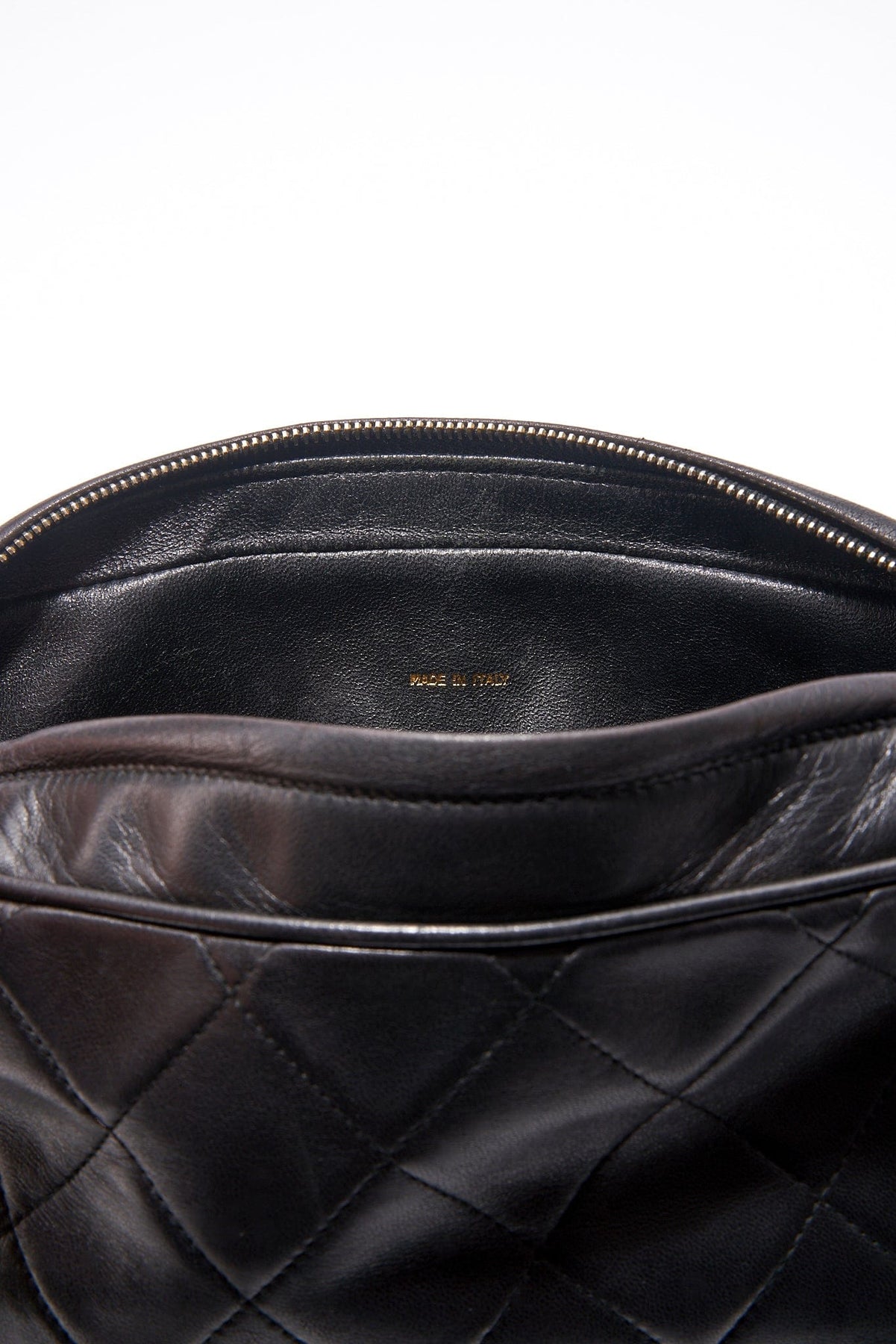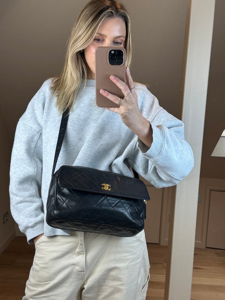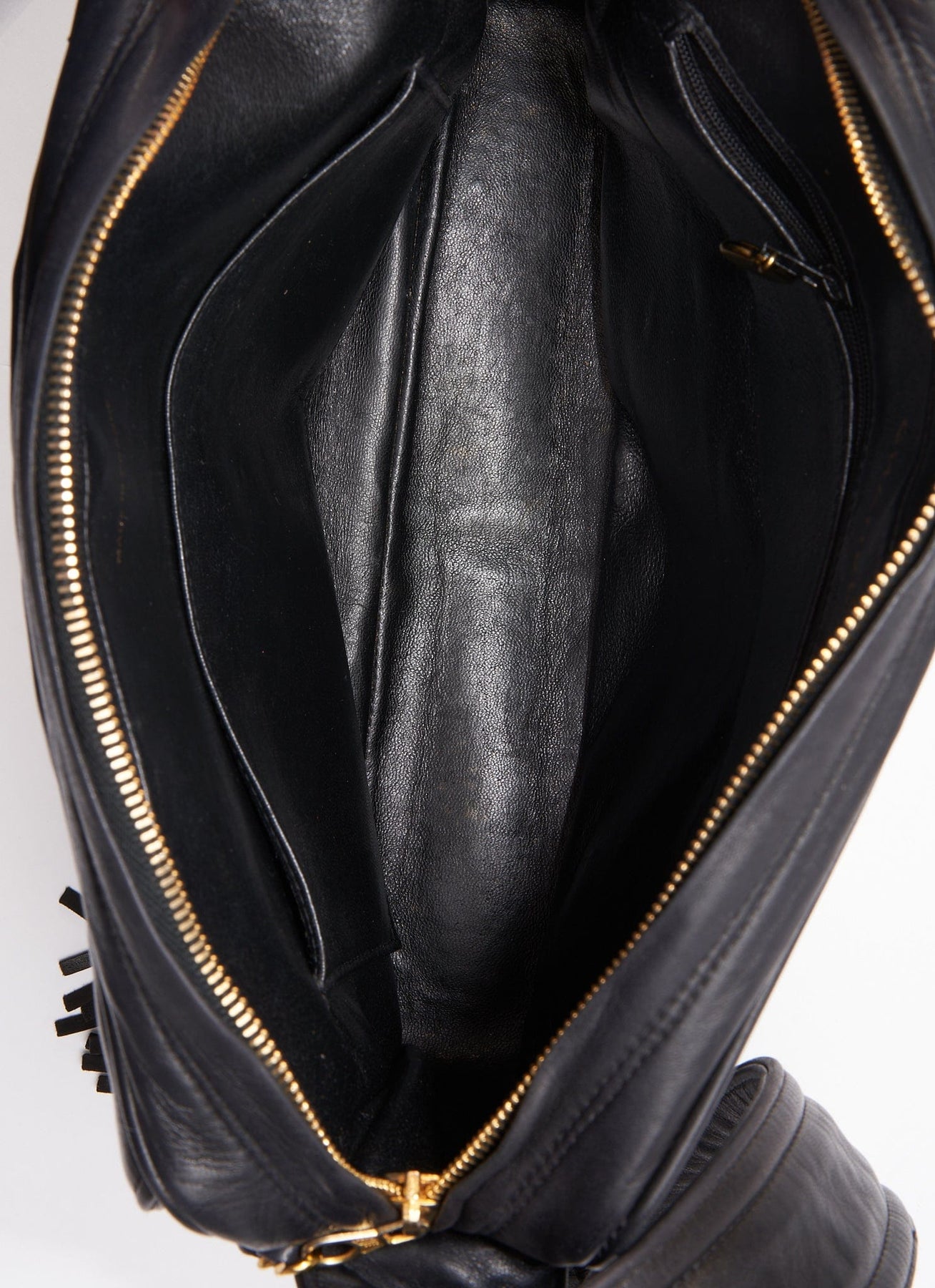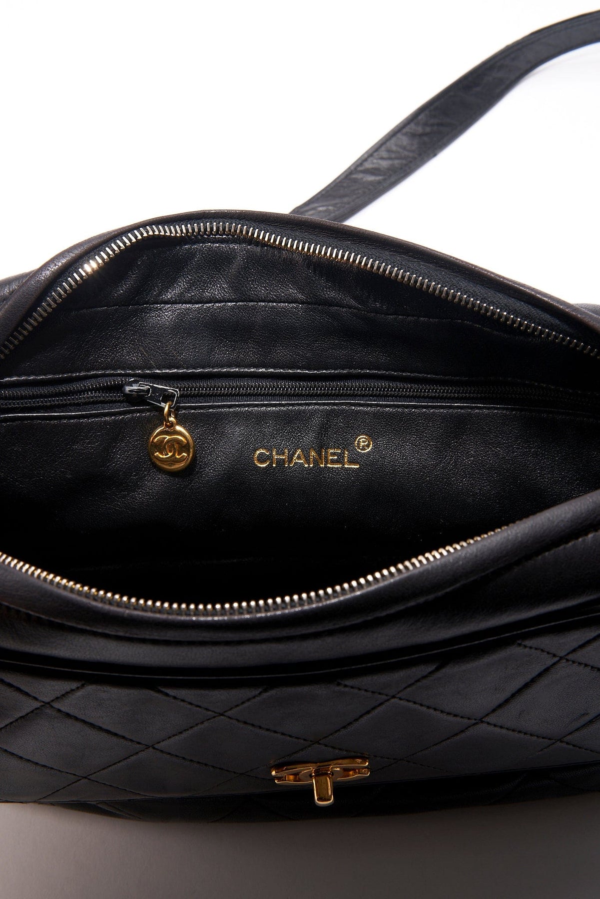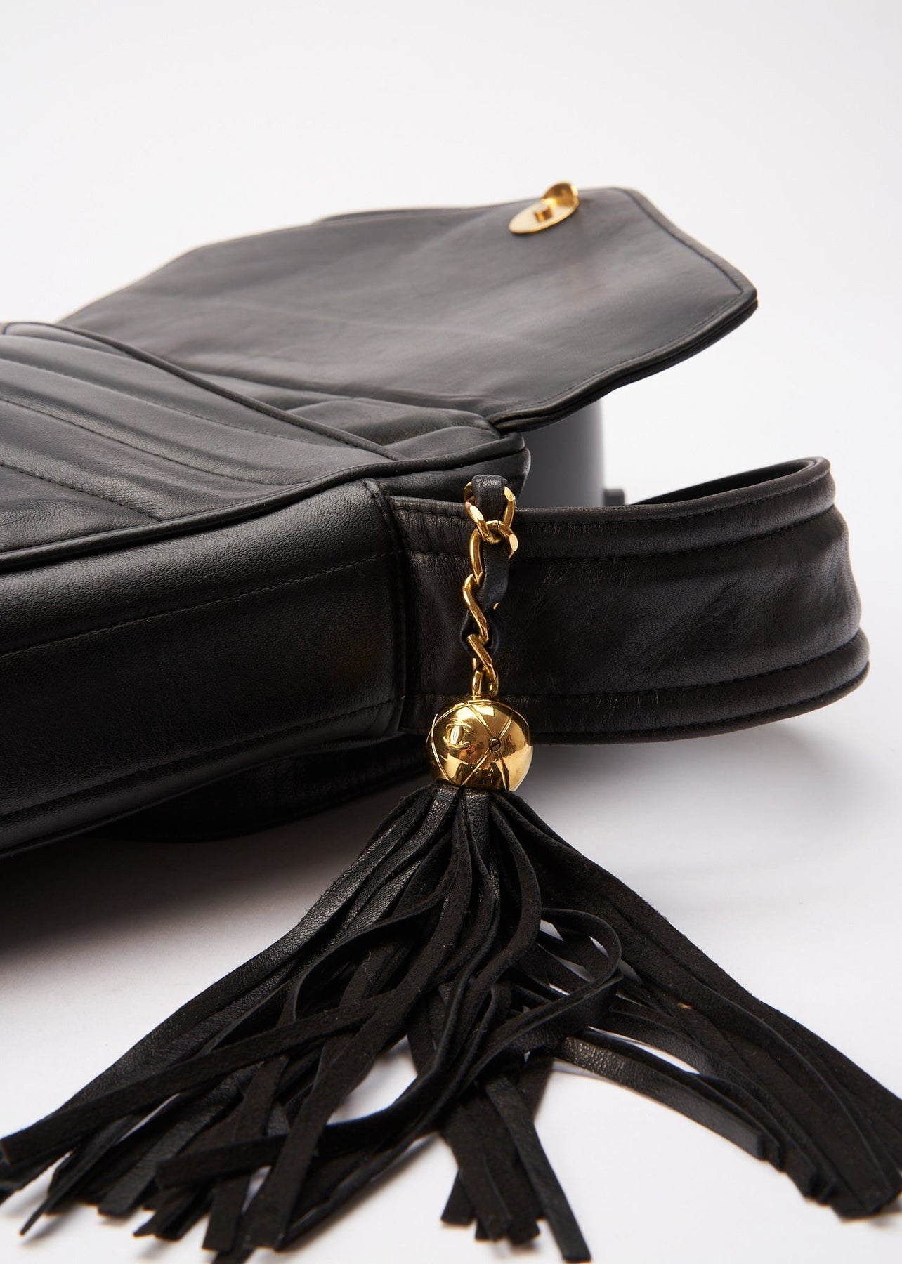 Regular price $2,020.00 Sale price $430.00 Save $1,590.00This Chanel camera bag is crafted from quilted black lambskin, featuring a Chanel CC tassel and 24k gold plates hardware.