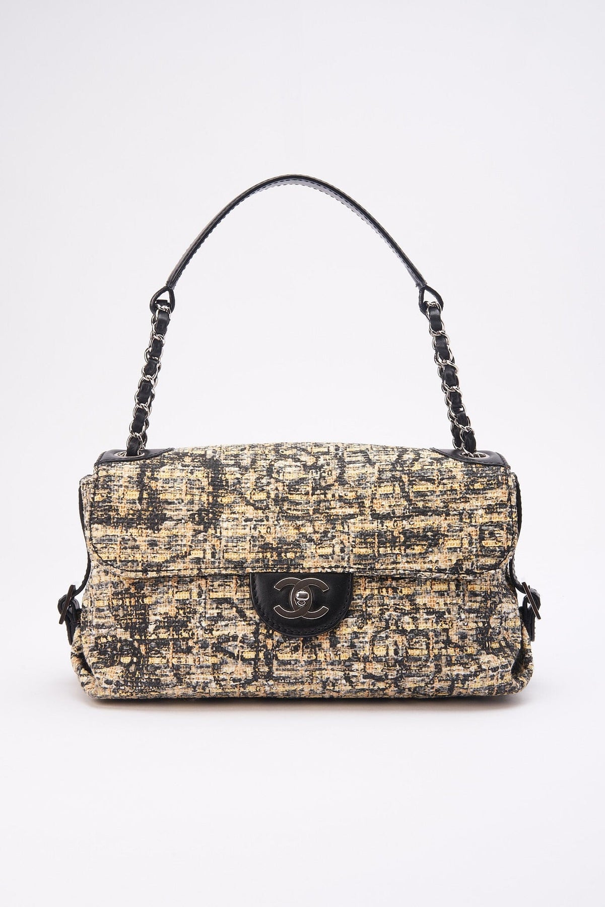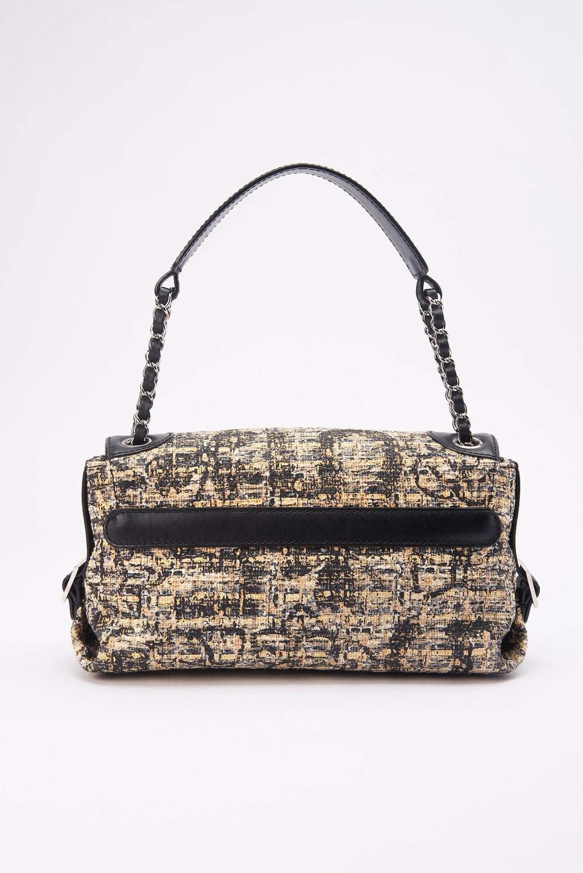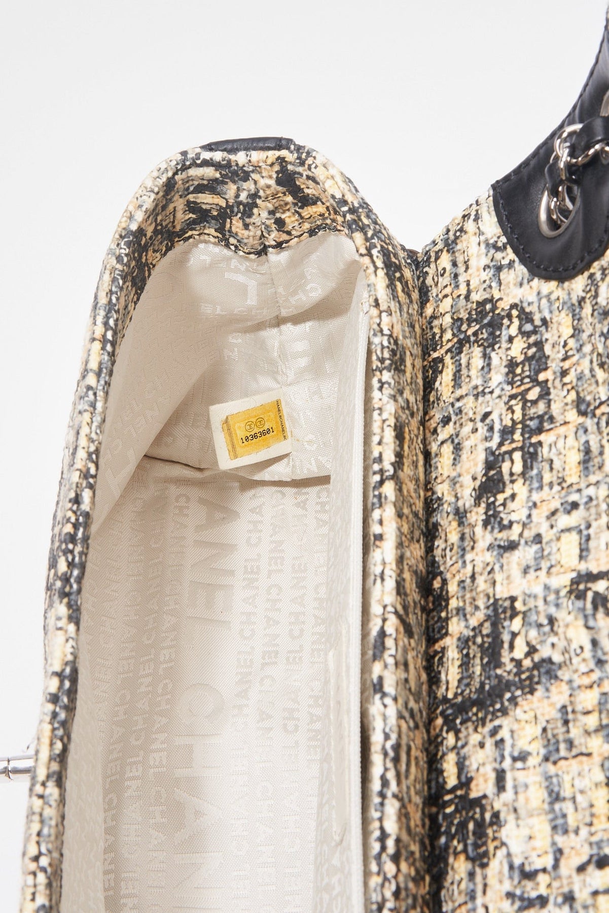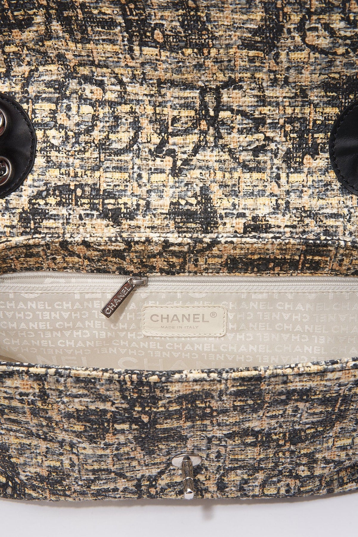 Regular price $1,980.00 Sale price $430.00 Save $1,550.00A very special Chanel, crafted from a tweed effect canvas with black print and black leather trim.