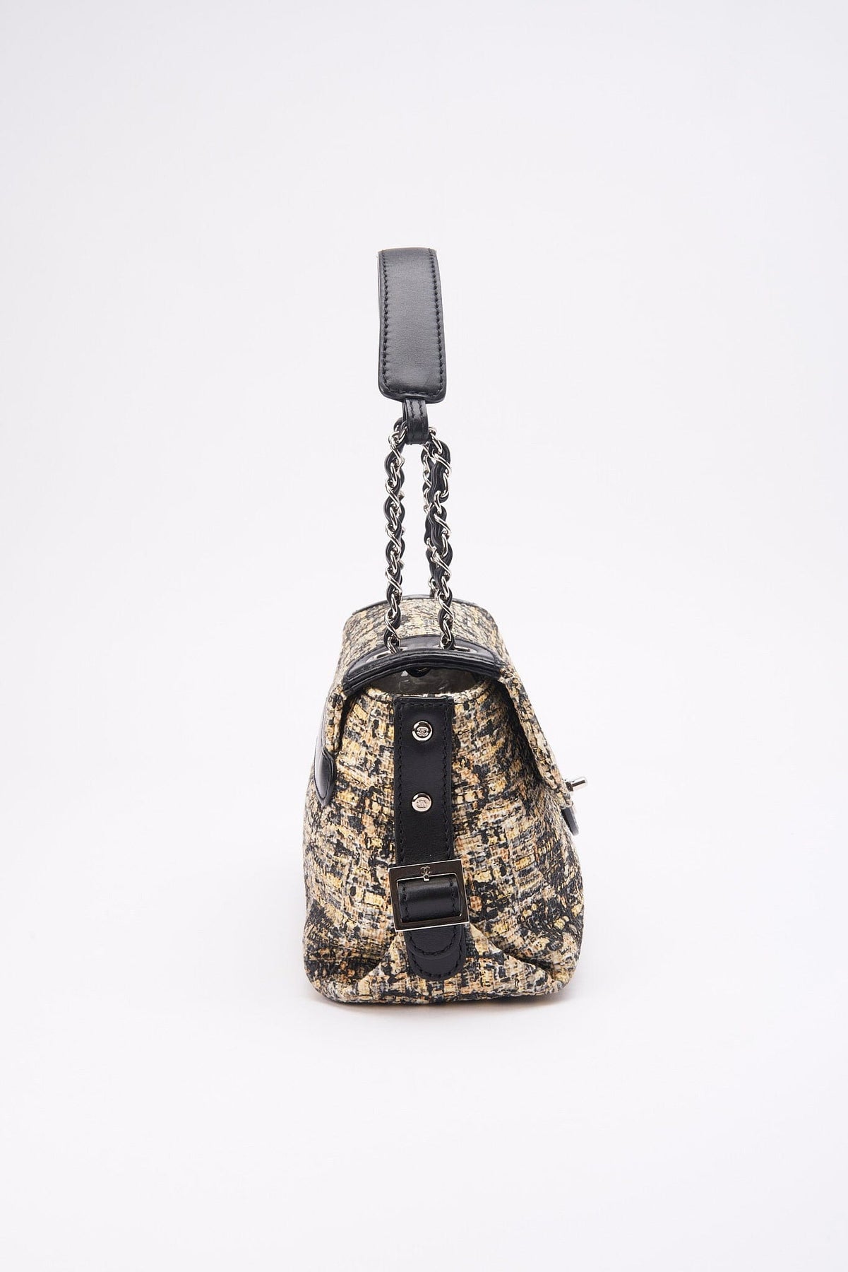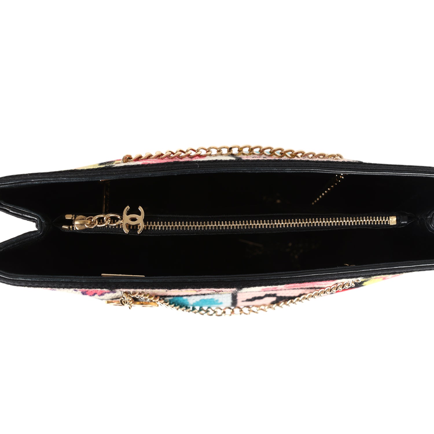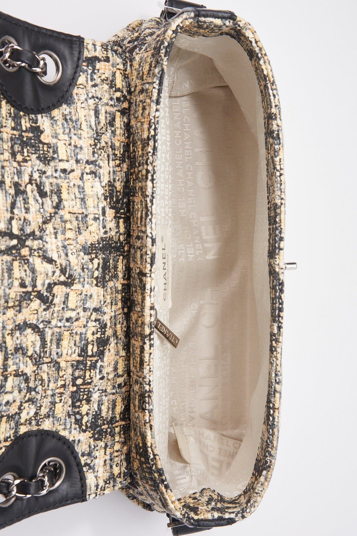 Regular price $1,980.00 Sale price $430.00 Save $1,550.00A very special Chanel, crafted from a tweed effect canvas with black print and black leather trim.