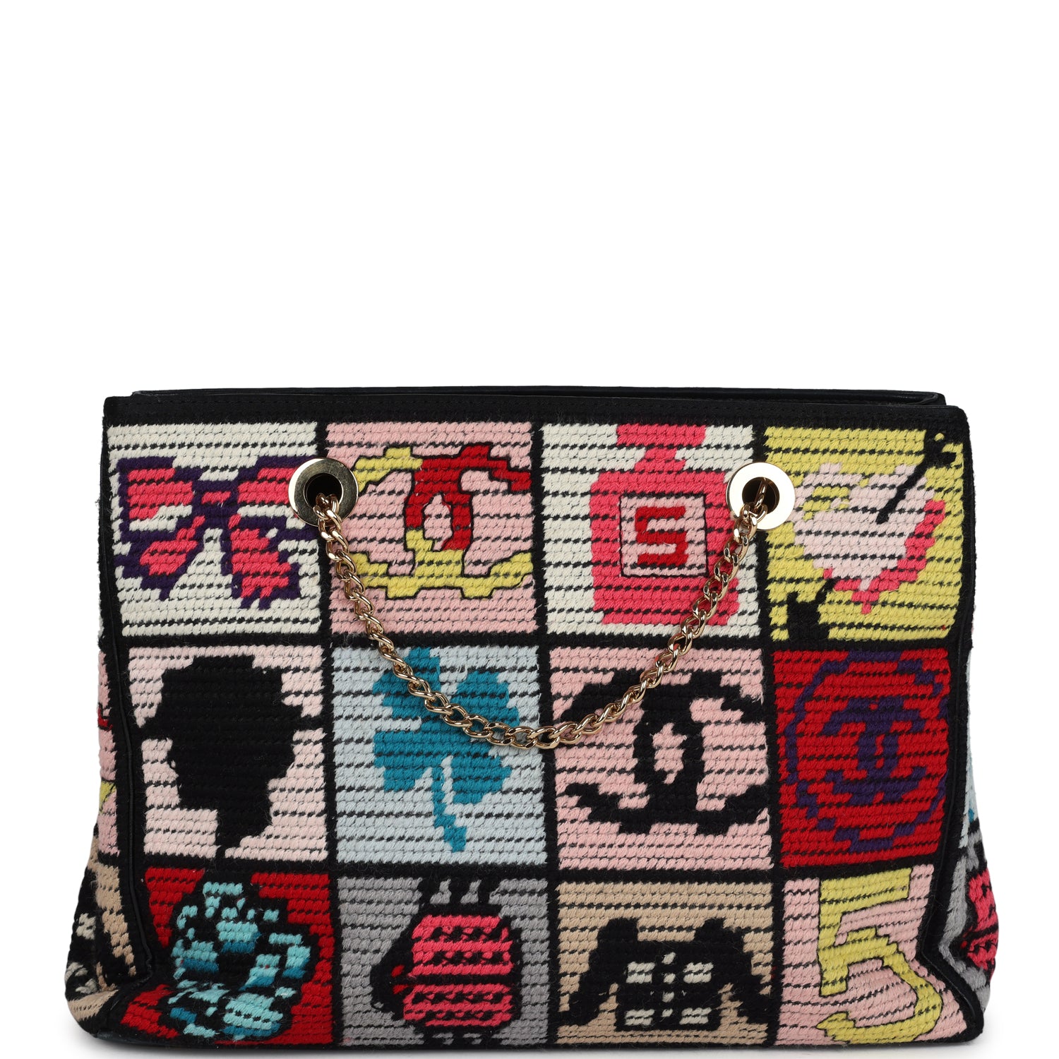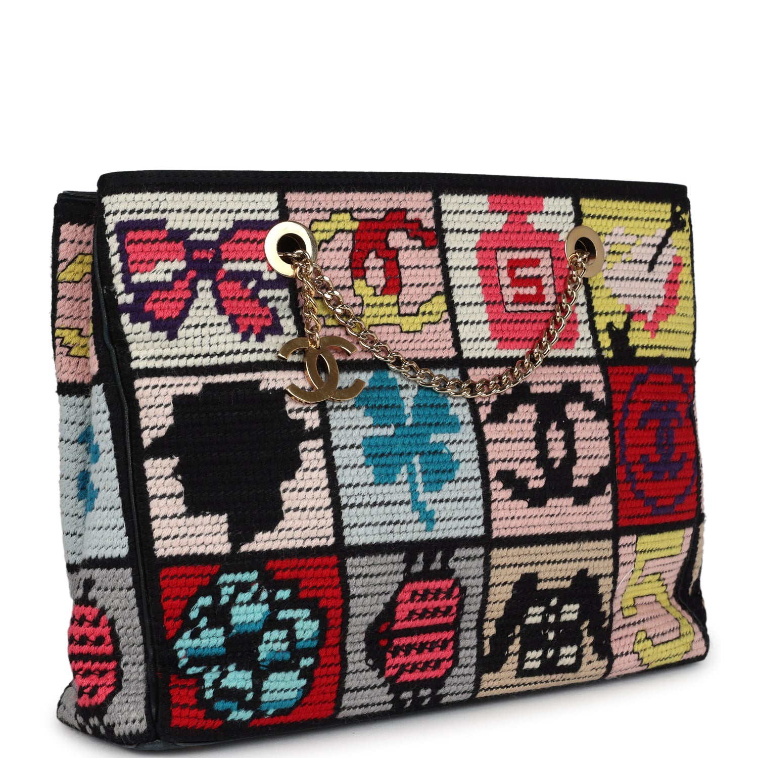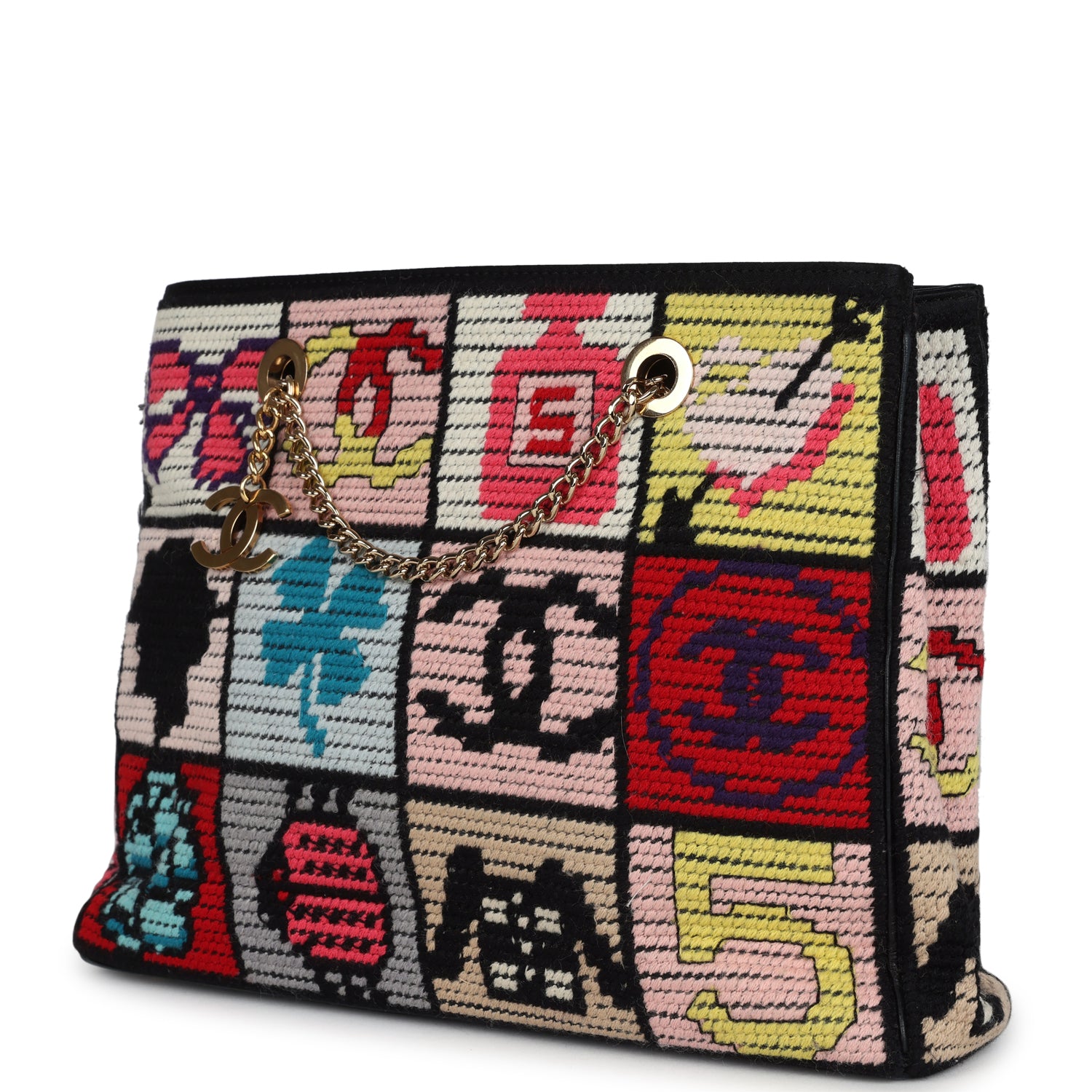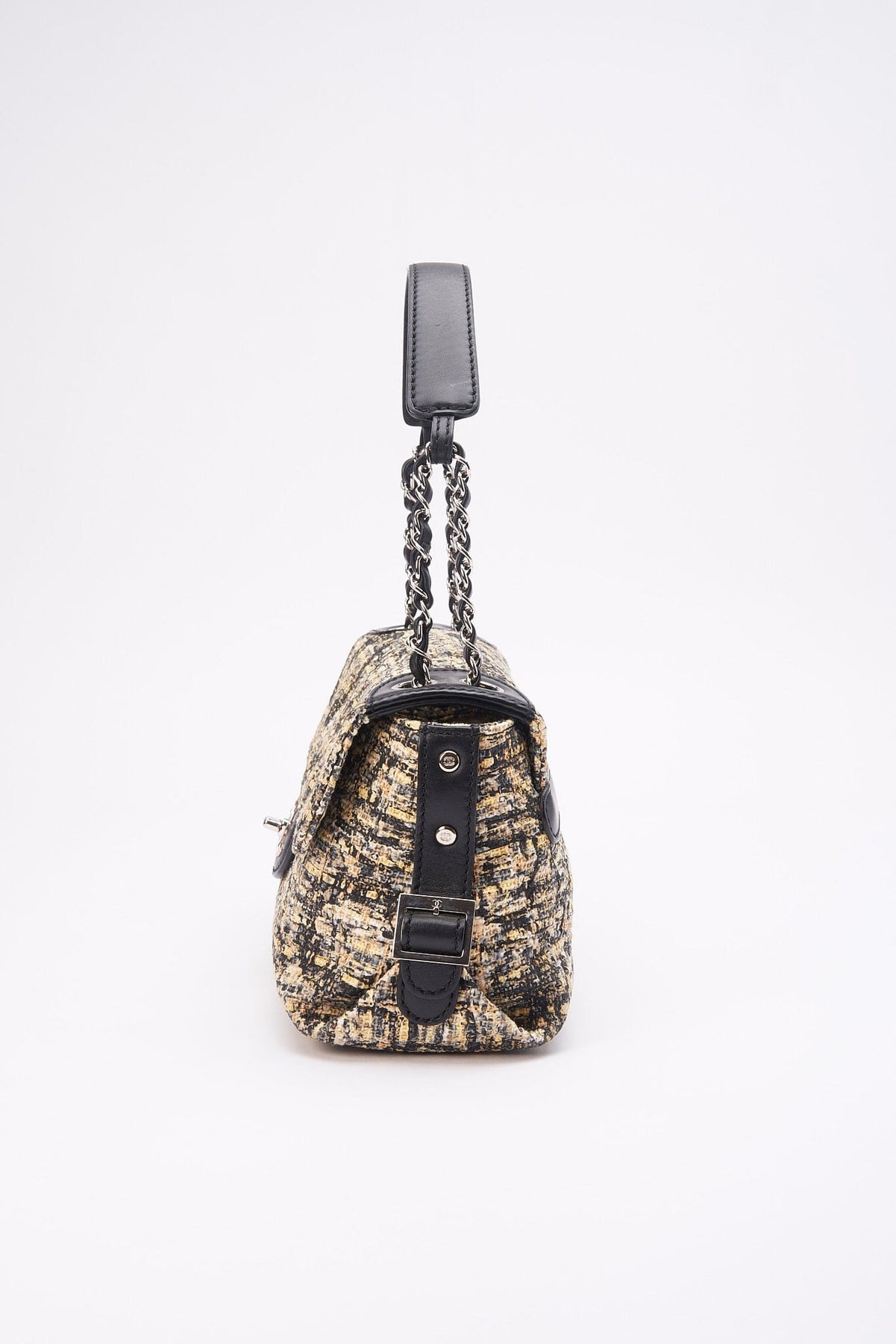 Regular price $1,980.00 Sale price $430.00 Save $1,550.00A very special Chanel, crafted from a tweed effect canvas with black print and black leather trim.