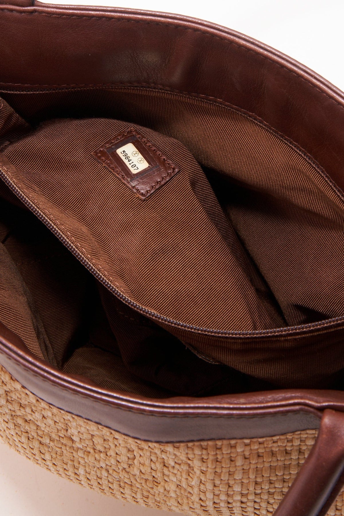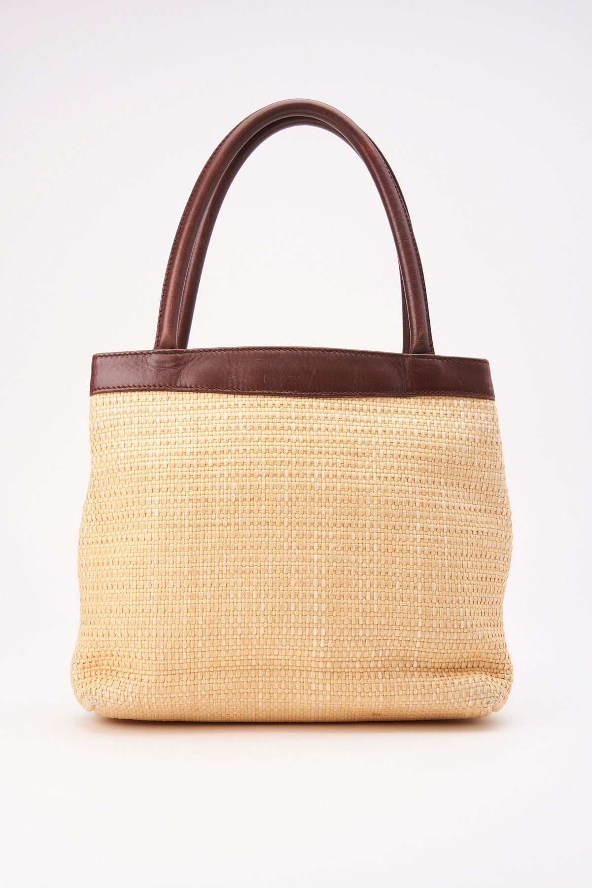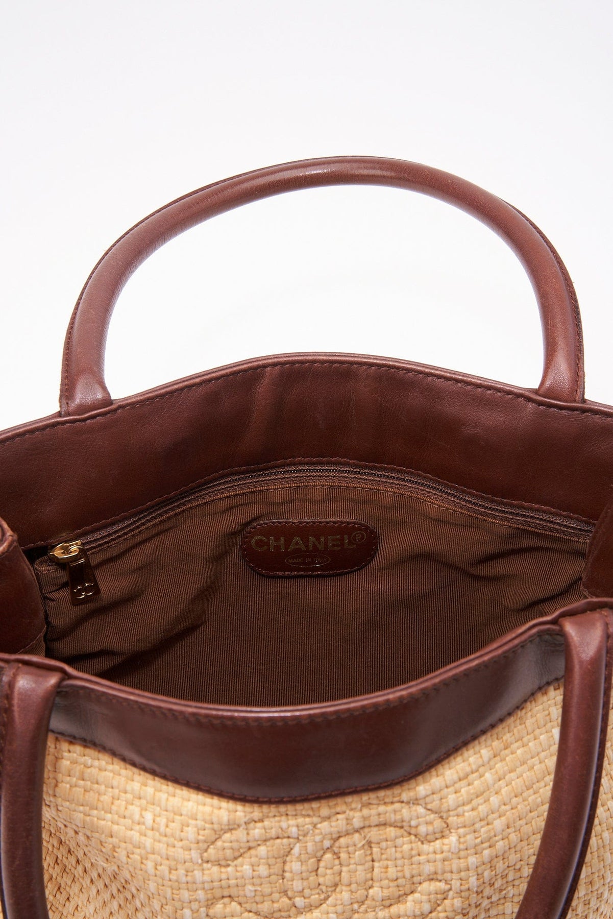 Chanel Raffia Tote Bag With Brown Leather Handles