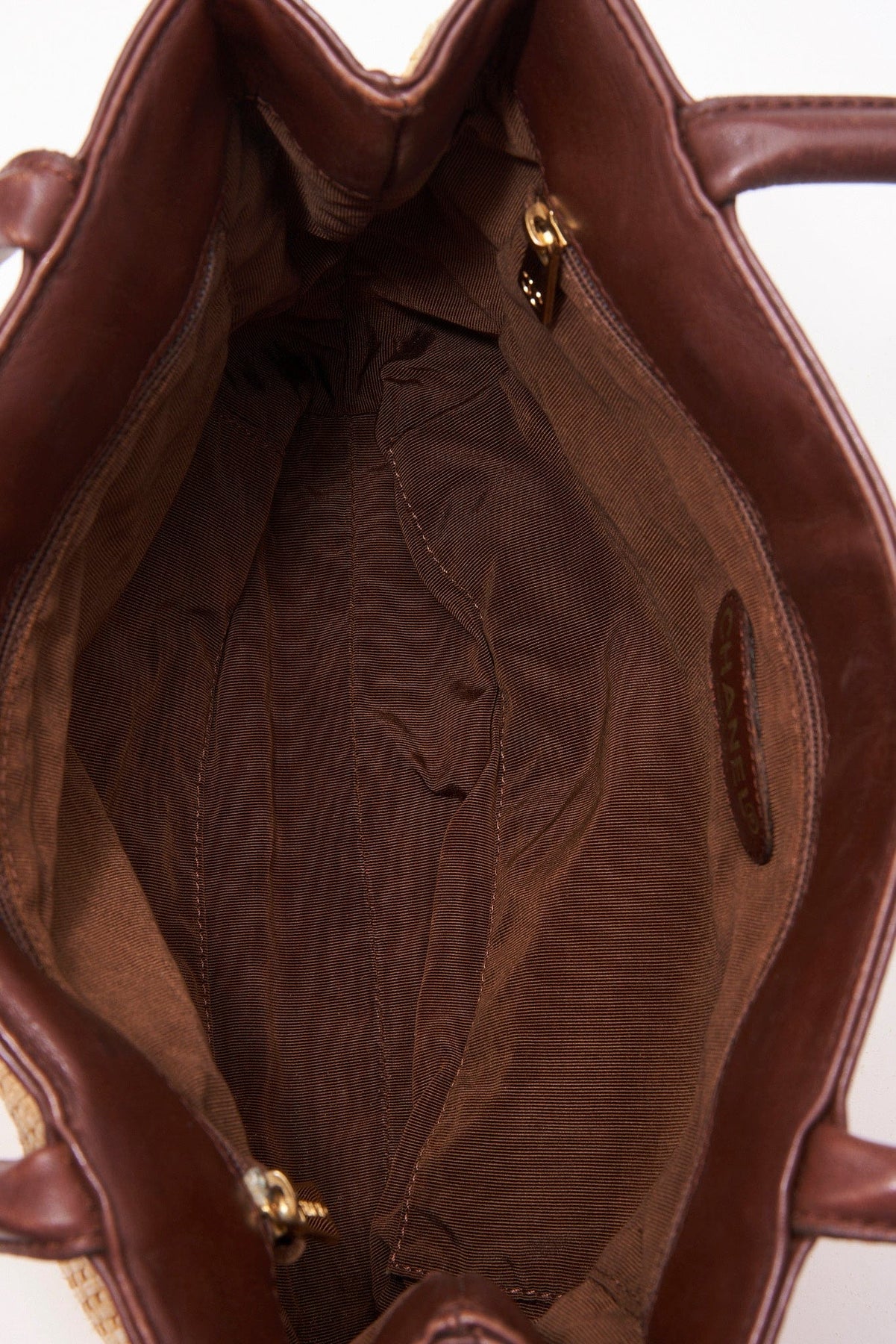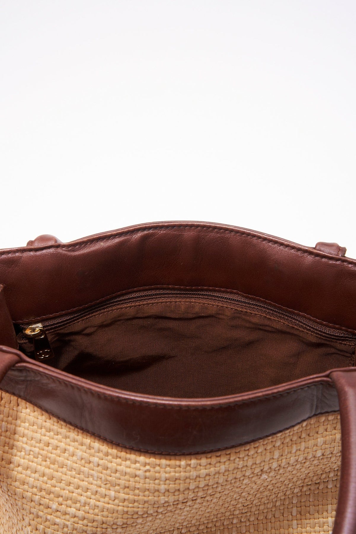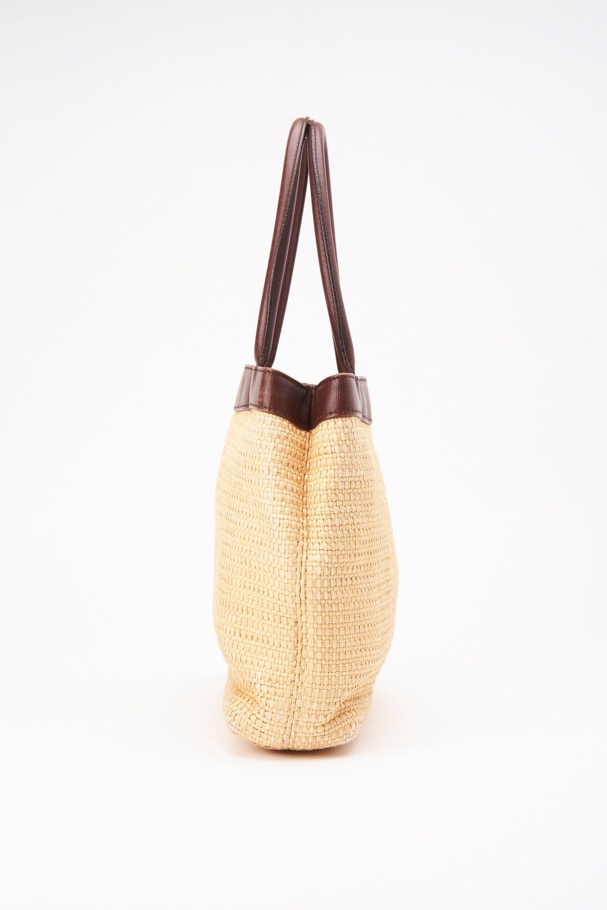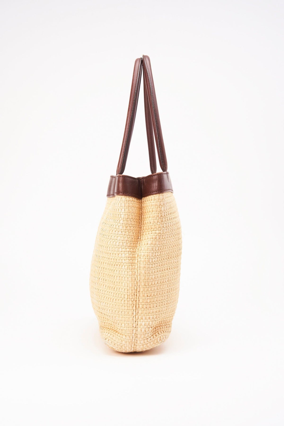 Chanel Raffia Tote Bag With Brown Leather Handles
