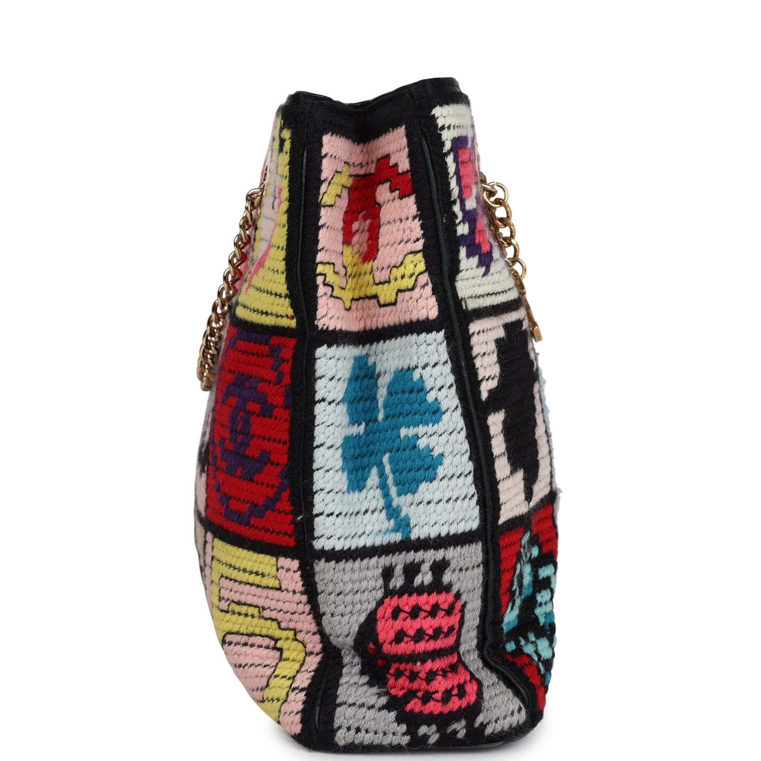 Chanel Printed Canvas Flap Bag with Black Leather Trim
