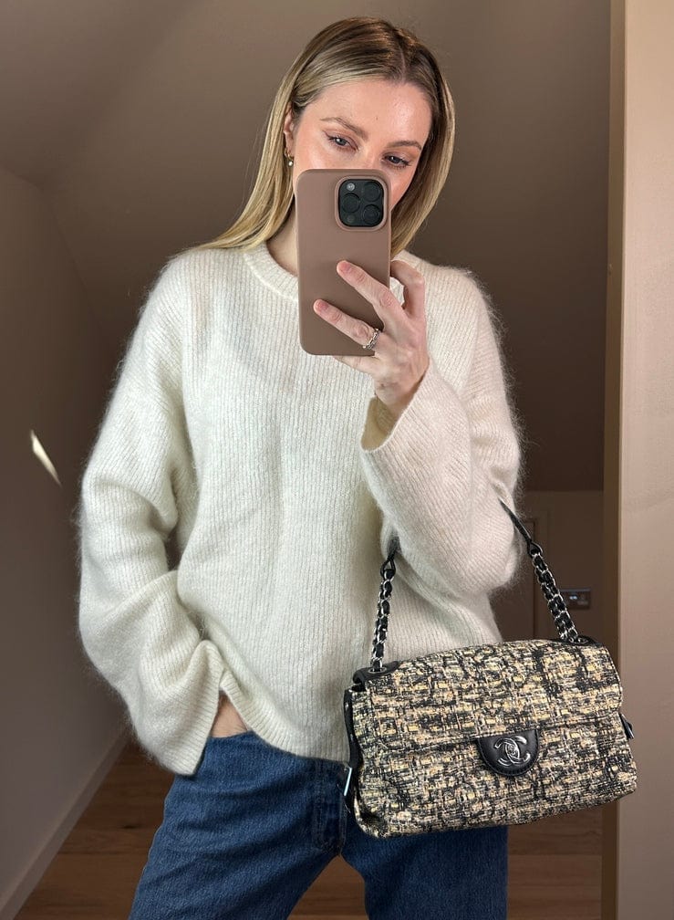 The front pocket is secured with the famous CC twist lock. Inside the bag has a leather lining and there is a further zipped pocket and slip pocket for your valuables.