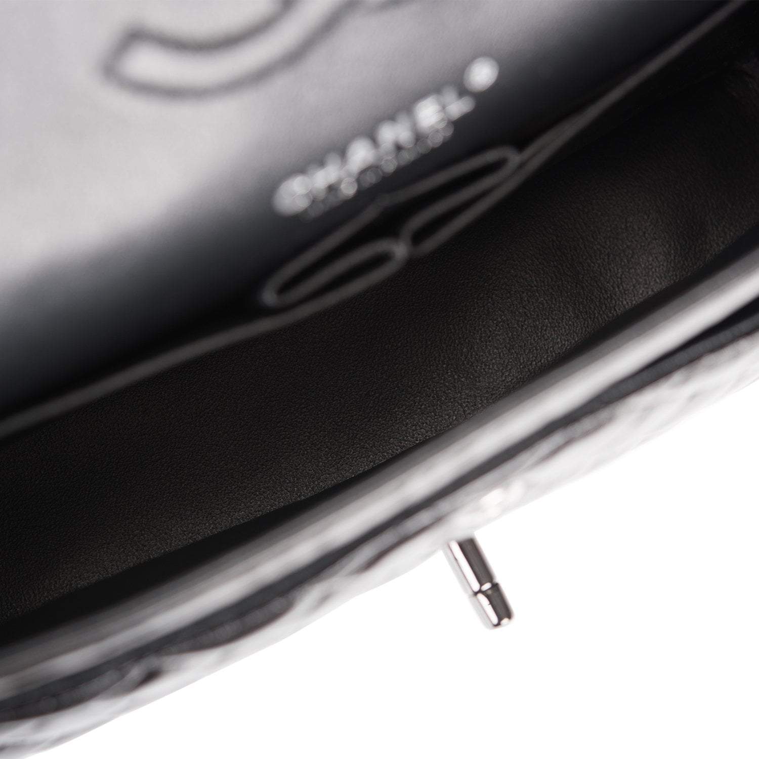 - Black quilted caviar leather in matte appearance