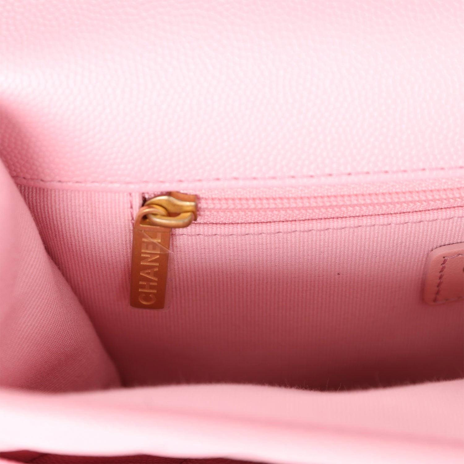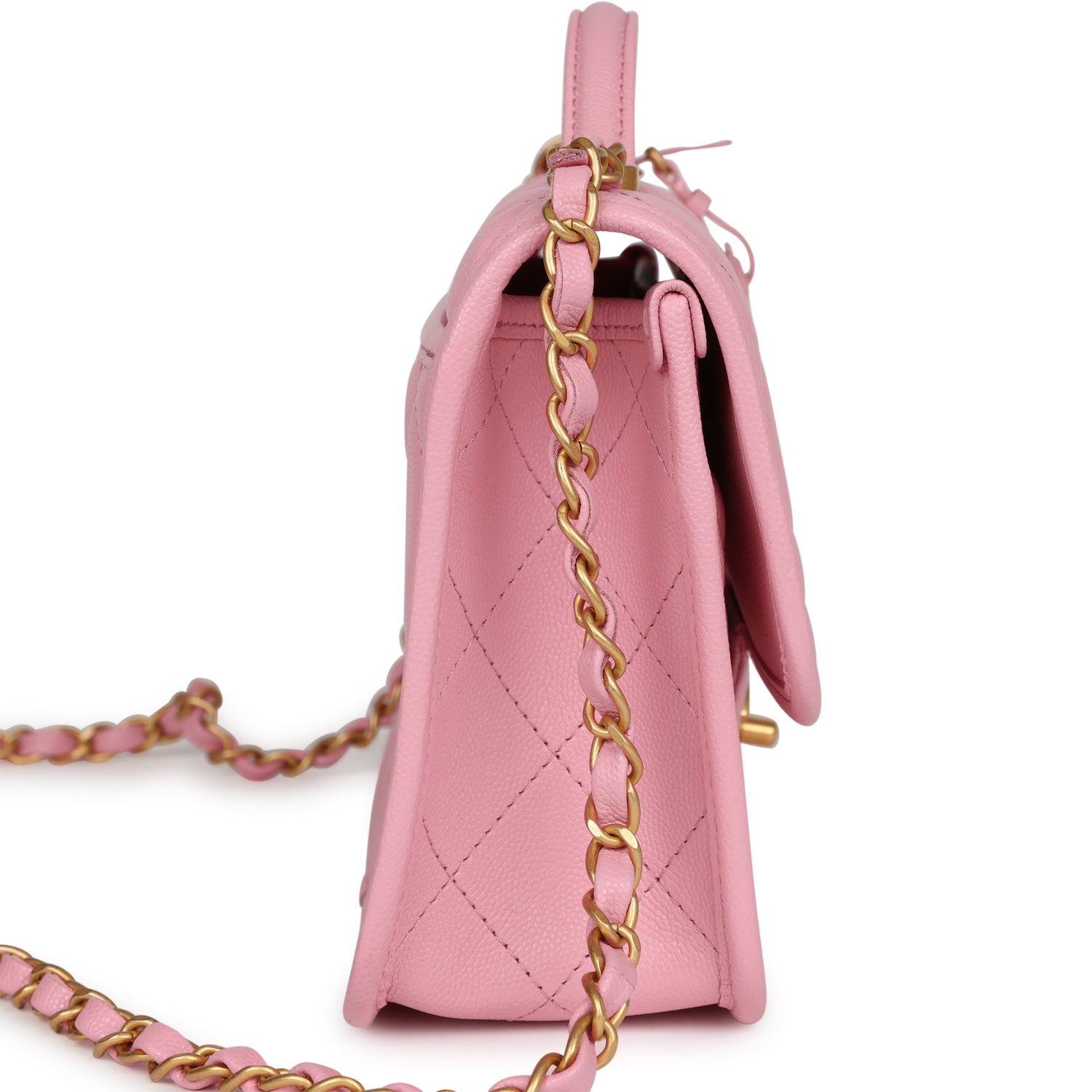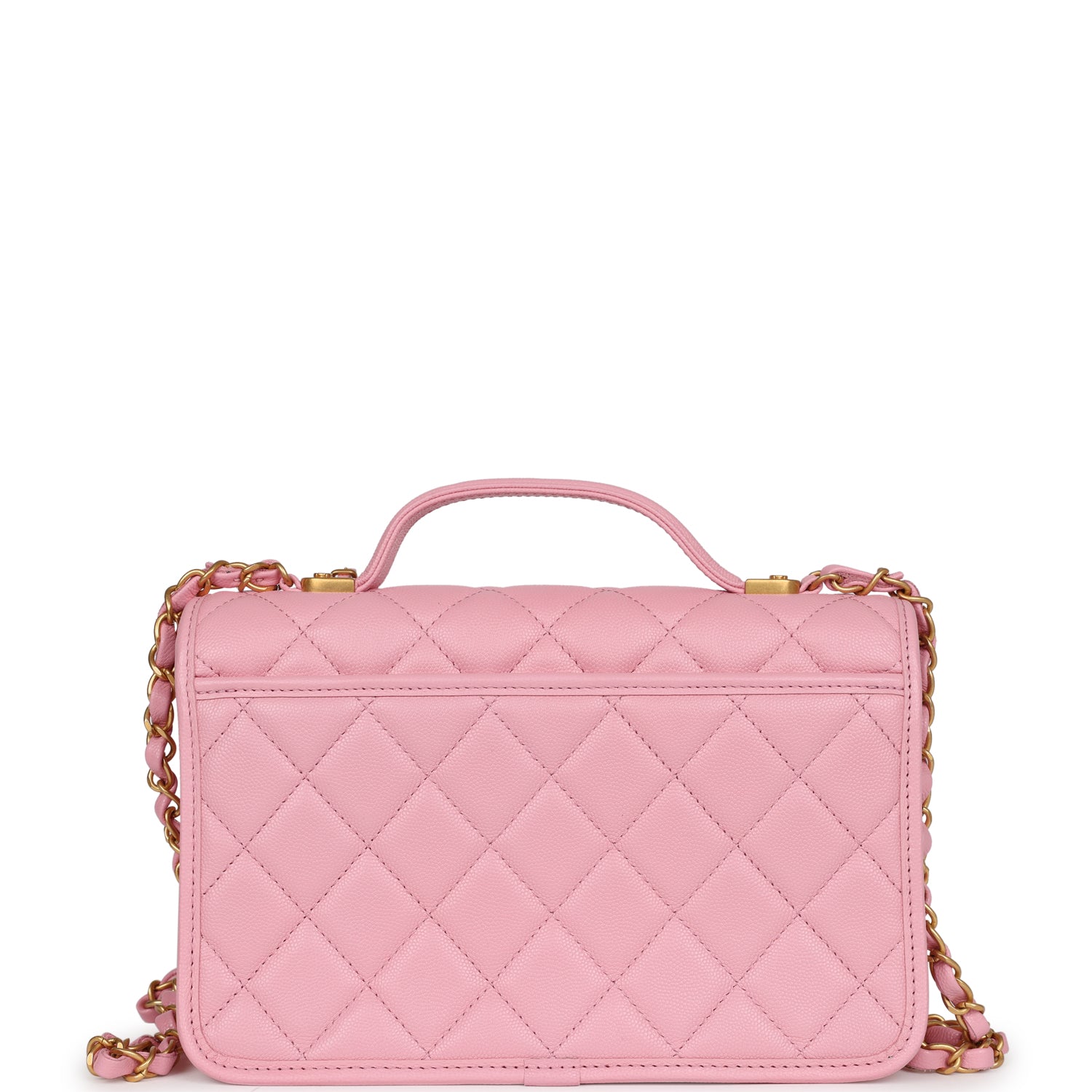 Chanel School Memory Top Handle Flap Bag Pink Caviar Antique Gold Hardware