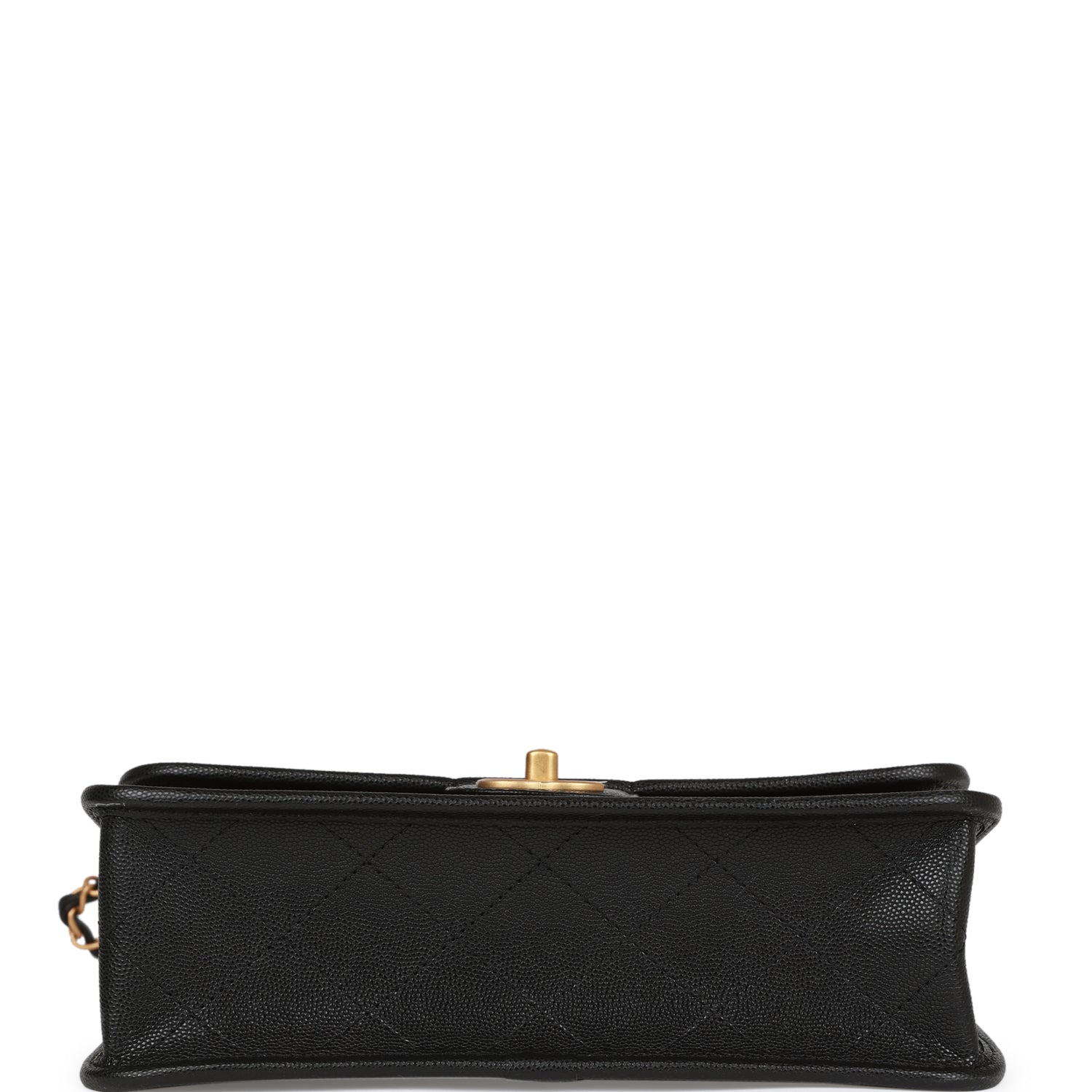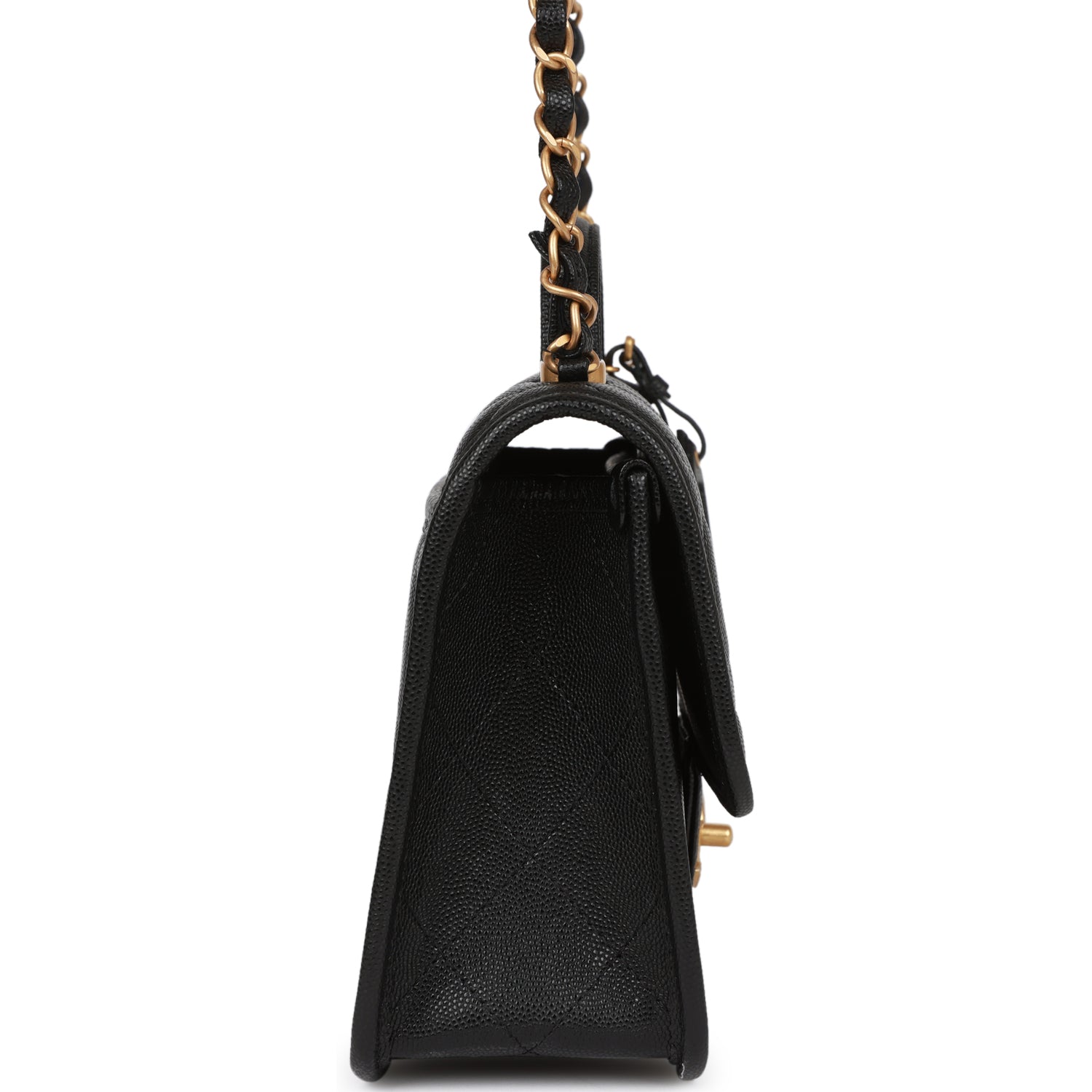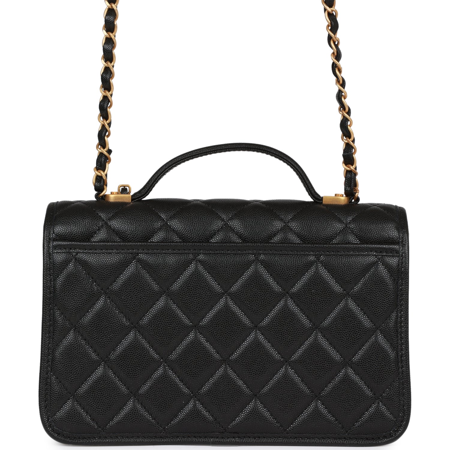 Chanel School Memory Top Handle Flap Bag Black Caviar Antique Gold Hardware