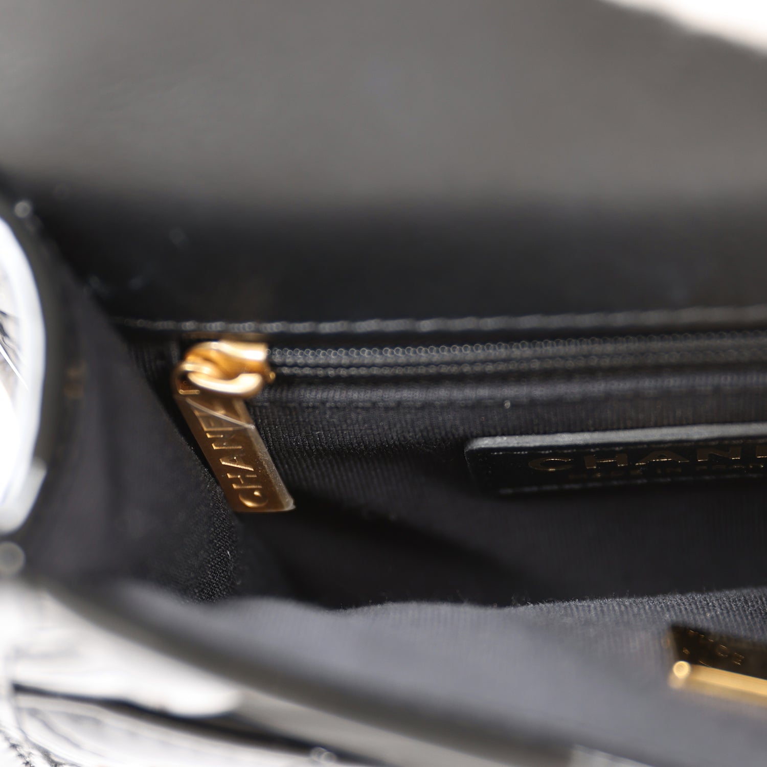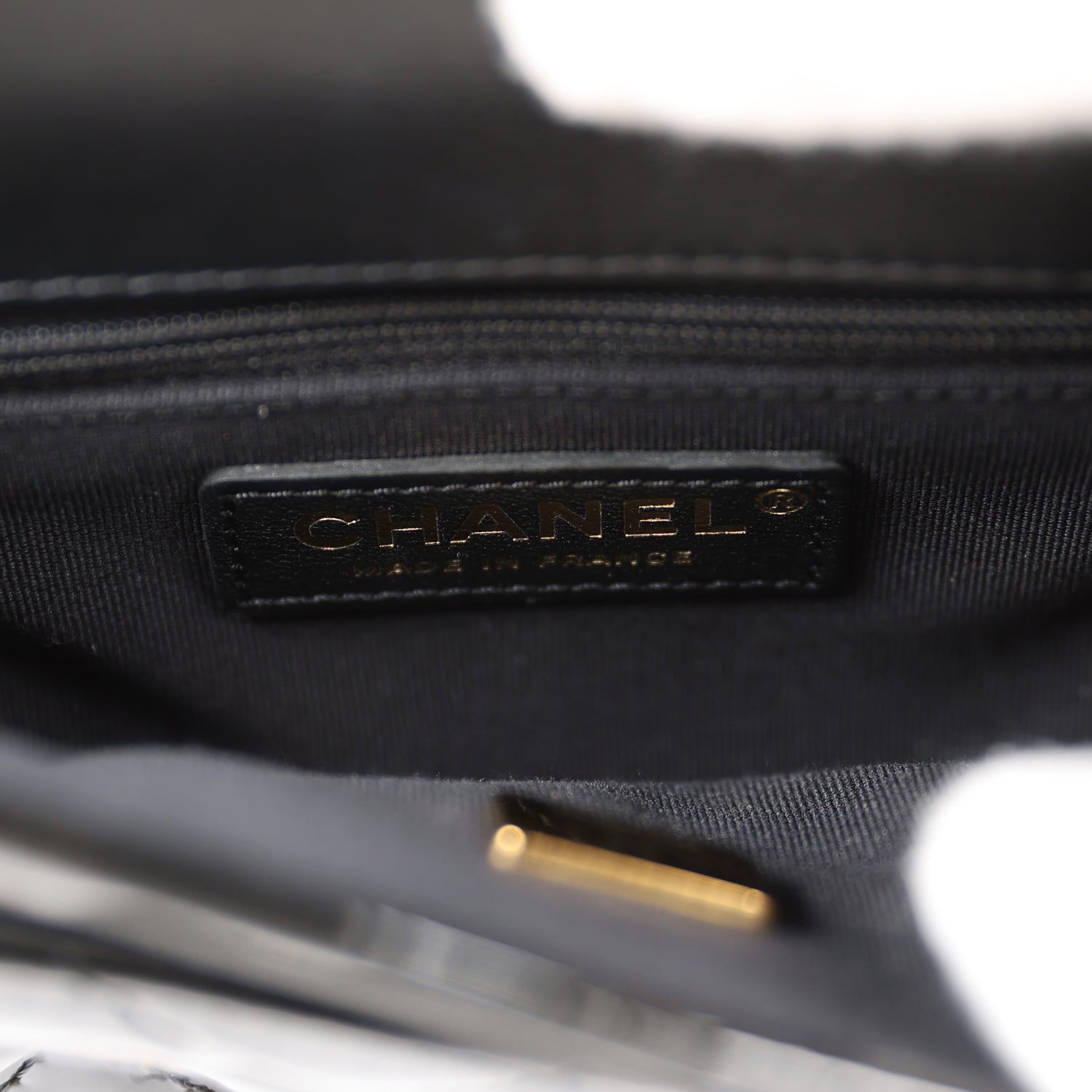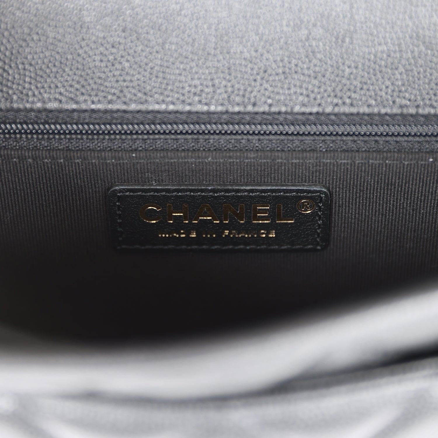 - Chanel embossed leather logo