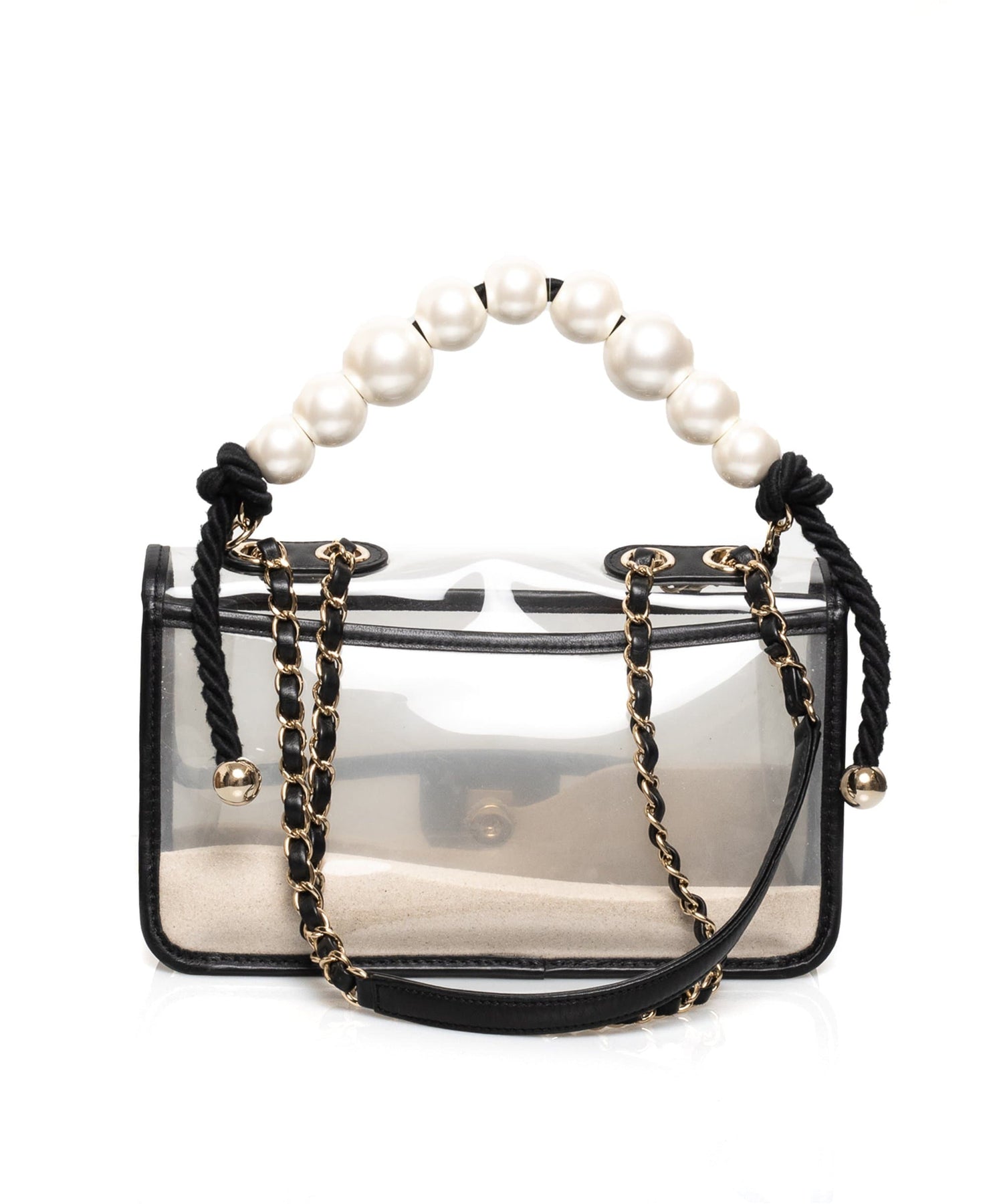 CHANEL Sand By The Sea Pearl Flap Bag PVC with Lambskin Medium