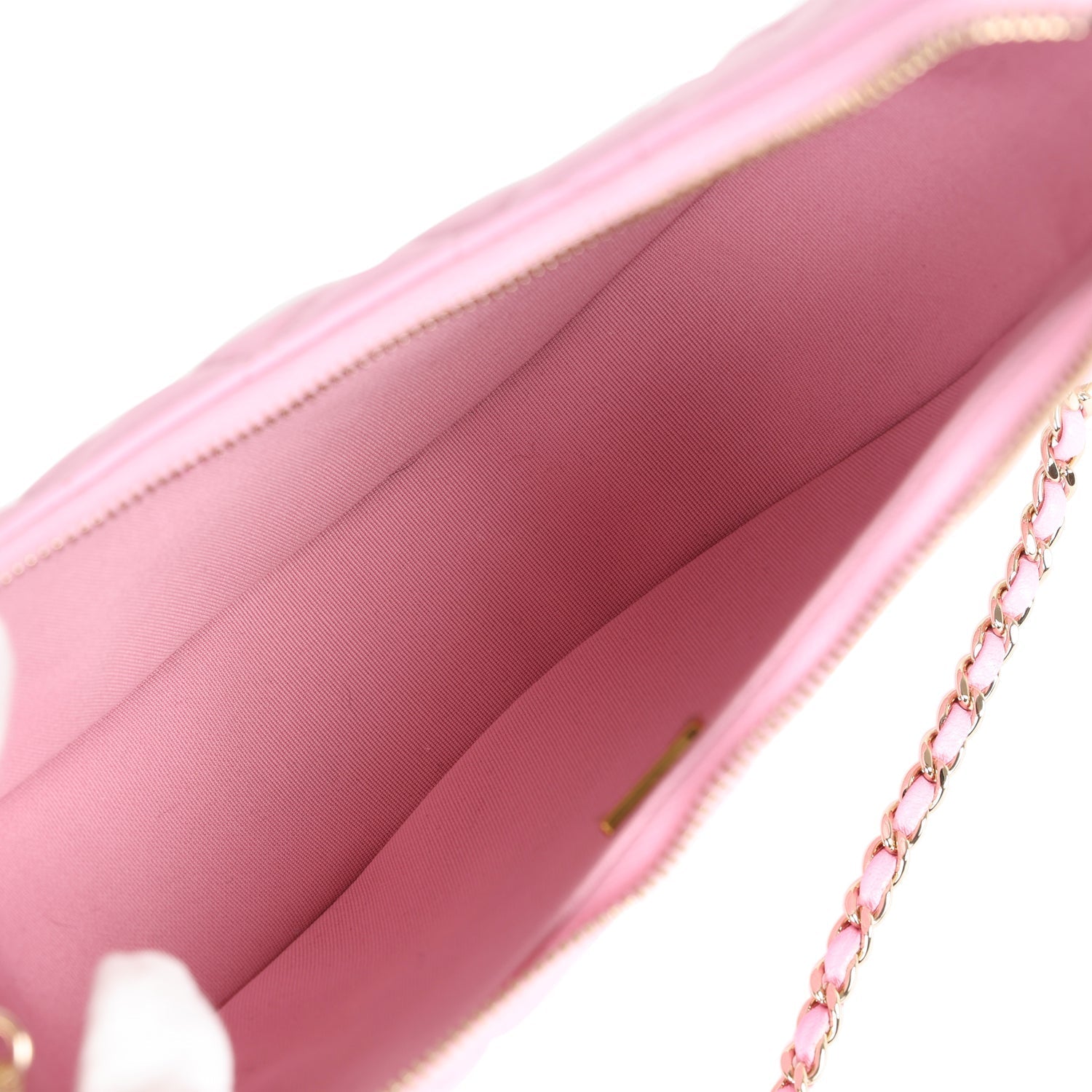 Regular price $1,890.00 Sale price $430.00 Save $1,460.00This small Classic Chevron Double Flap bag is in light pink caviar leather with light gold tone hardware and features a front flap with signature CC turnlock closure, chevron quilted leather, half moon back pocket, and adjustable interwoven light gold tone chain link and Light Pink leather shoulder/crossbody strap.