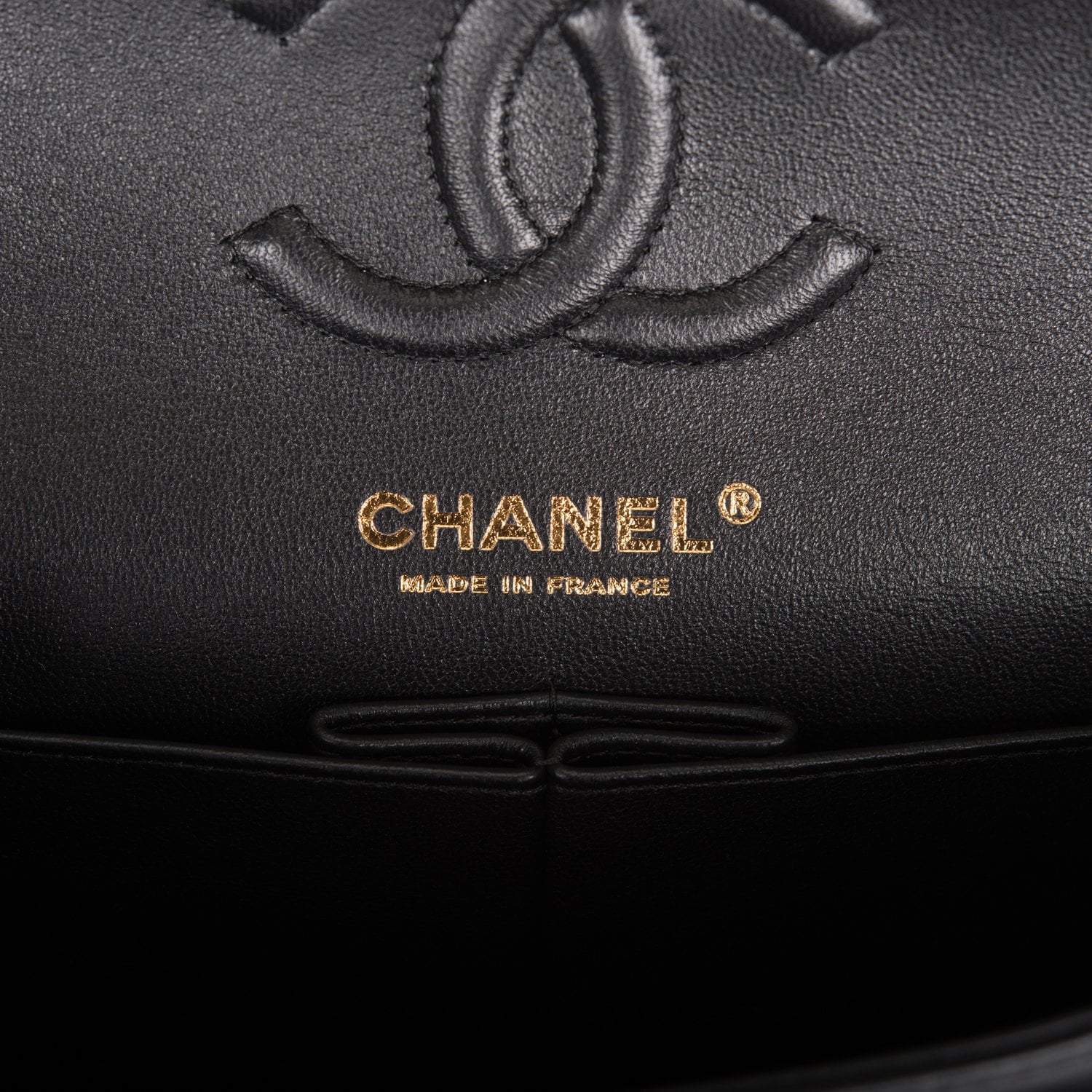 Regular price $1,650.00 Sale price $450.00 Save $1,200.00This Small Classic Double Flap bag is in black lambskin leather with rose gold tone hardware and features a front flap with signature CC turnlock closure, half moon back pocket, and adjustable interwoven rose gold tone chain link and black leather shoulder strap.