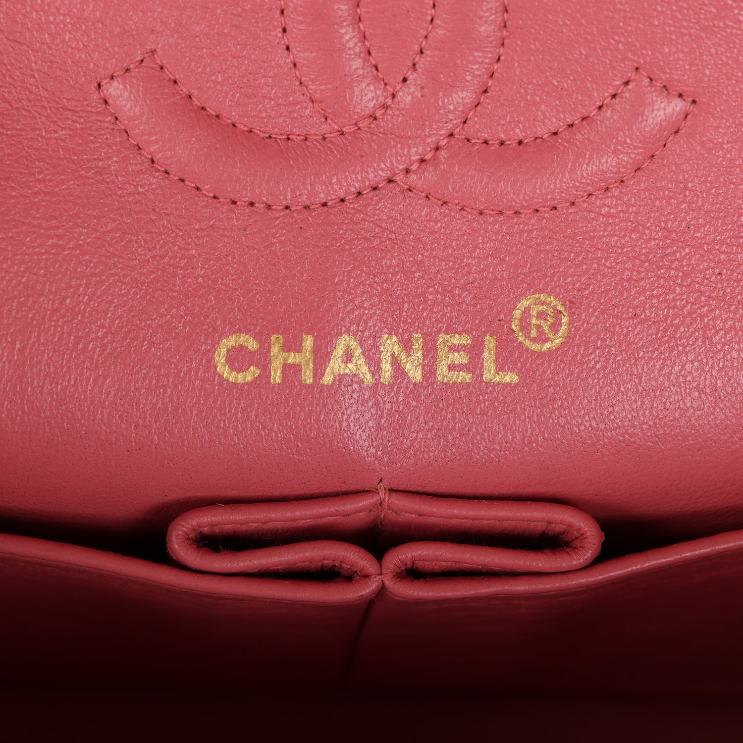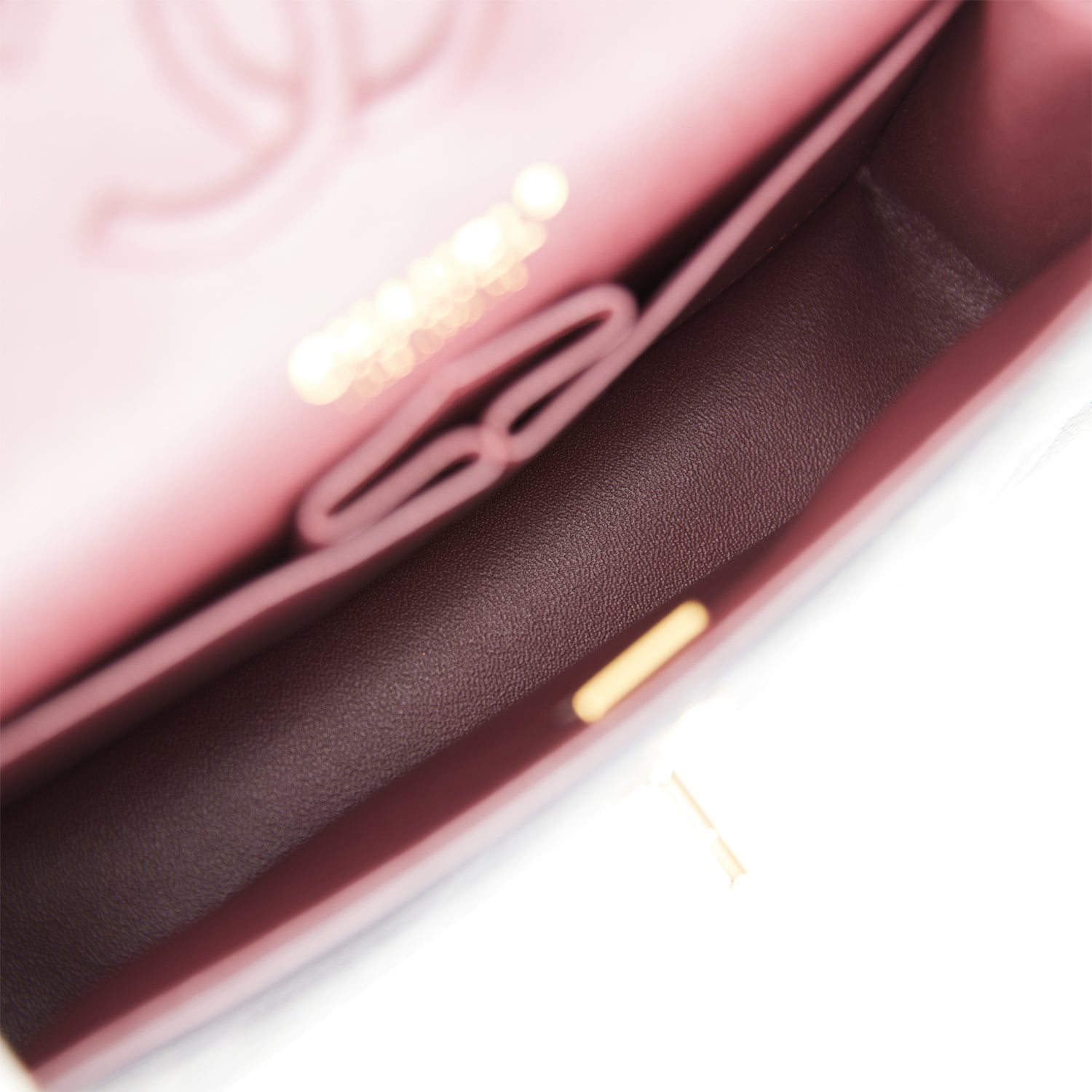 Chanel Small Classic Double Flap Bag Dark Pink Lambskin Gold Hardware