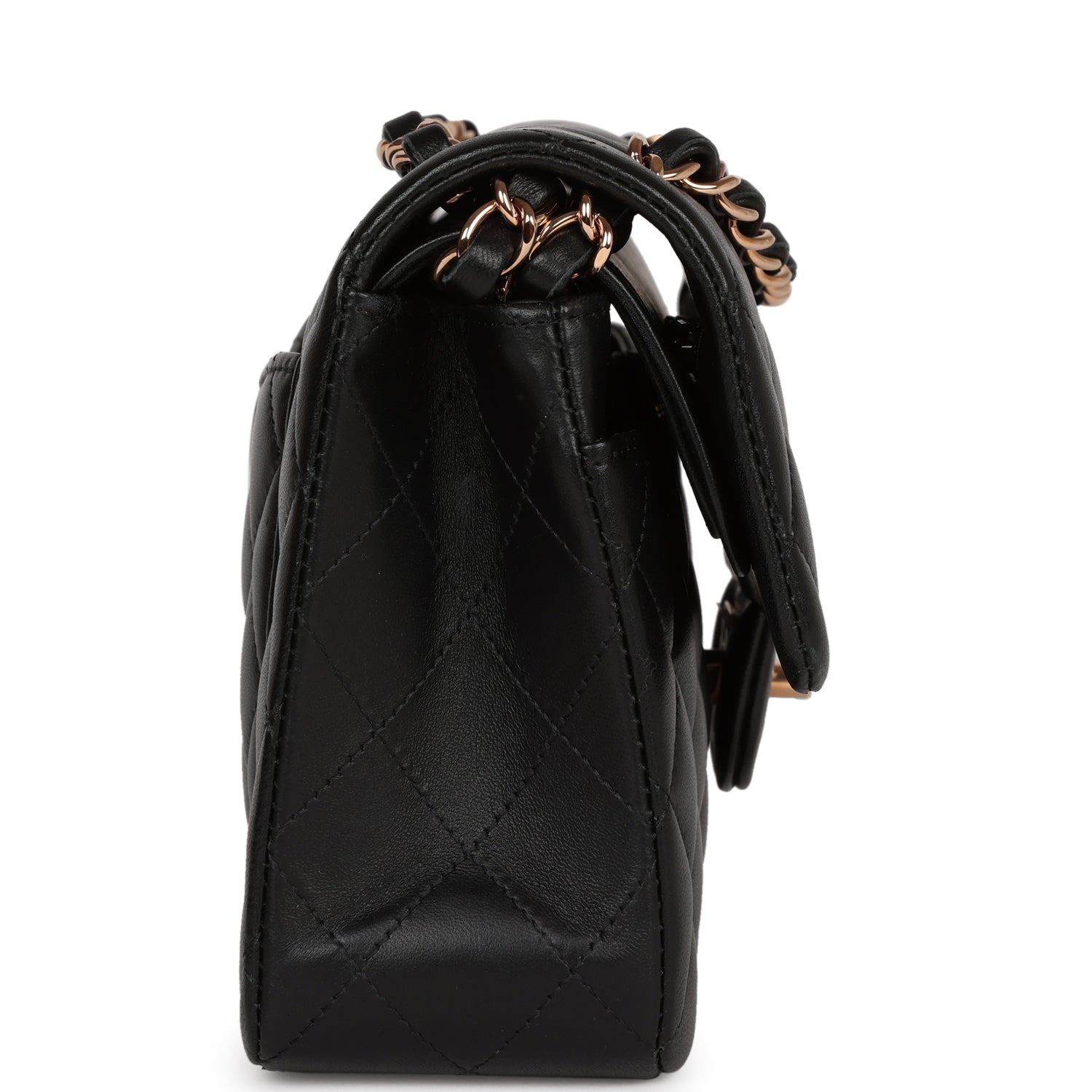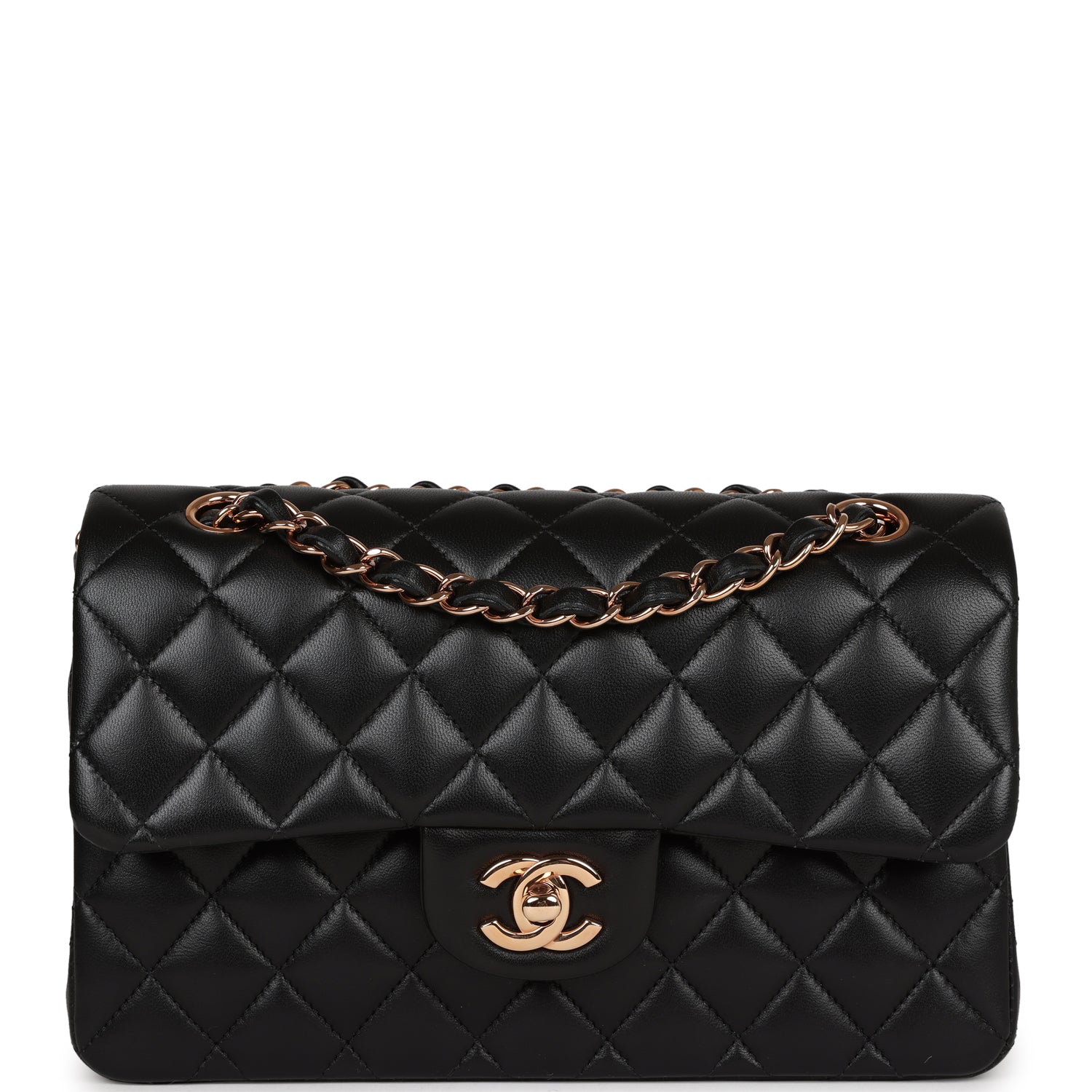Chanel Small Classic Double Flap Bag Black Lambskin Rose Gold Hardware