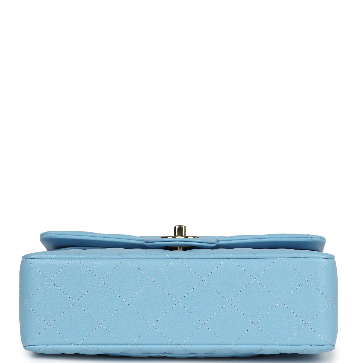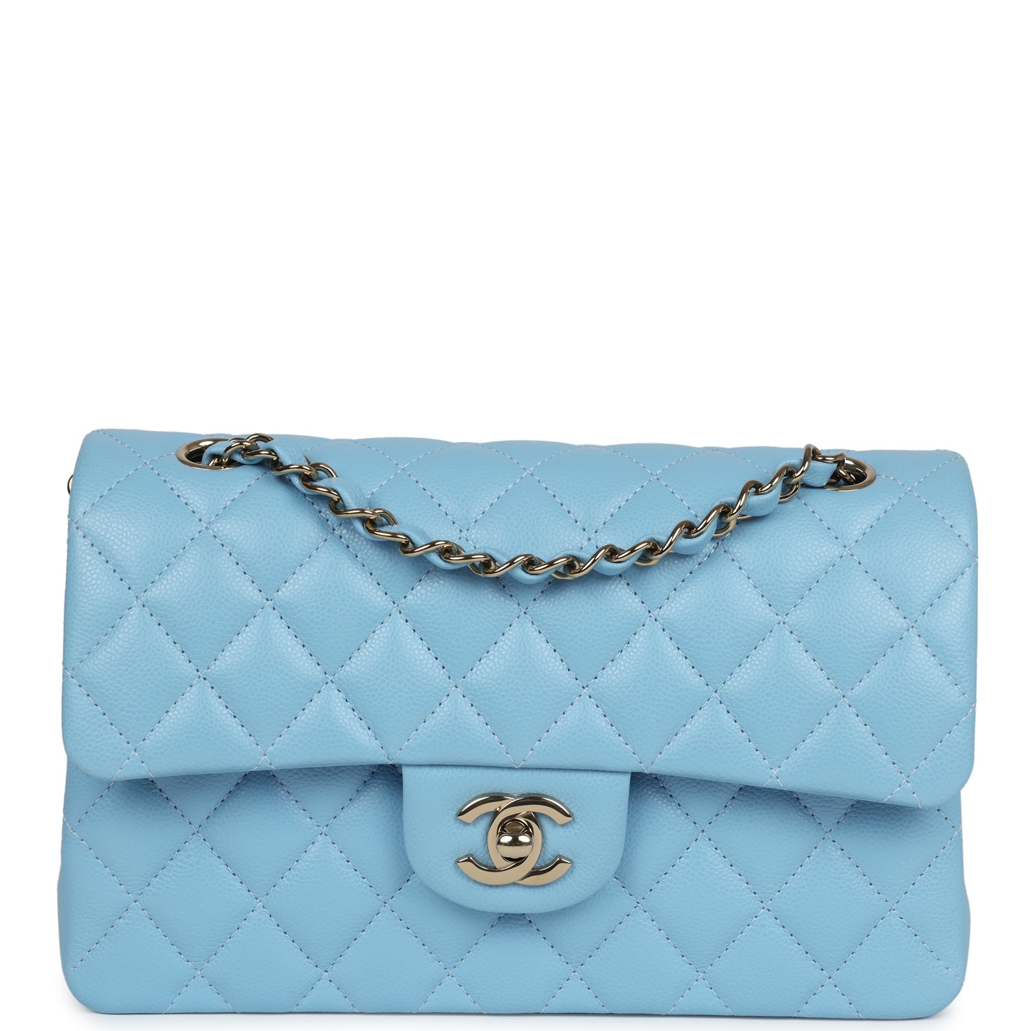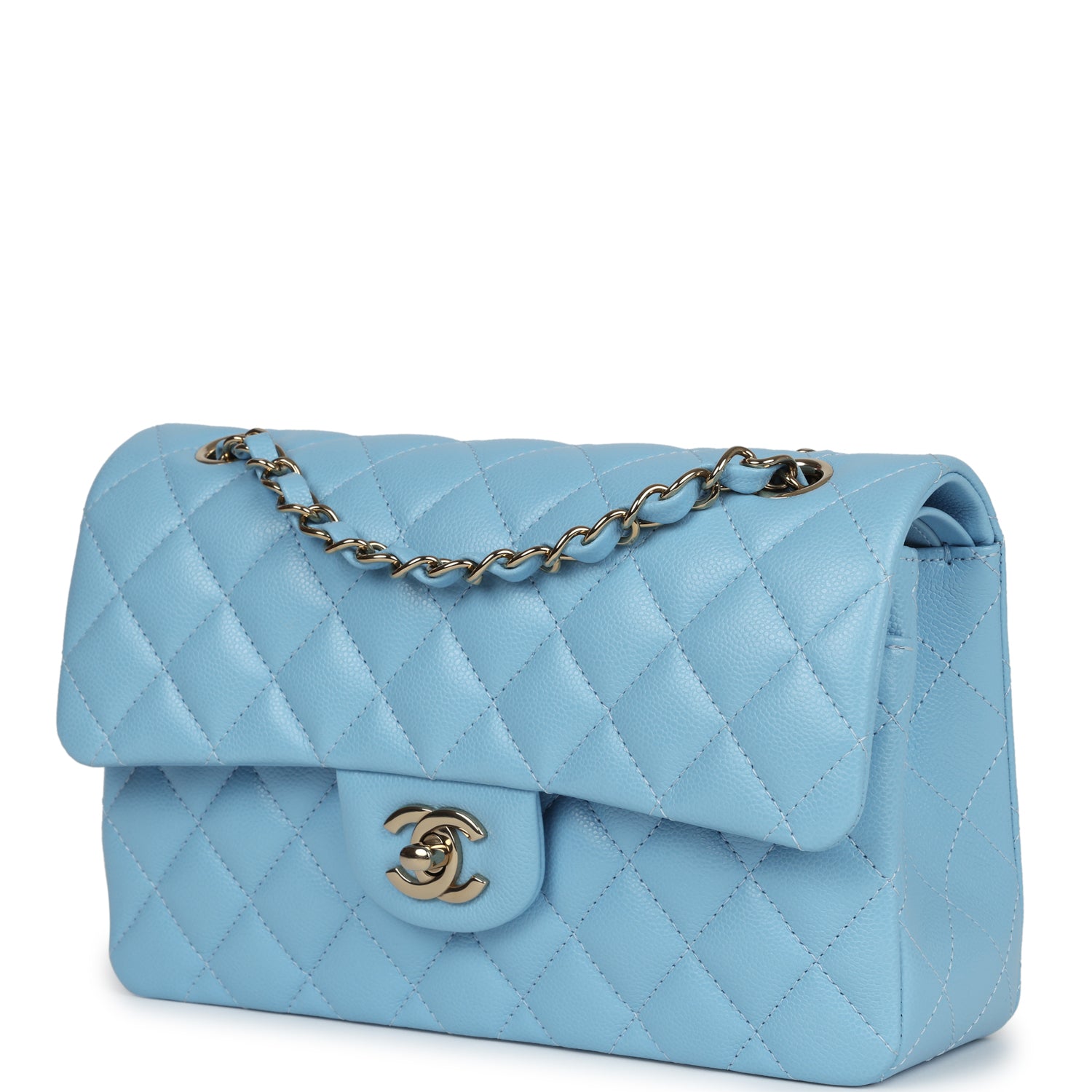 Chanel Small Classic Double Flap Bag Light Blue Caviar Gold Hardware