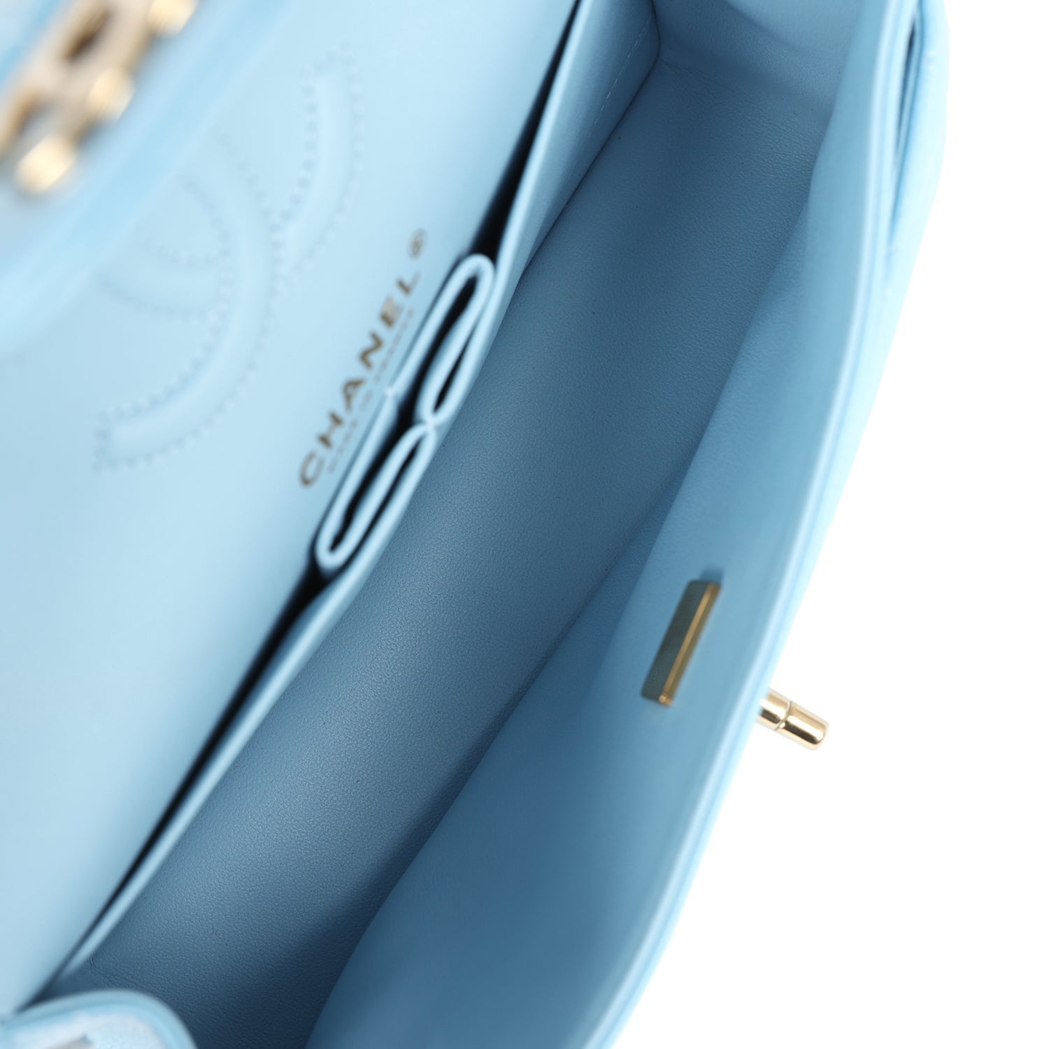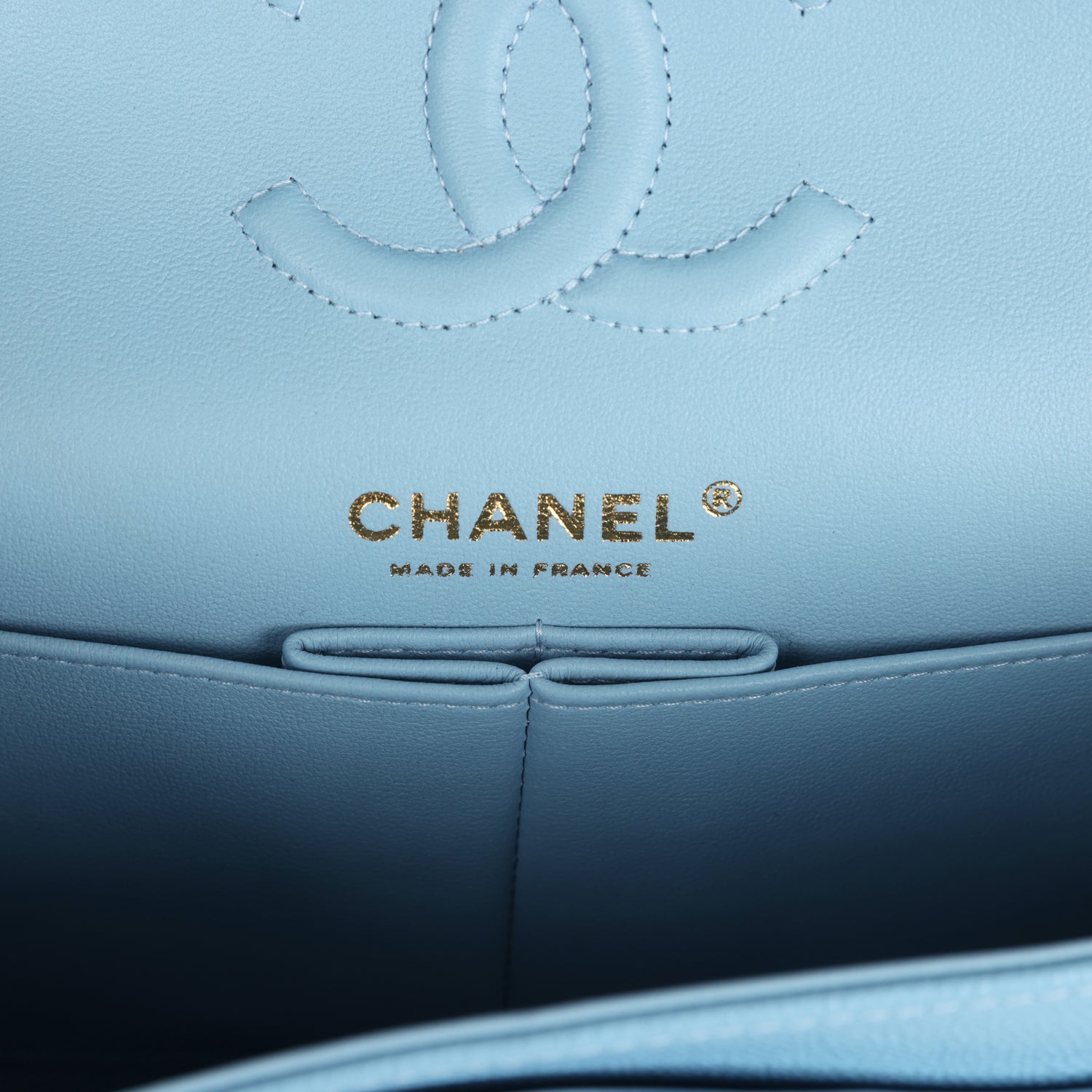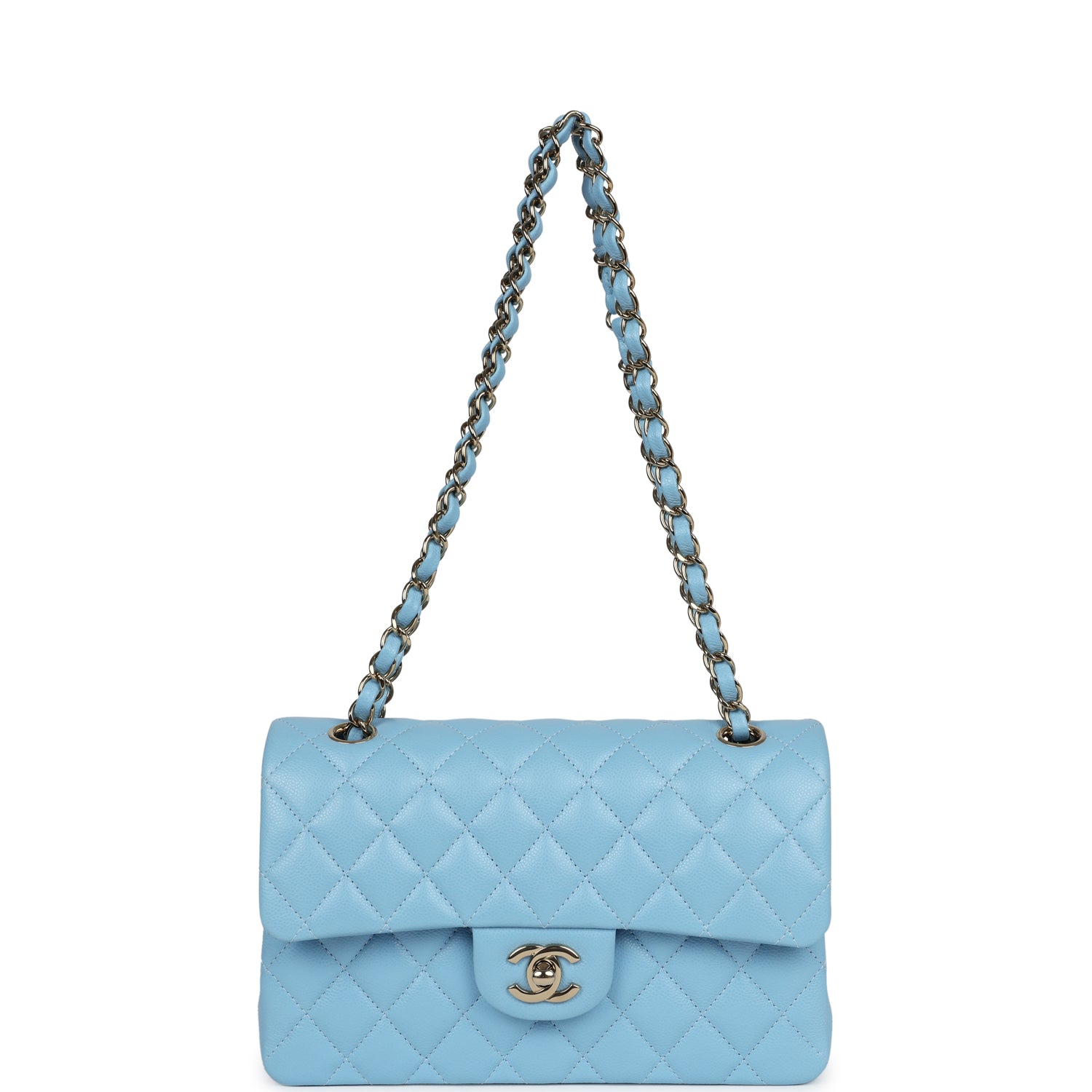 Chanel Small Classic Double Flap Bag Light Blue Caviar Gold Hardware