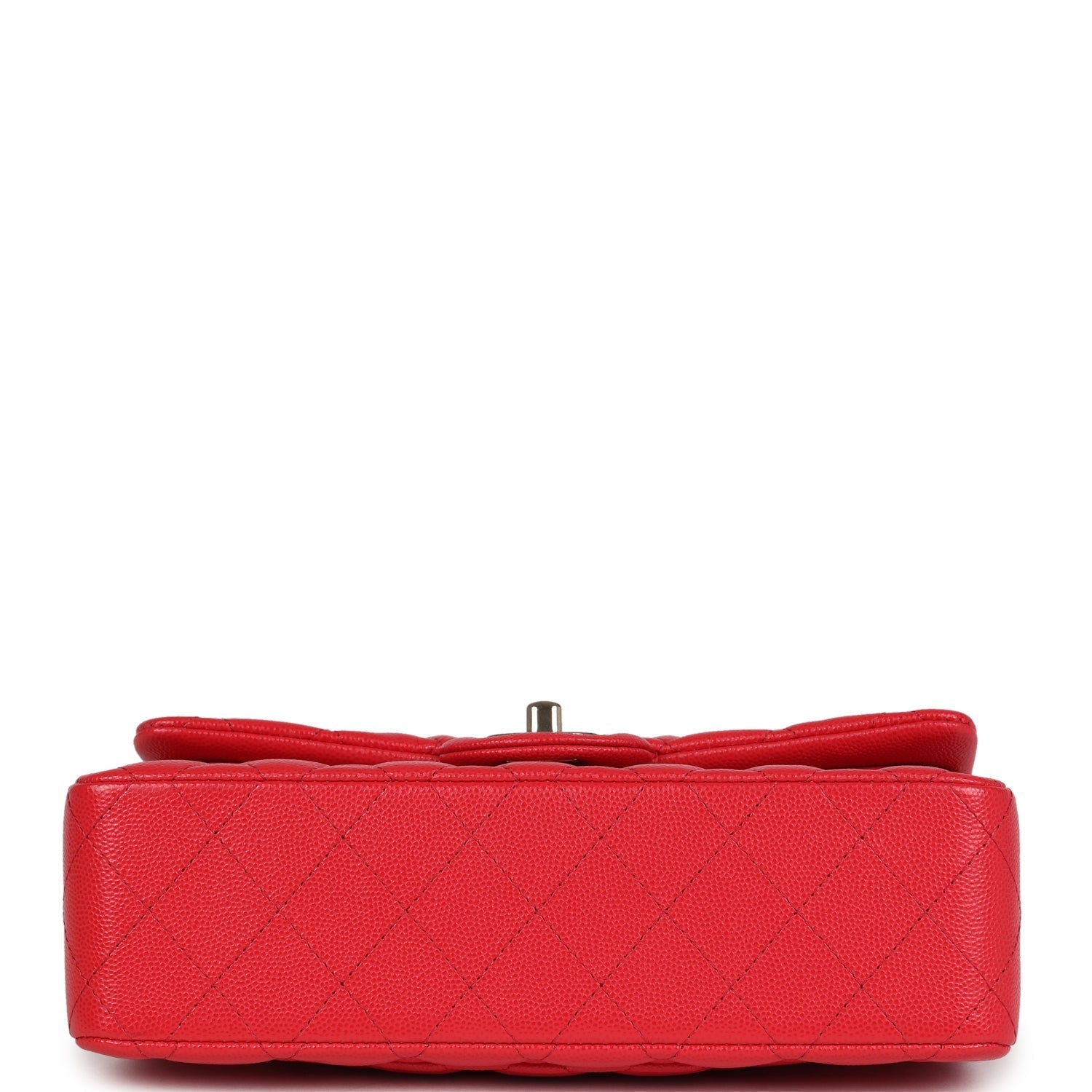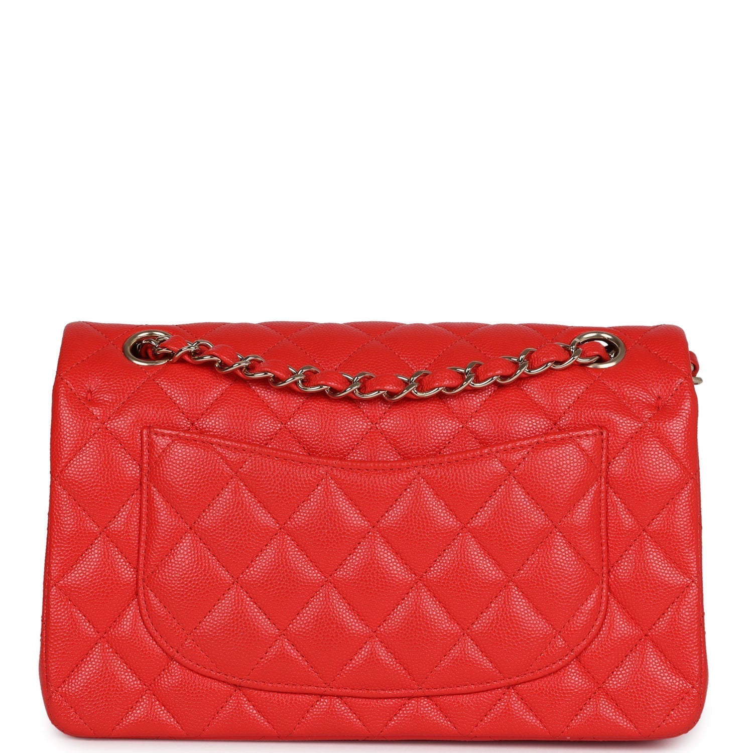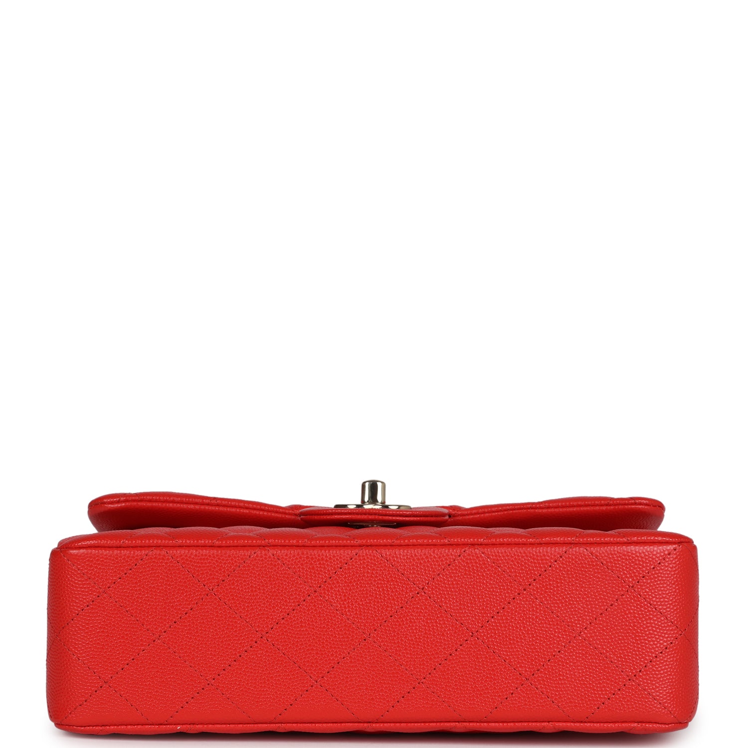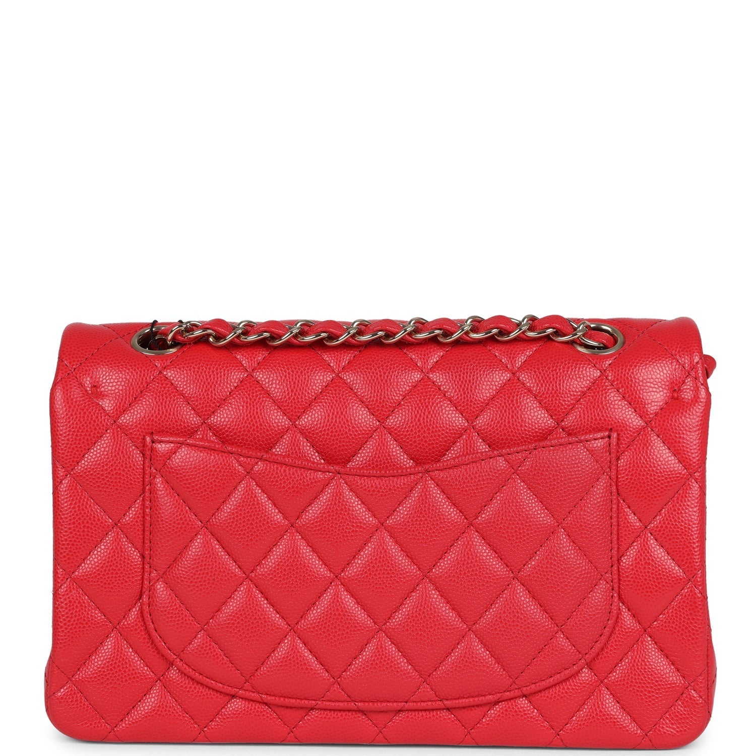 Regular price $1,800.00 Sale price $450.00 Save $1,350.00This small Classic Double Flap bag is in red shiny caviar leather with light gold tone hardware and features a front flap with signature CC turnlock closure, half moon back pocket, and adjustable interwoven light gold tone chain link and red leather shoulder/crossbody strap.