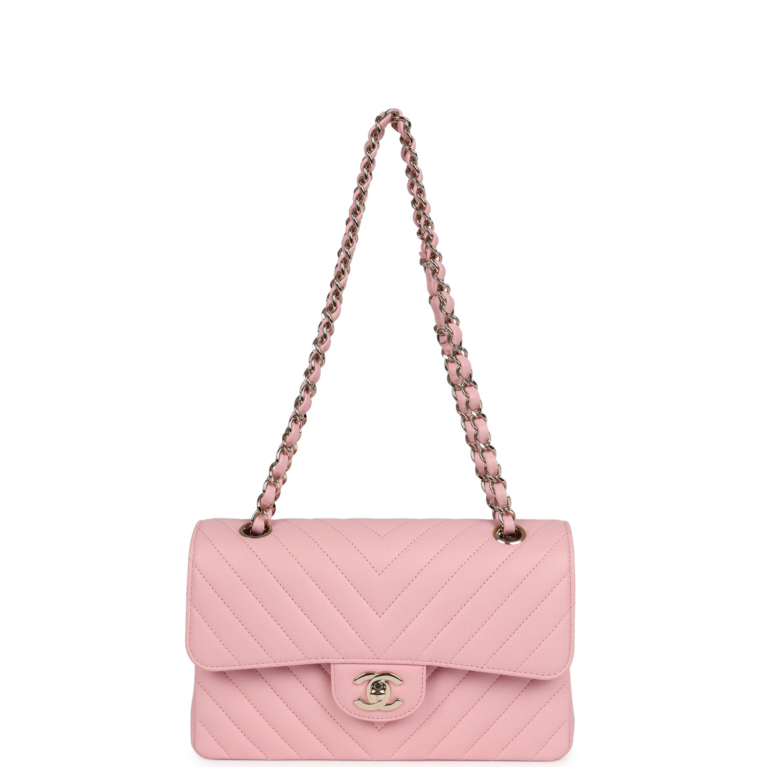 Chanel Small Classic Double Flap Bag Light Pink Chevron Caviar Light Gold Hardware
