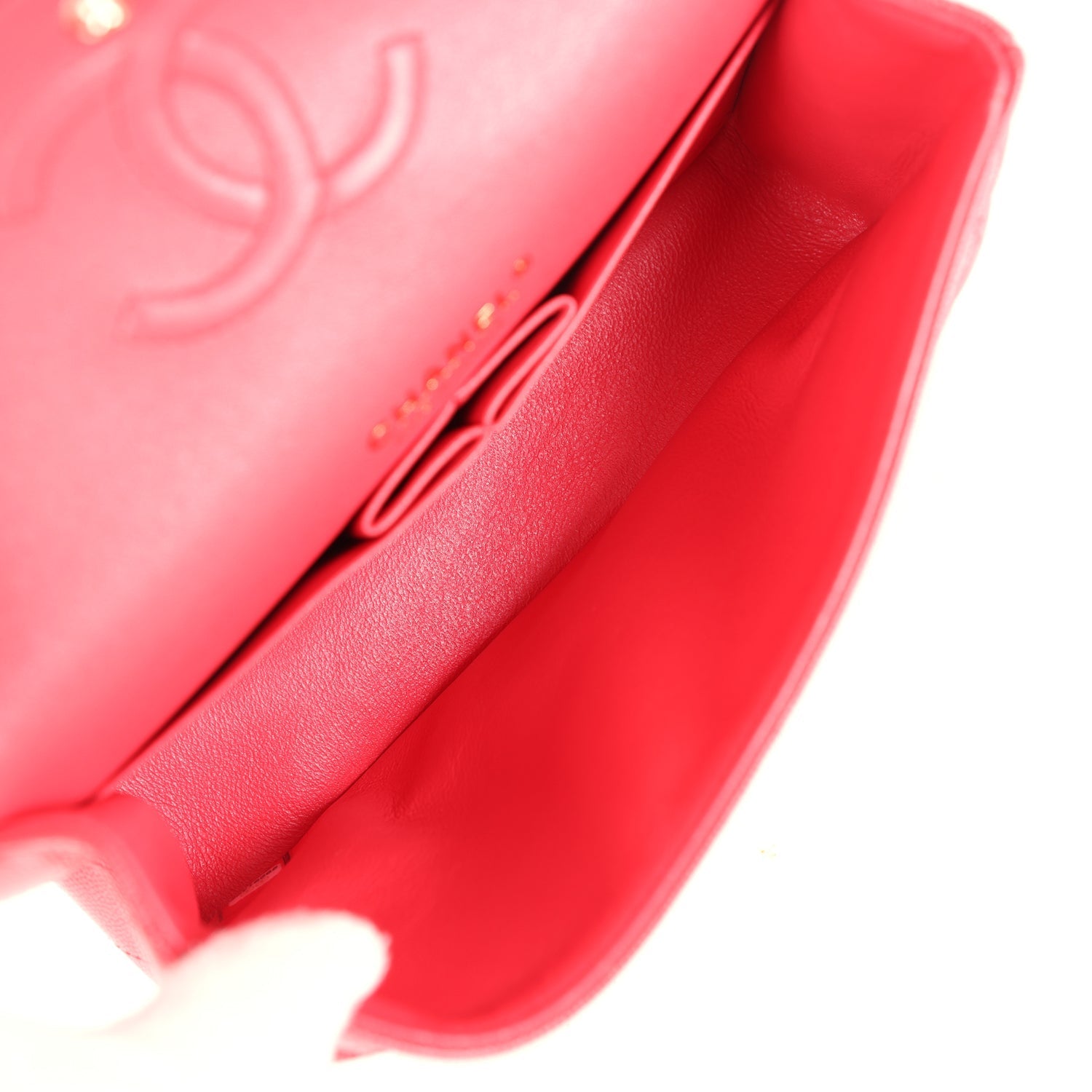 Regular price $19,630.00 Sale price $1,140.00 Save $18,490.00This Small Classic Flap Bag is in Dark Pink Lambskin leather with gold hardware and features a front flap with CC turnlock closure, halfmoon back pocket and adjustable interwoven gold tone chain link and dark pink leather shoulder/crossbody strap.