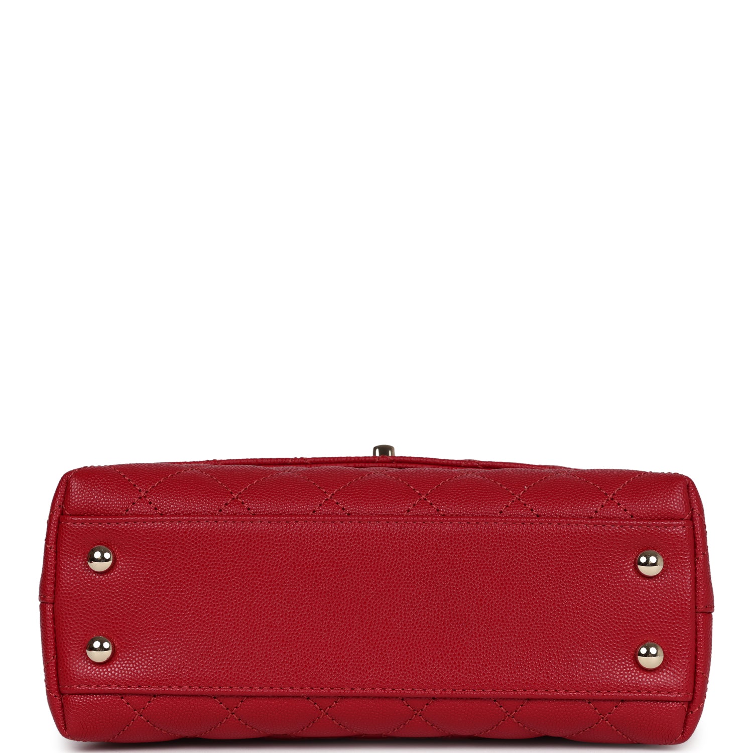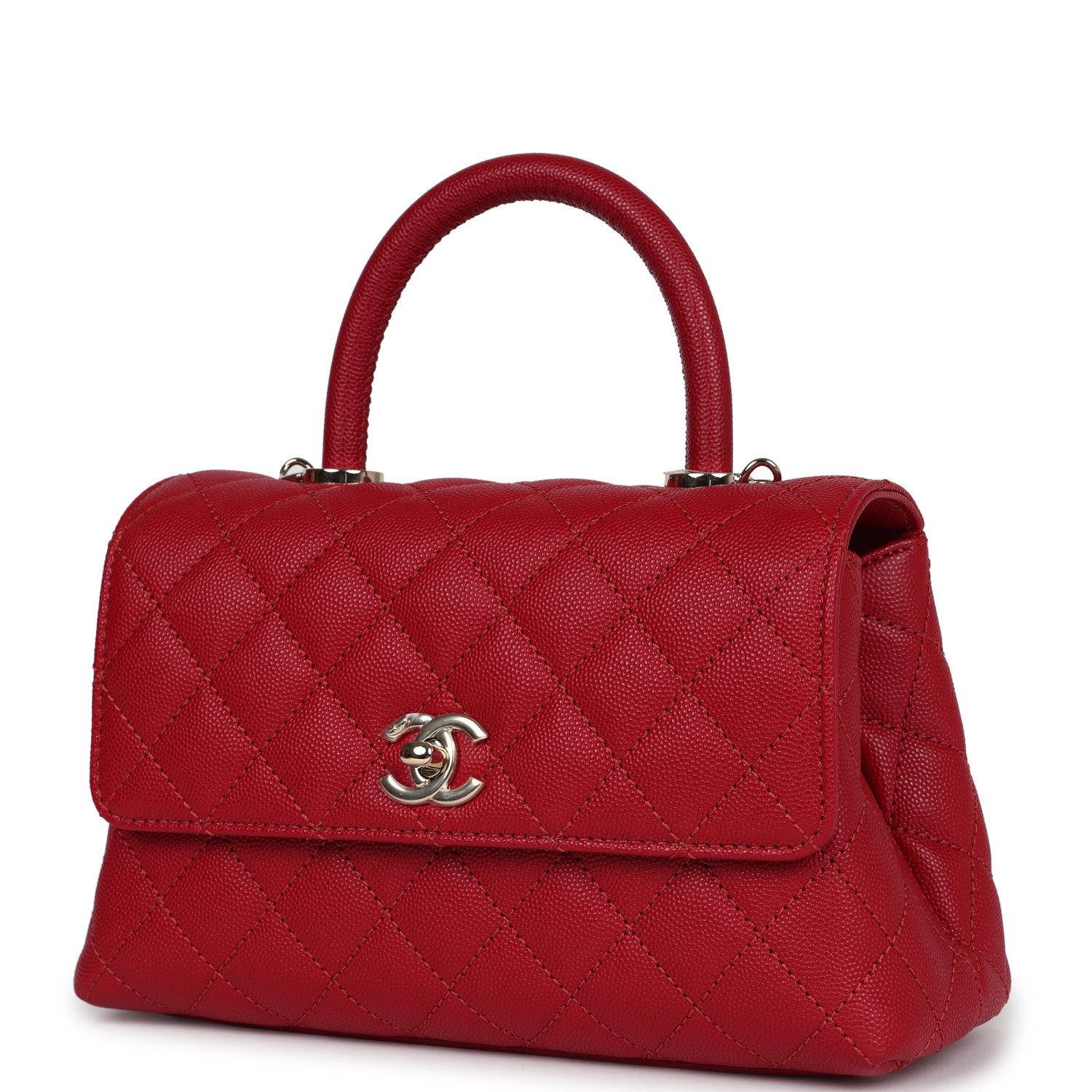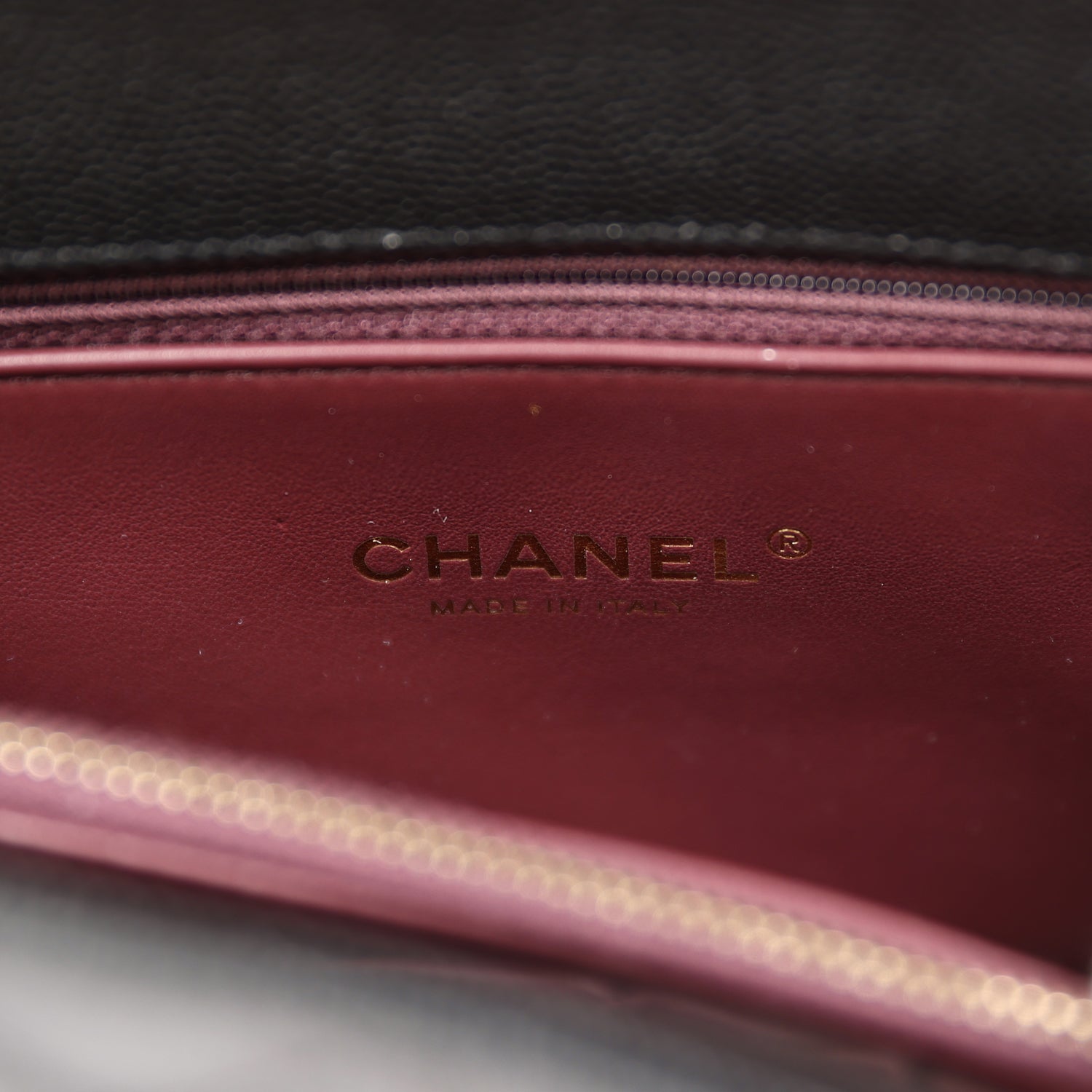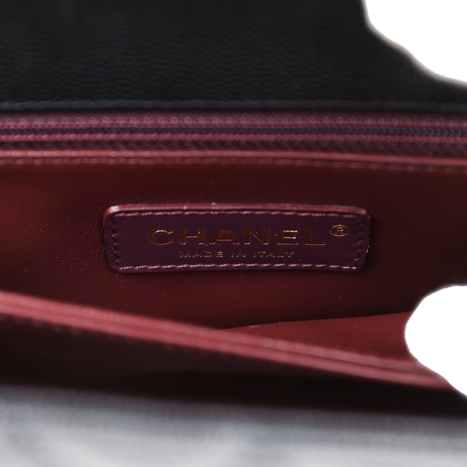 Chanel Small Coco Top Handle Flap Bag Burgundy Caviar Light Gold Hardware