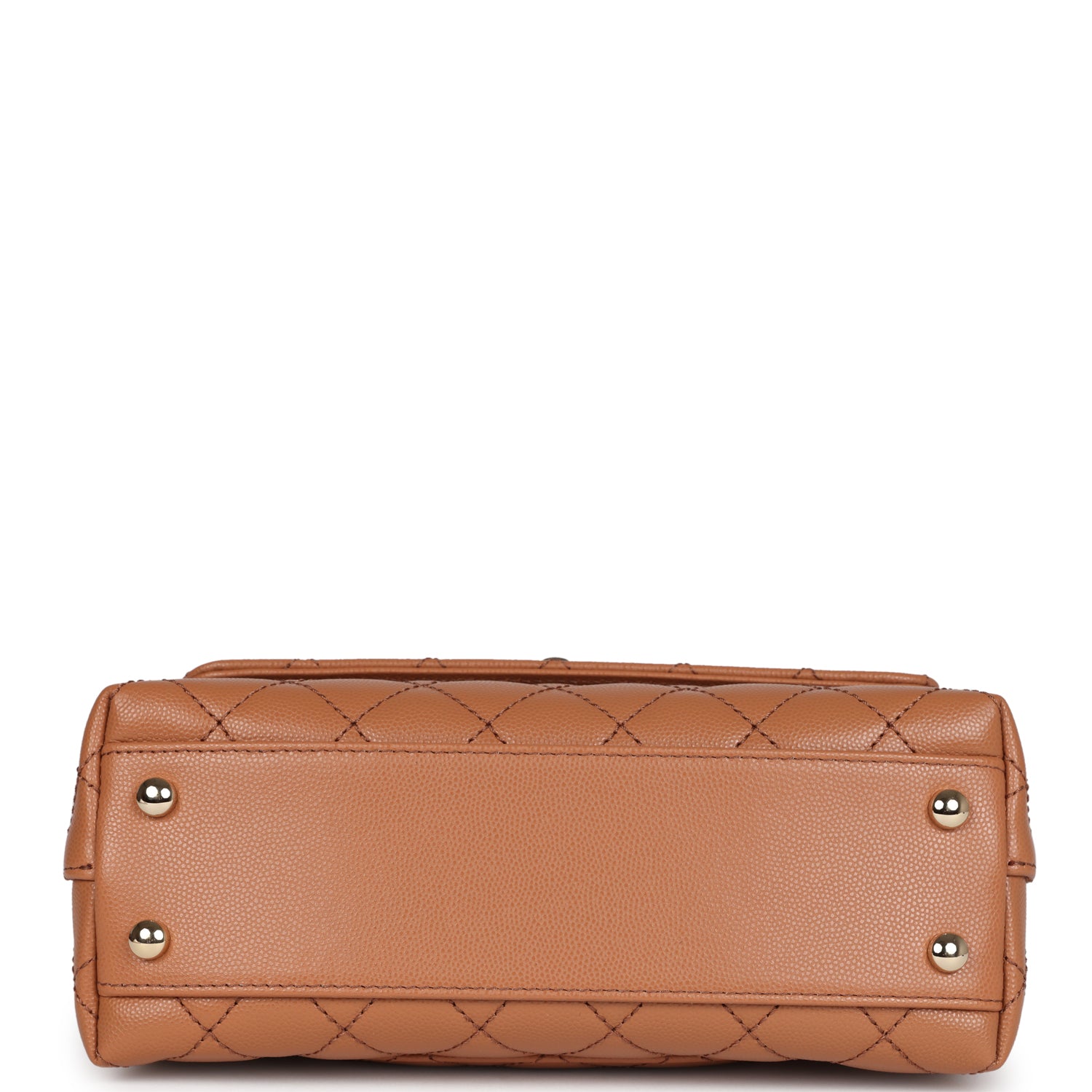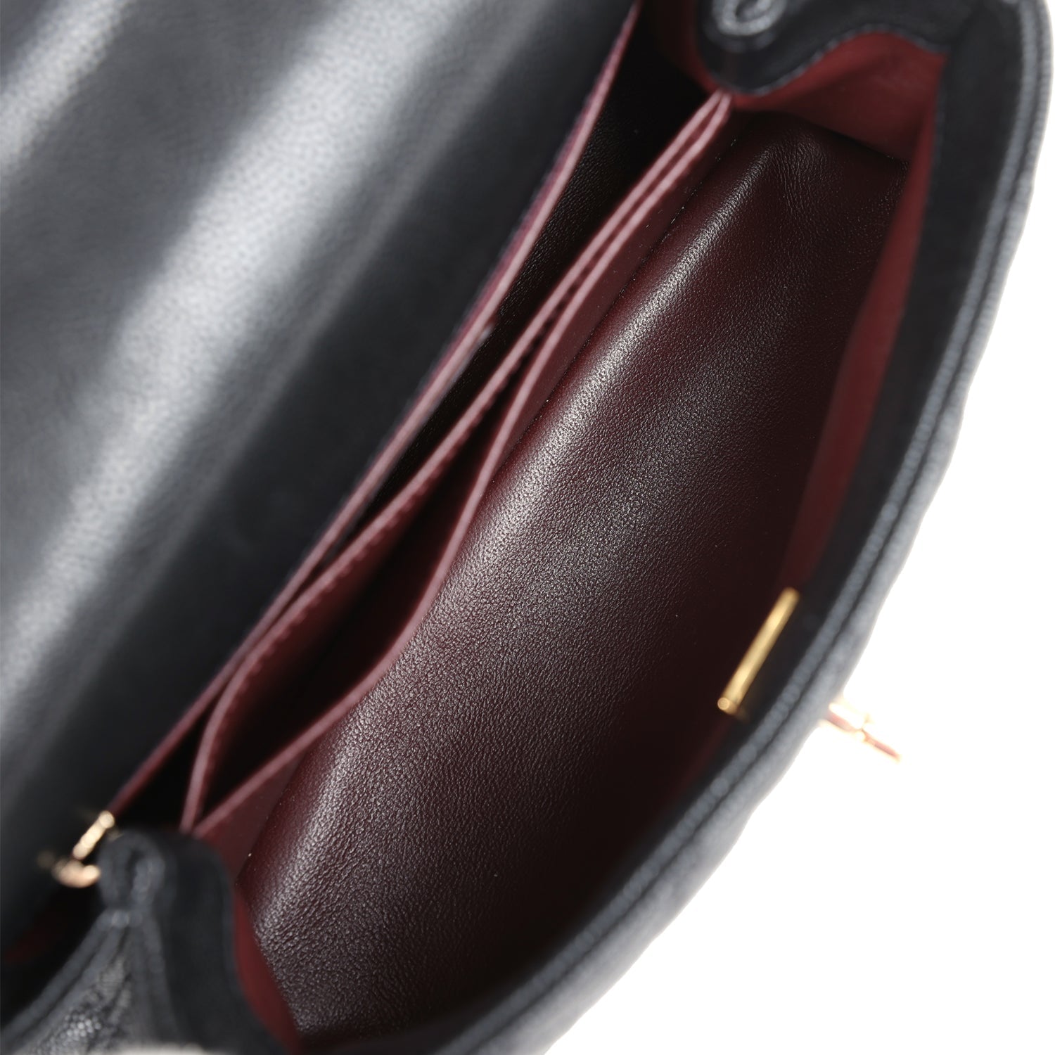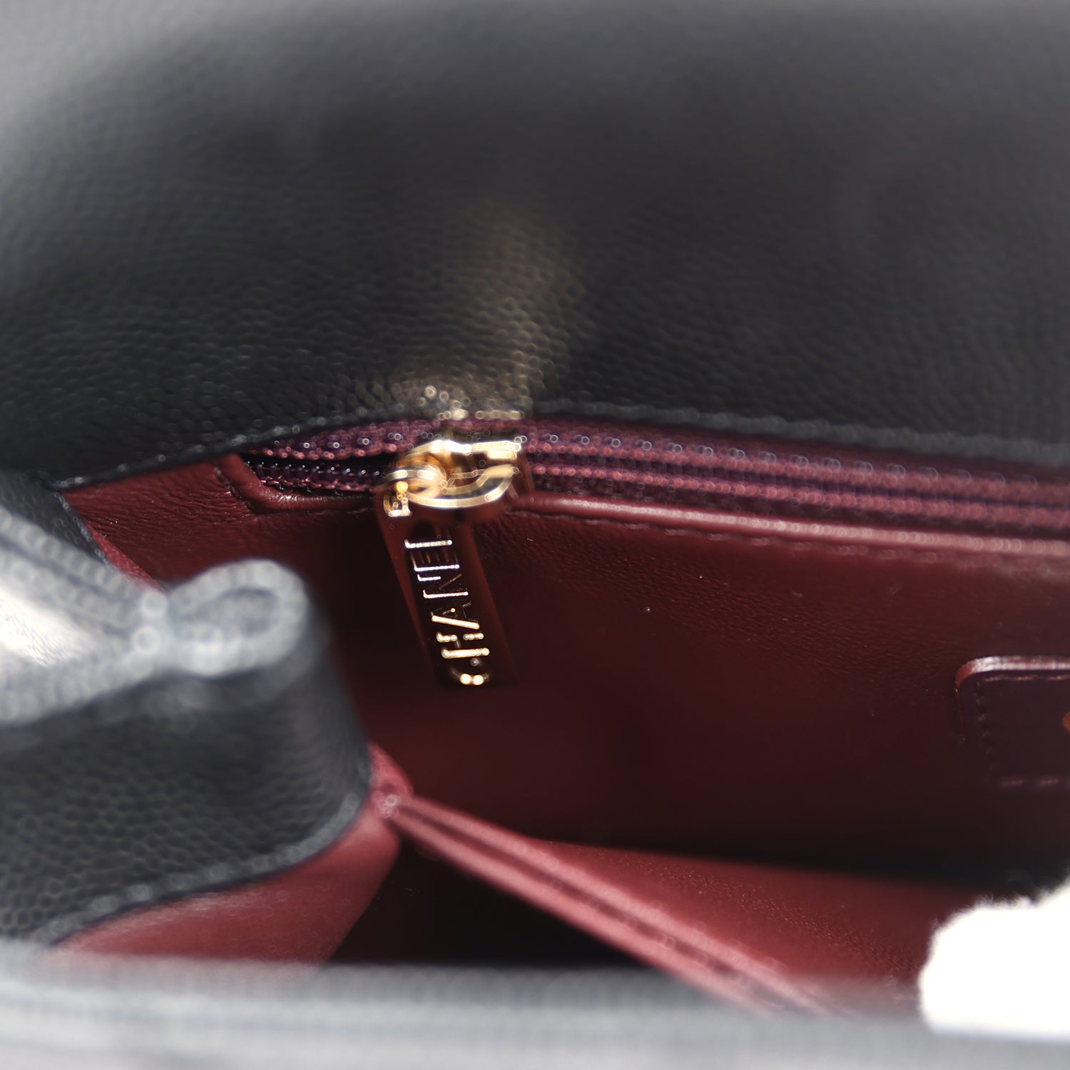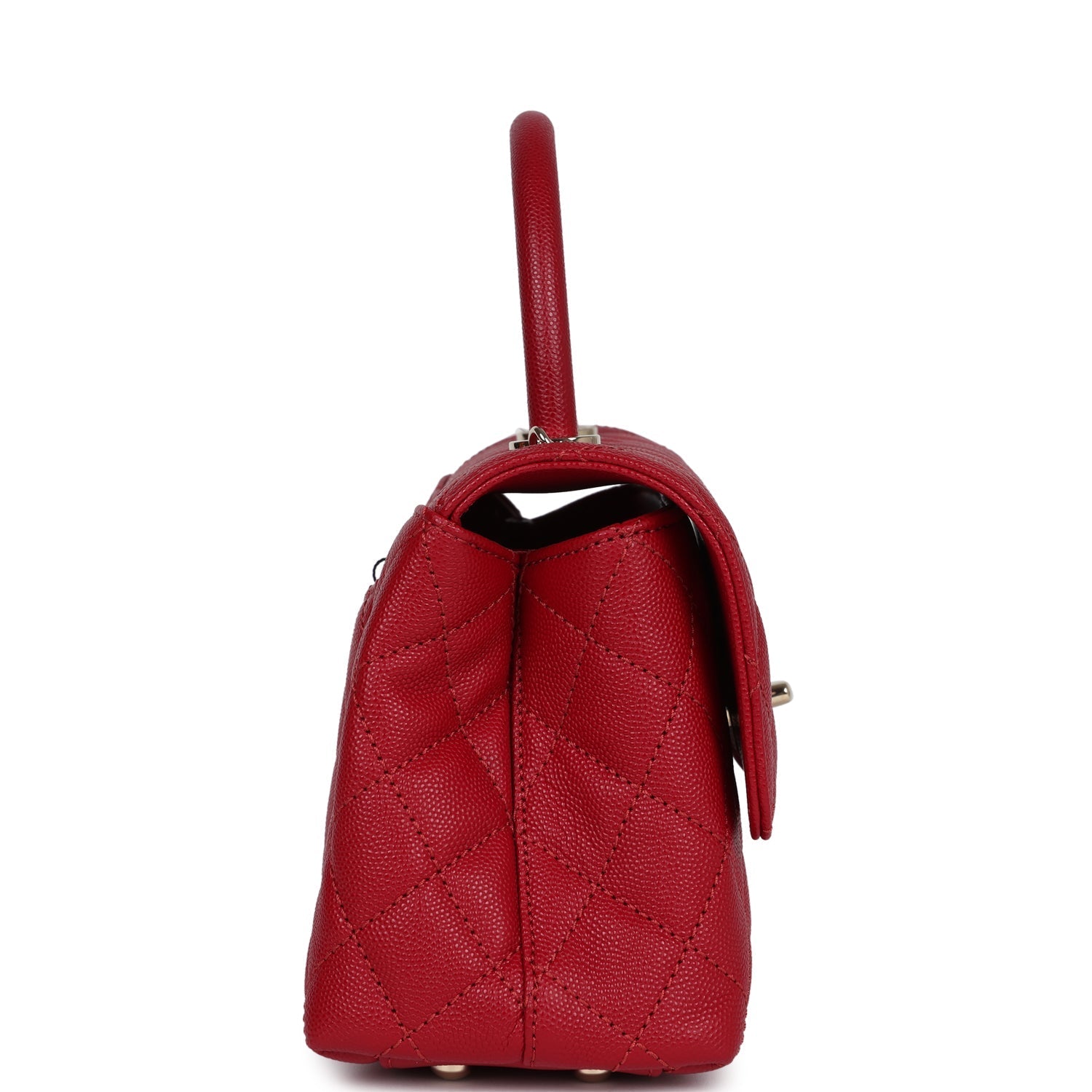 Chanel Small Coco Top Handle Flap Bag Burgundy Caviar Light Gold Hardware