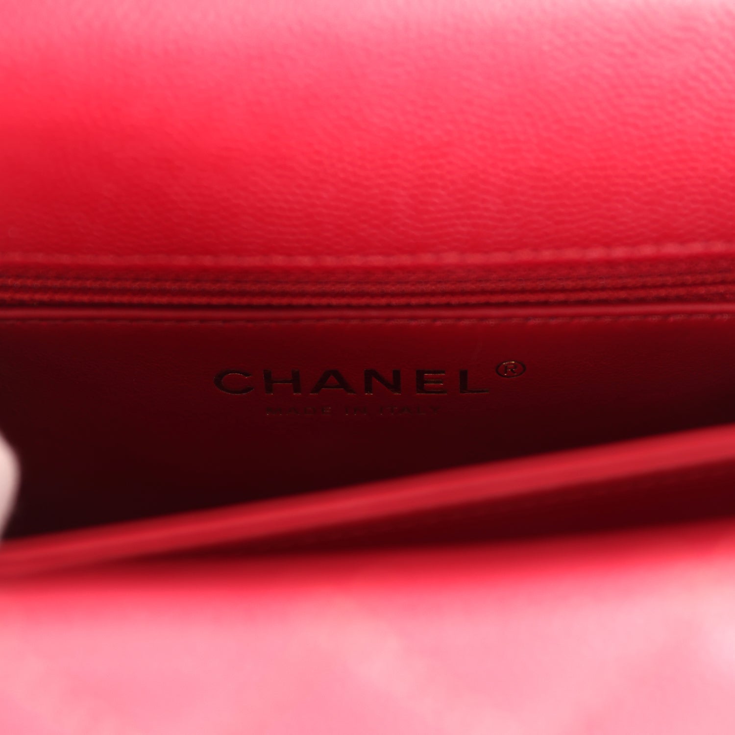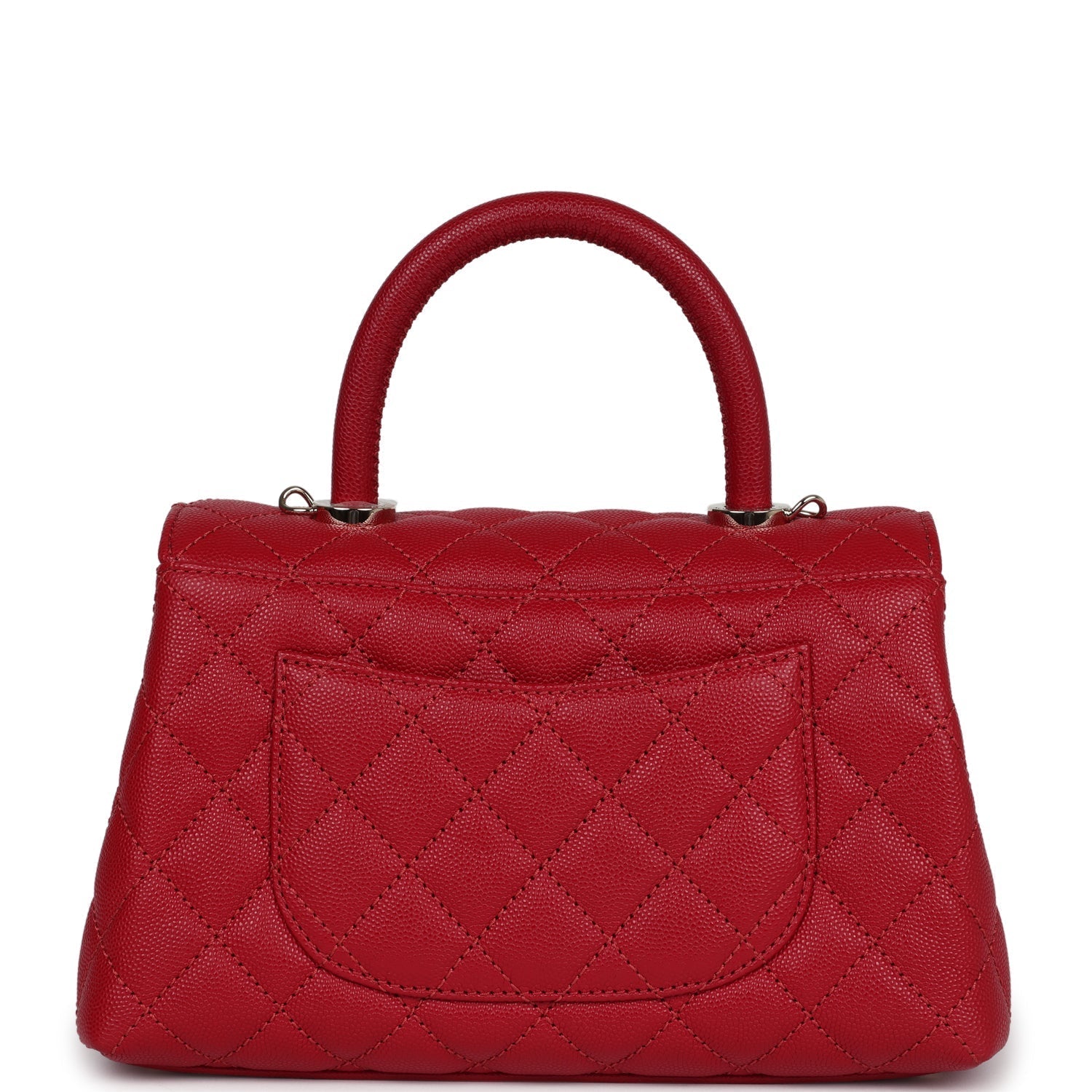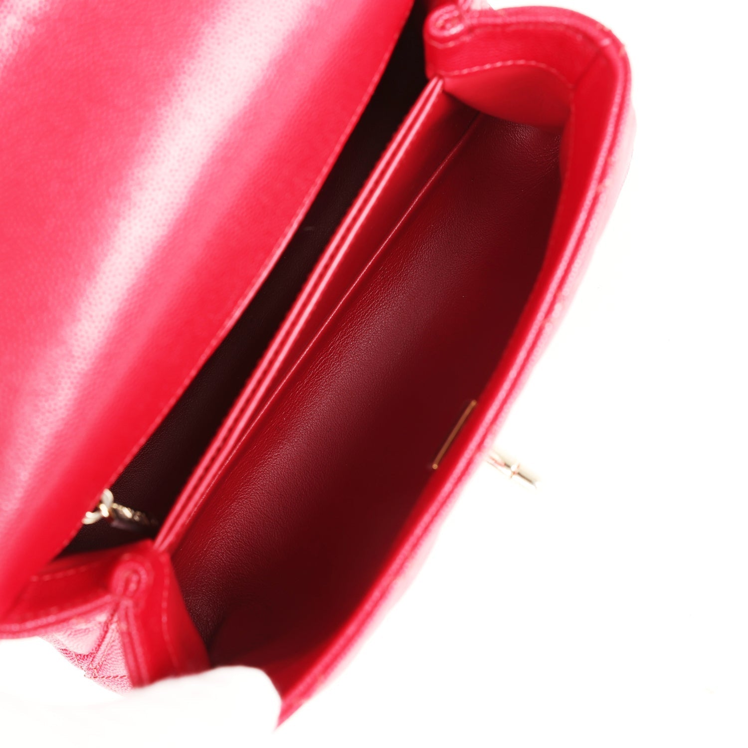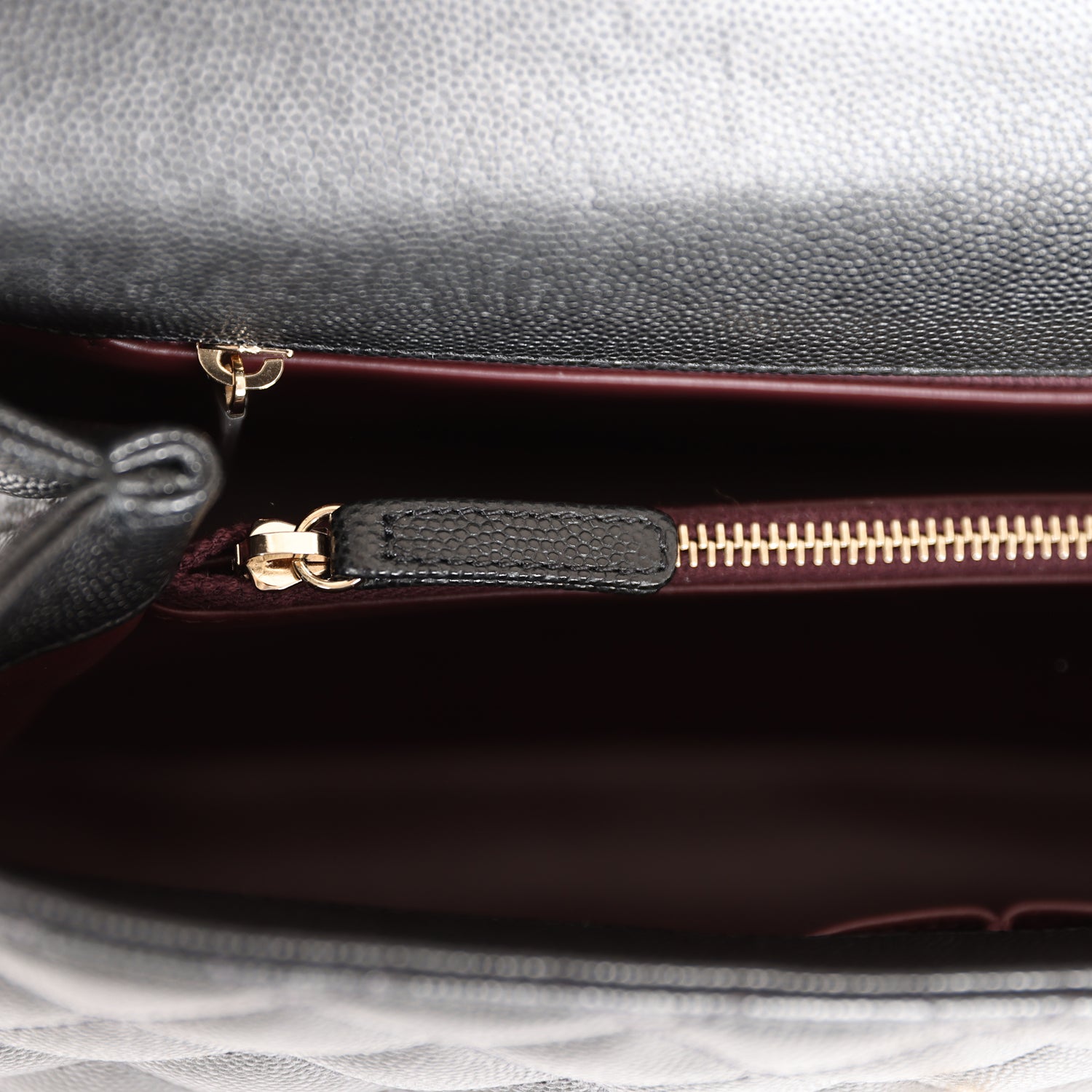 Chanel Small Coco Top Handle Flap Bag Burgundy Caviar Light Gold Hardware