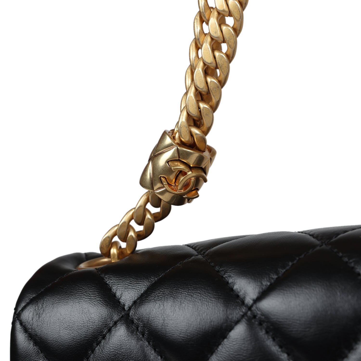 Chanel Small Coco Shopping Bag Black Calfskin Antique Gold Hardware