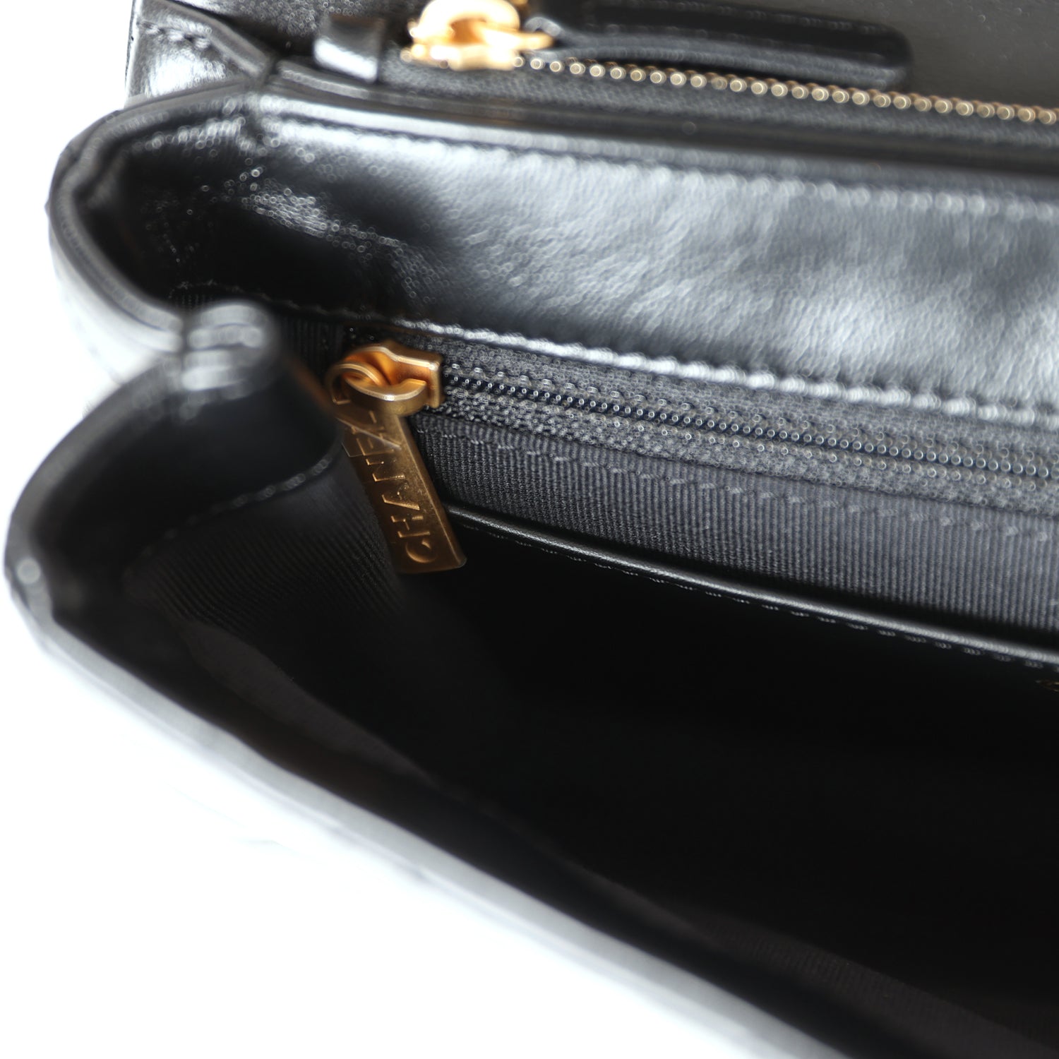 Chanel Small Crush Flap Bag Black Shiny Aged Calfskin Brushed Gold Hardware