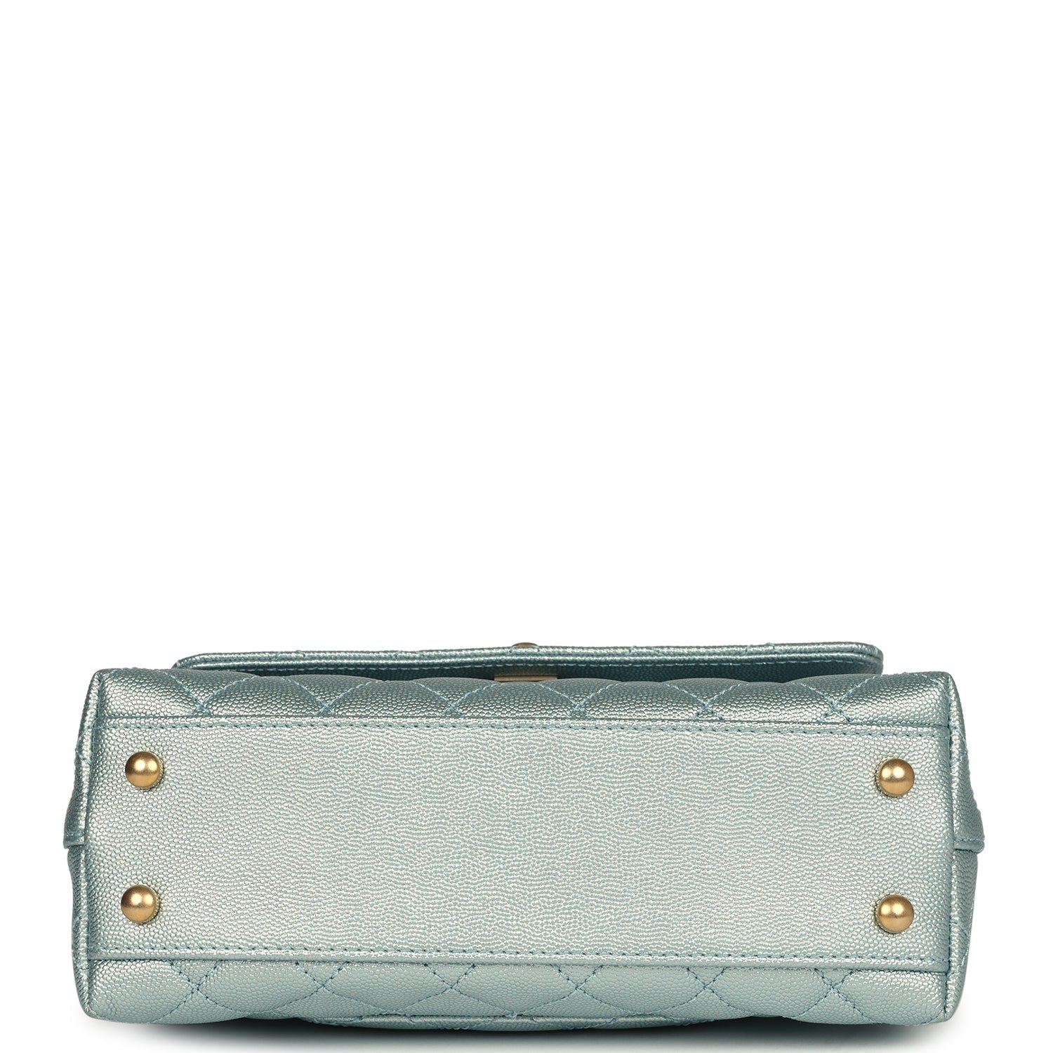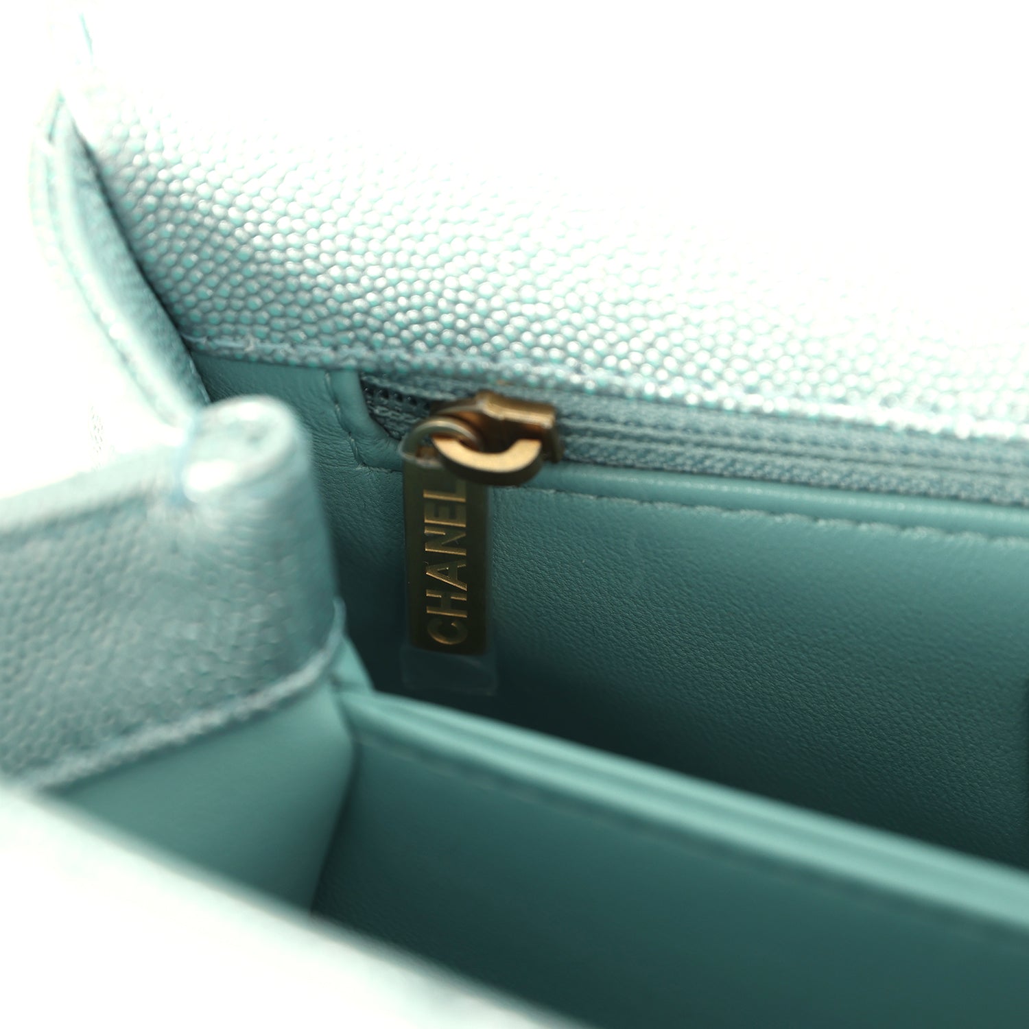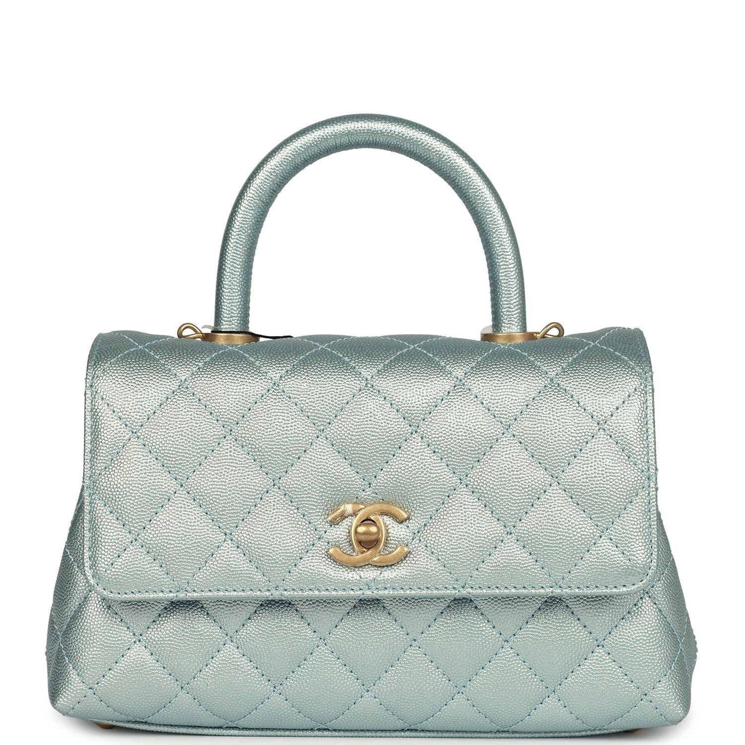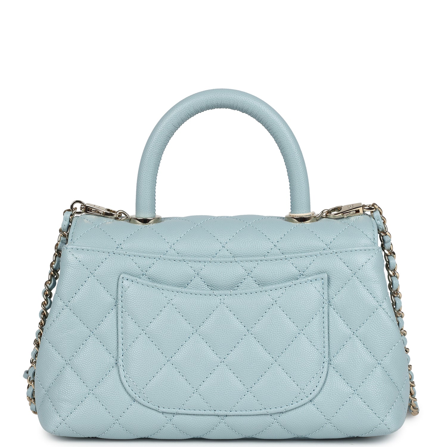 Chanel Small Coco Top Handle Flap Bag Light Blue Caviar Light Gold Hardware