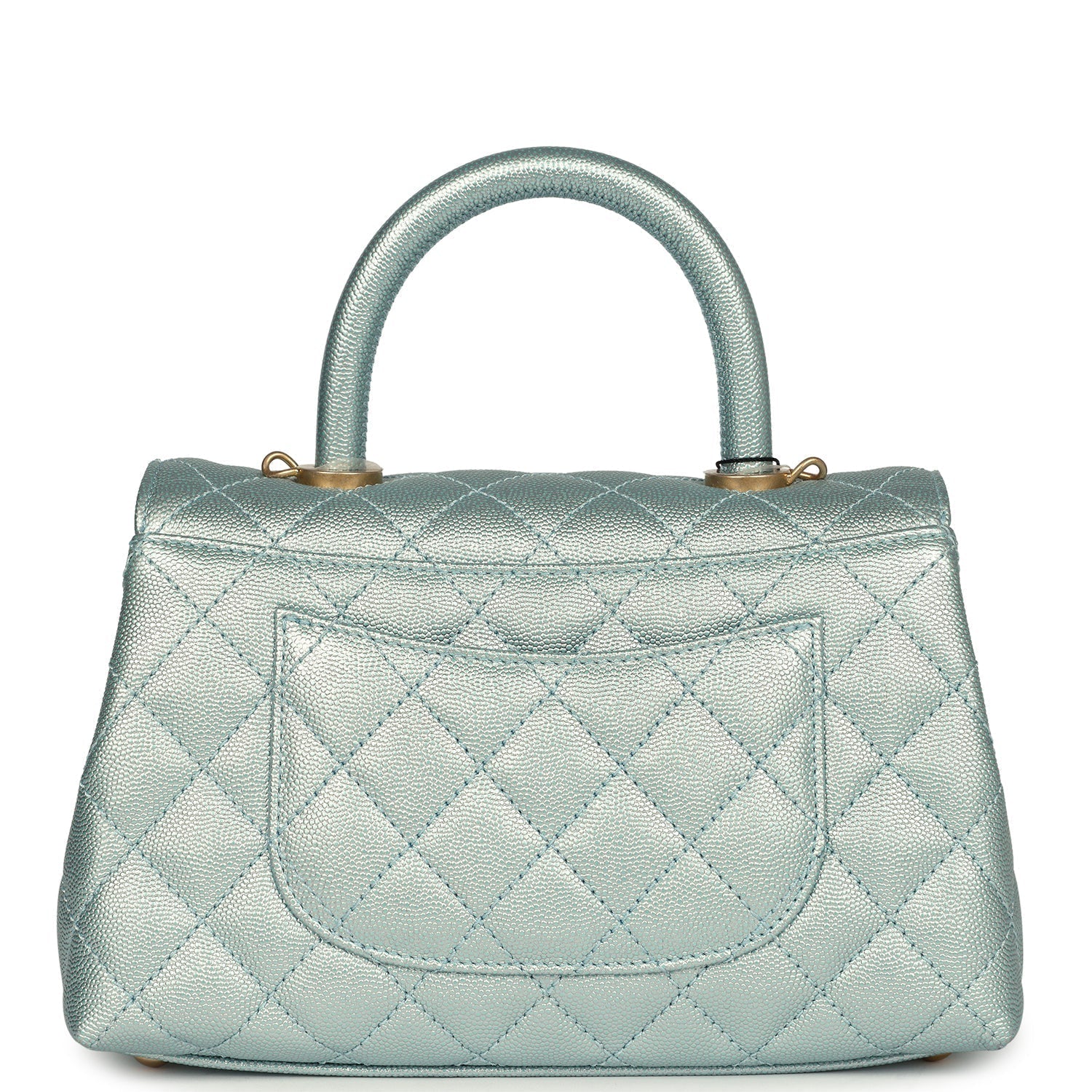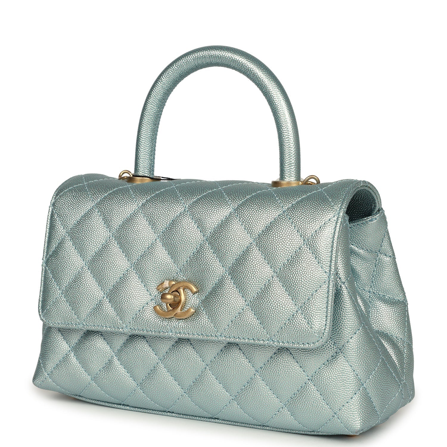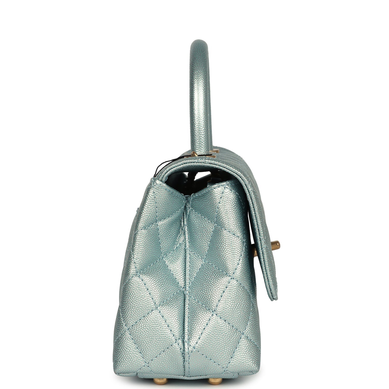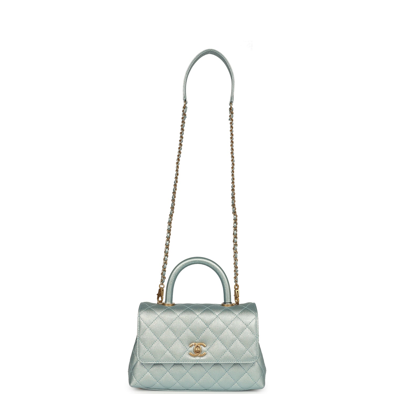 Chanel Small Coco Top Handle Flap Bag Light Blue Caviar Light Gold Hardware