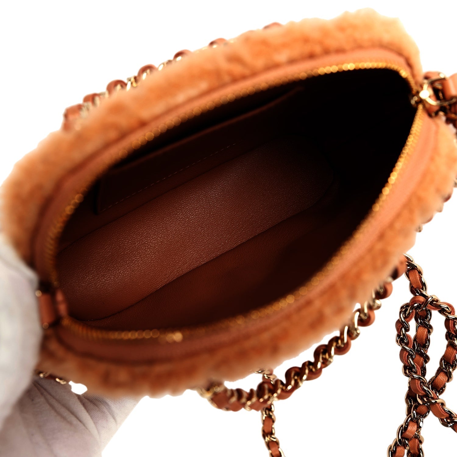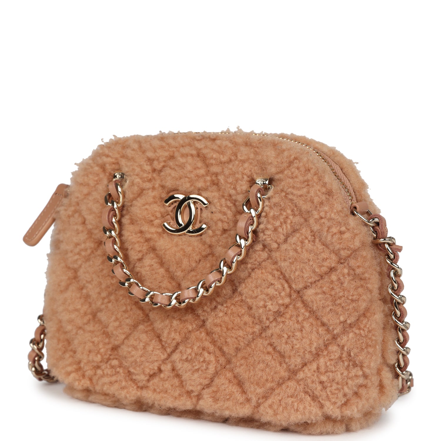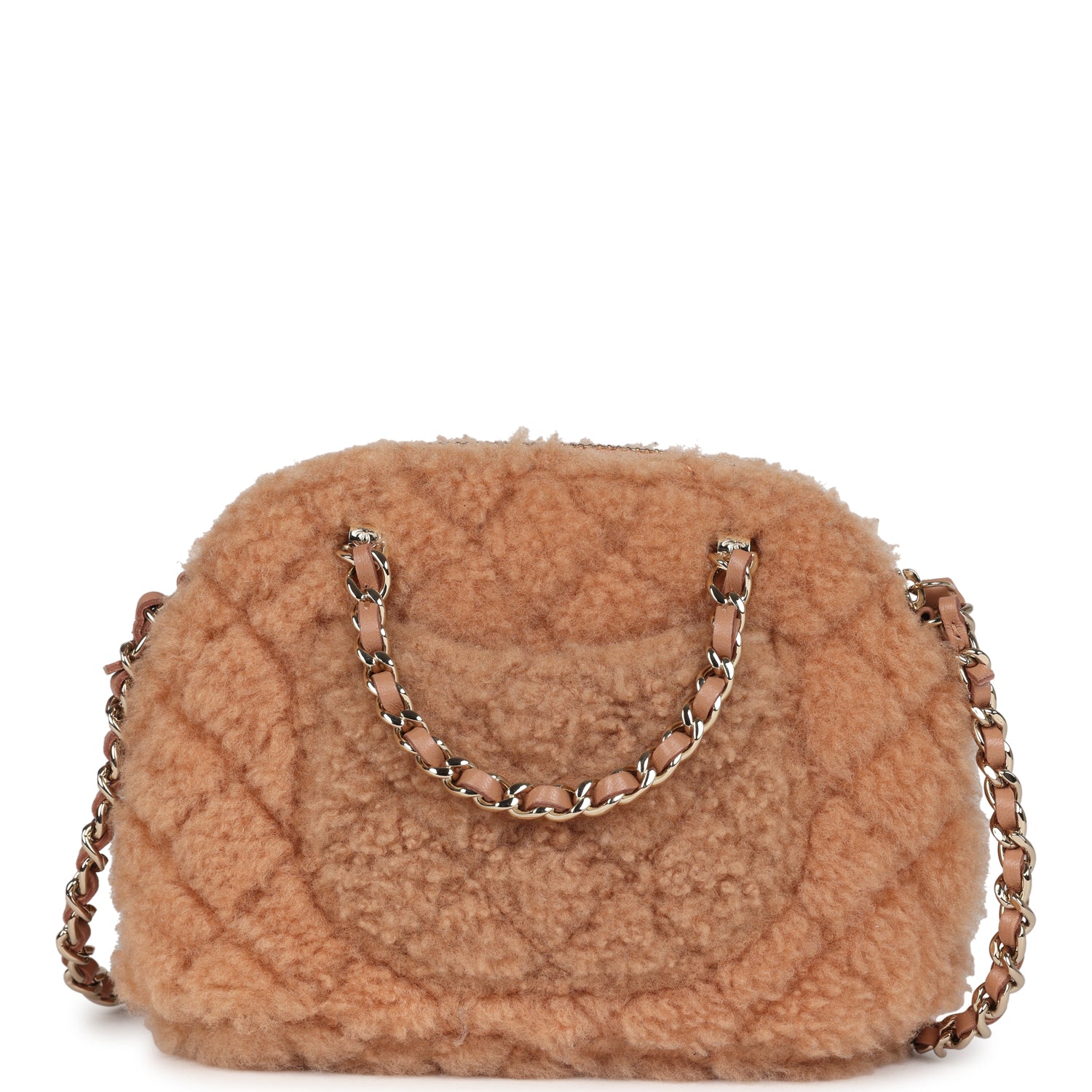 Chanel Small Crossbody Bag Light Brown Shearling Light Gold Hardware