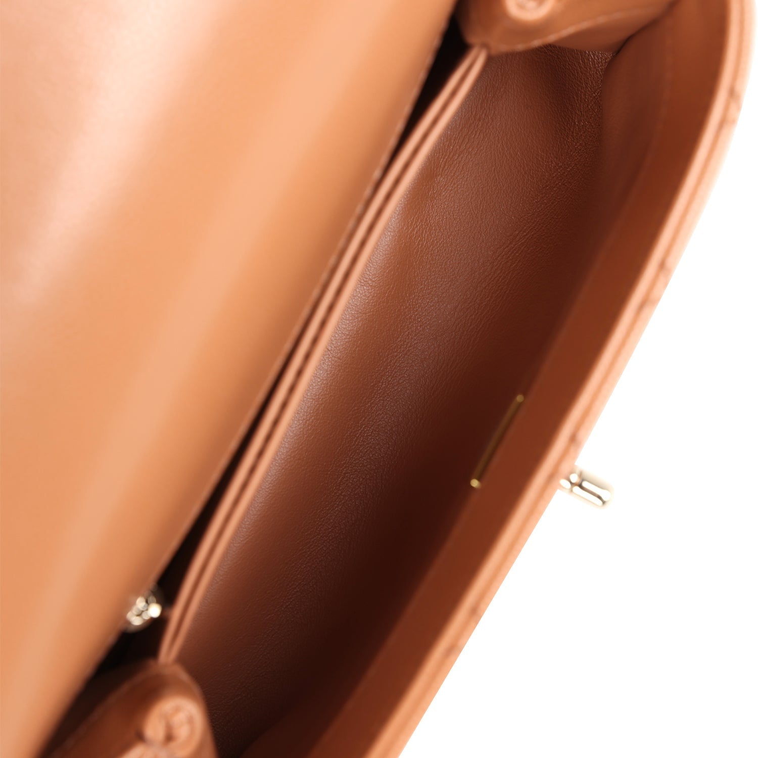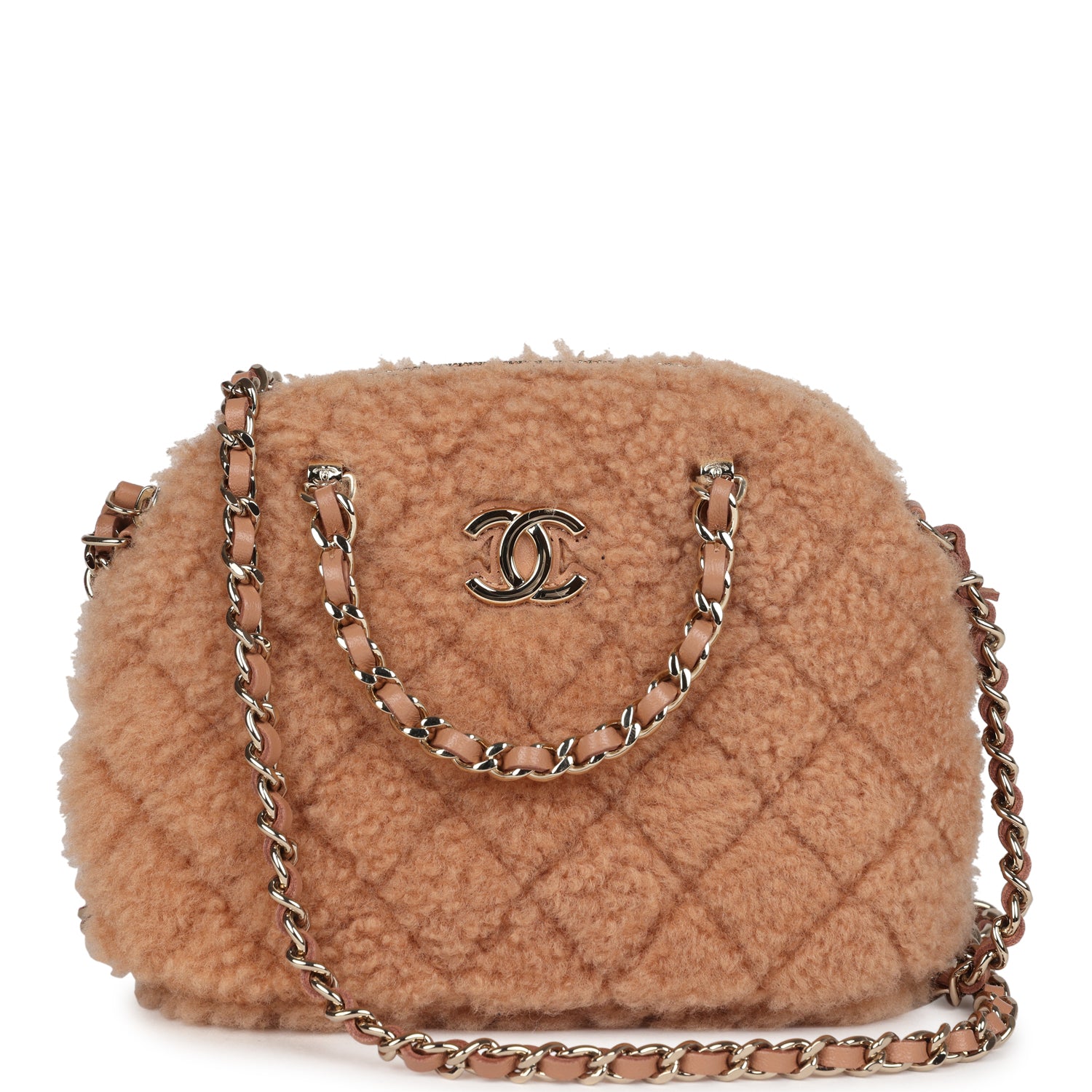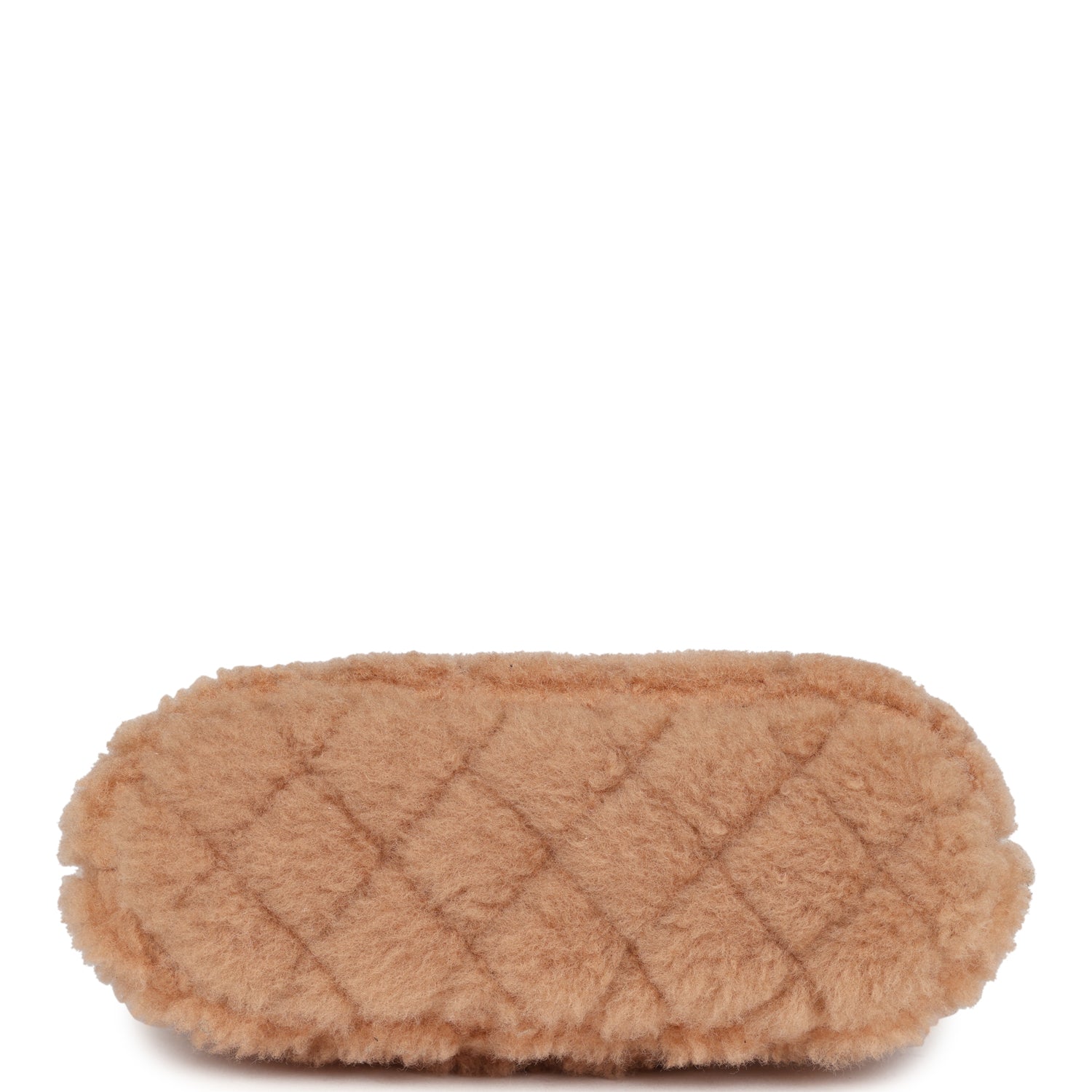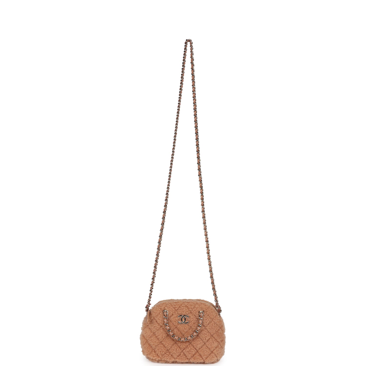 Chanel Small Crossbody Bag Light Brown Shearling Light Gold Hardware