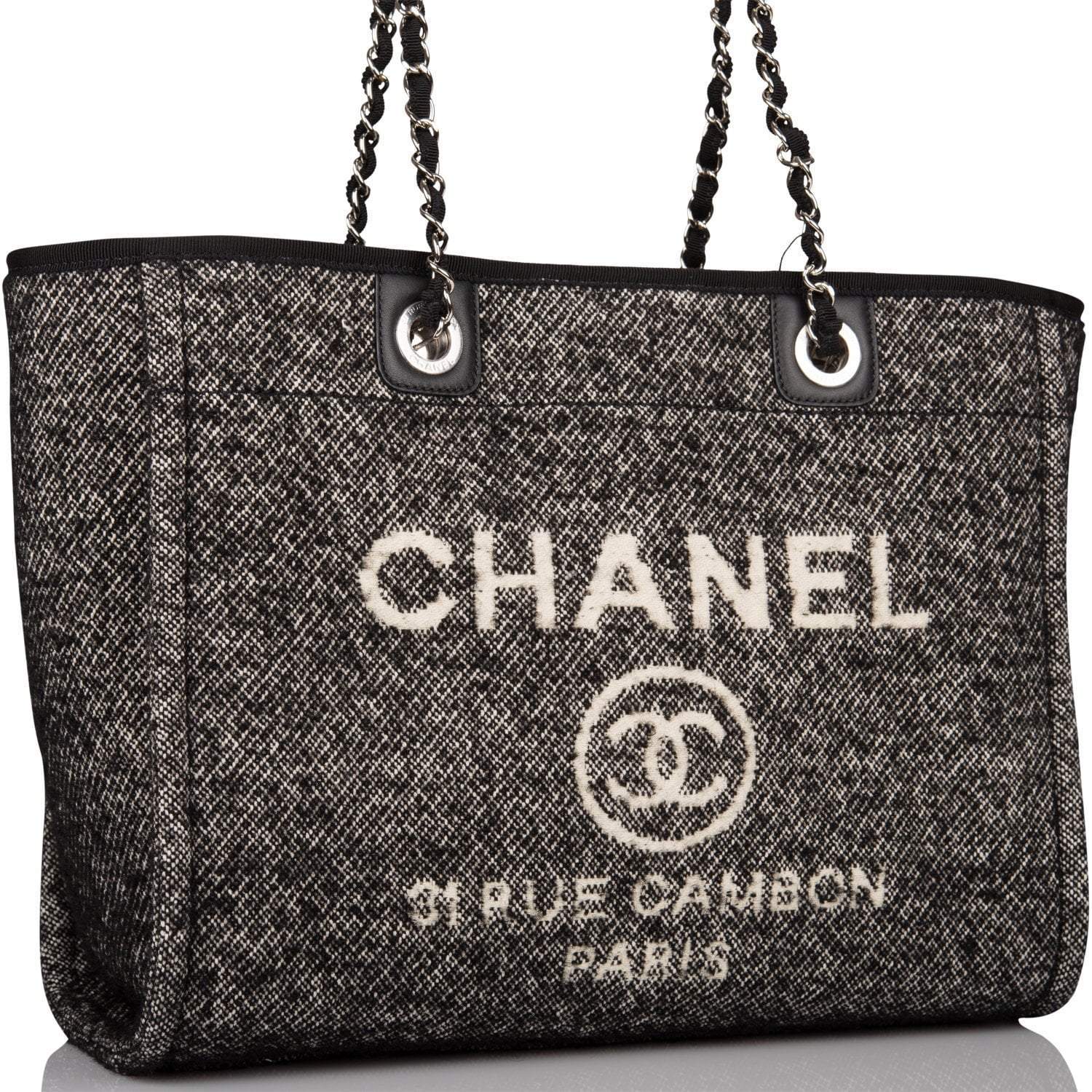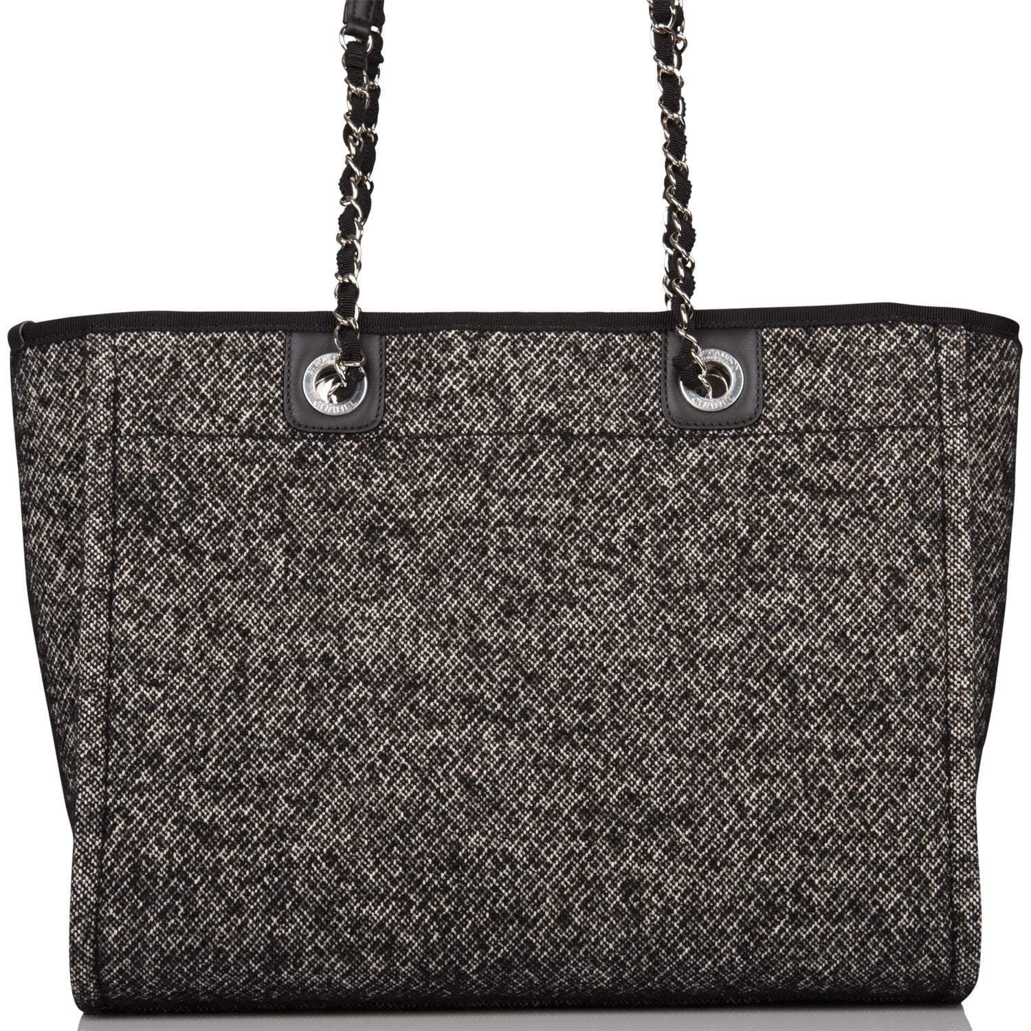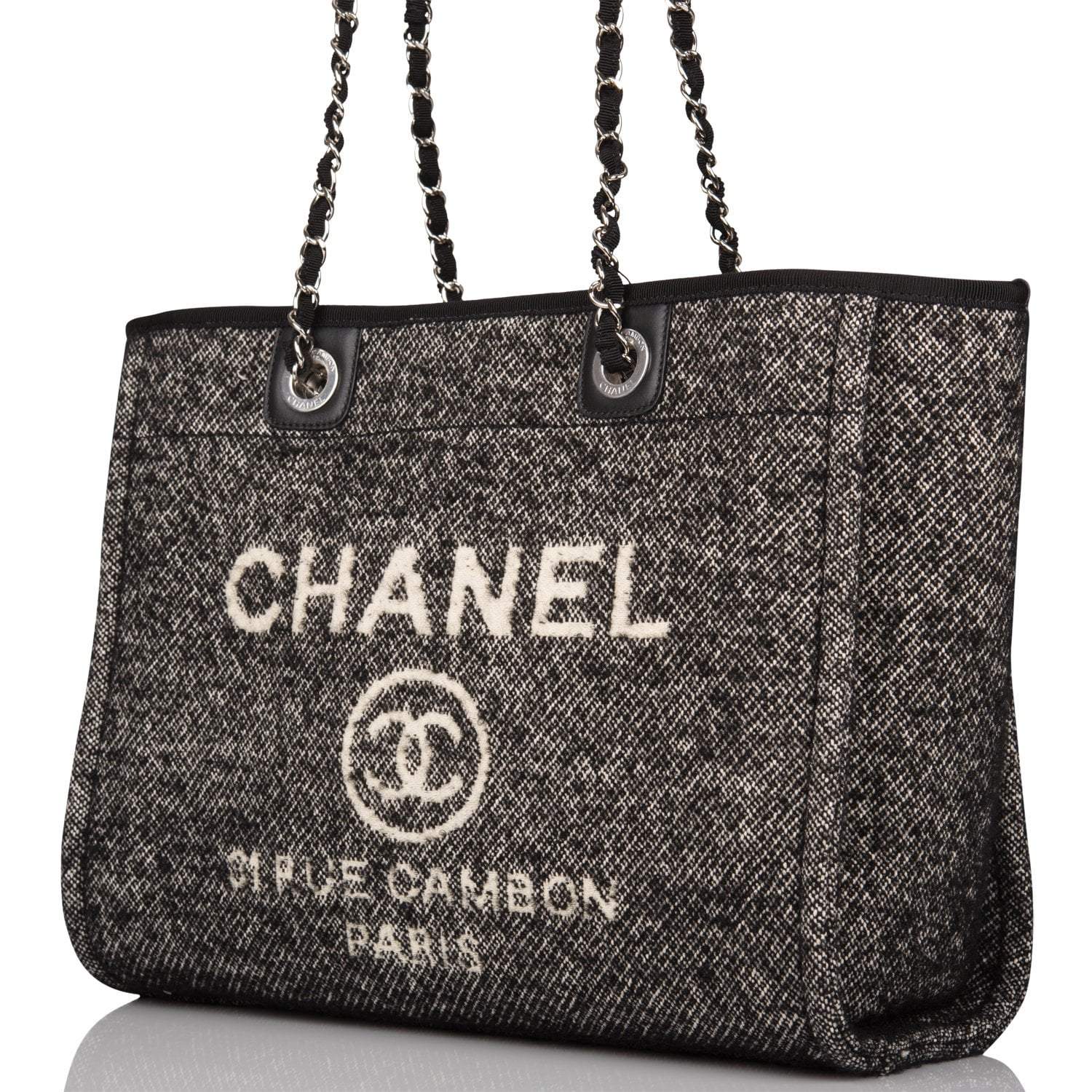 Chanel Small Deauville Shopping Bag Black Wool Silver Hardware