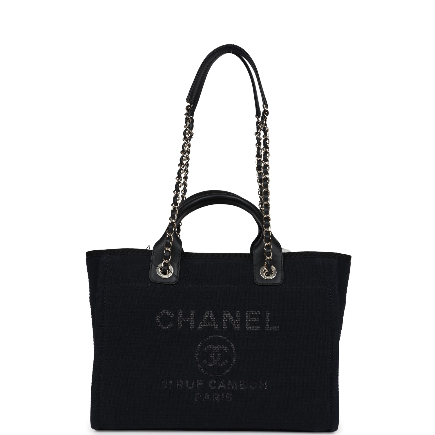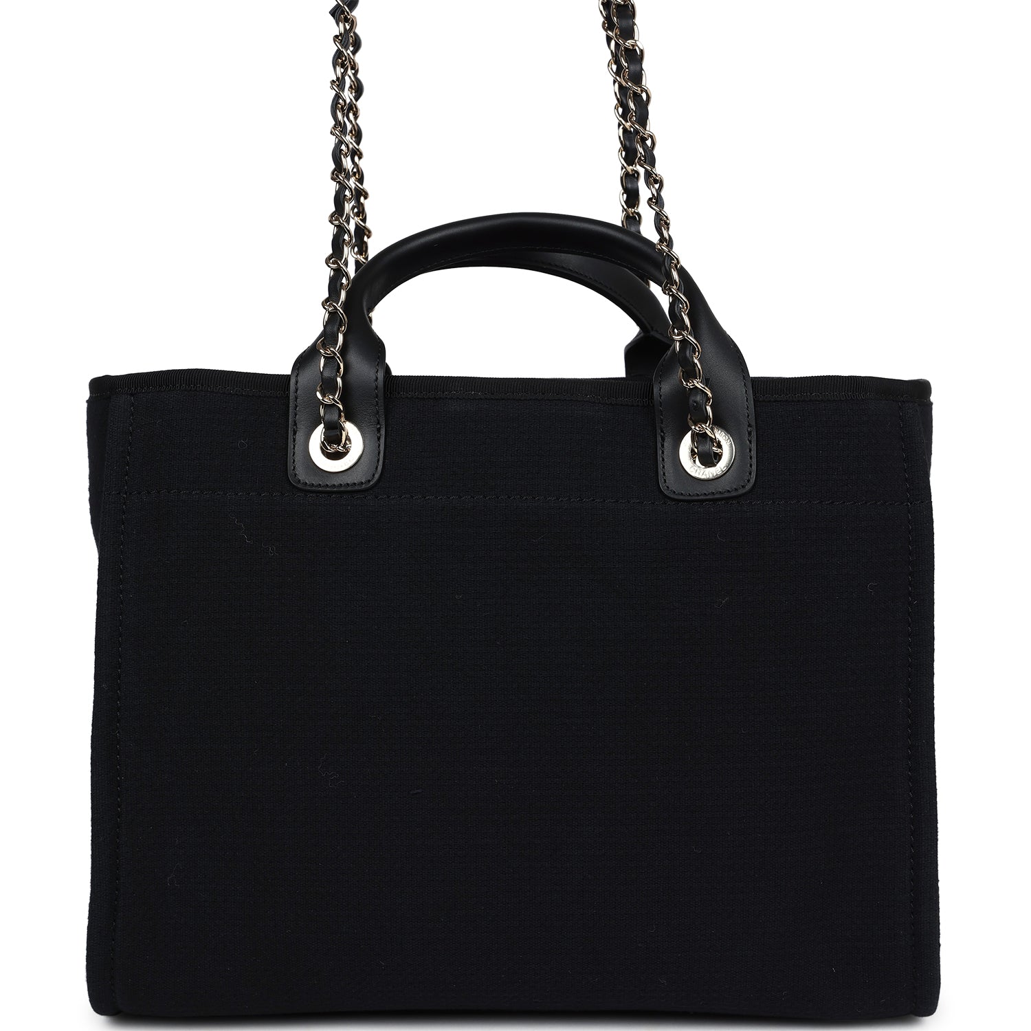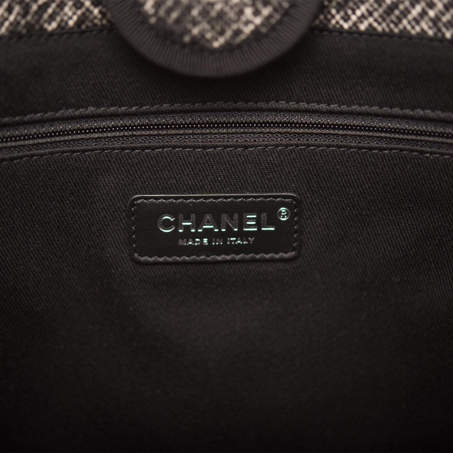 Chanel Small Deauville Shopping Bag Black Wool Silver Hardware