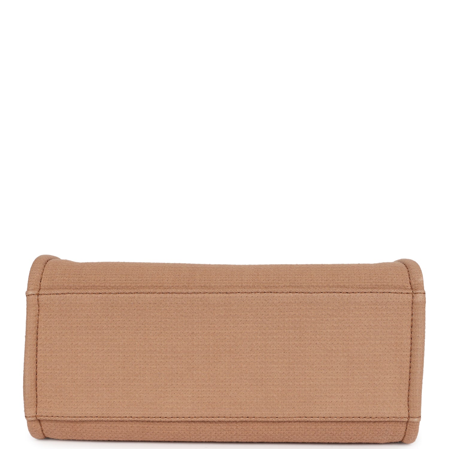 Chanel Small Deauville Shopping Tote Dark Beige Canvas Light Gold Hardware