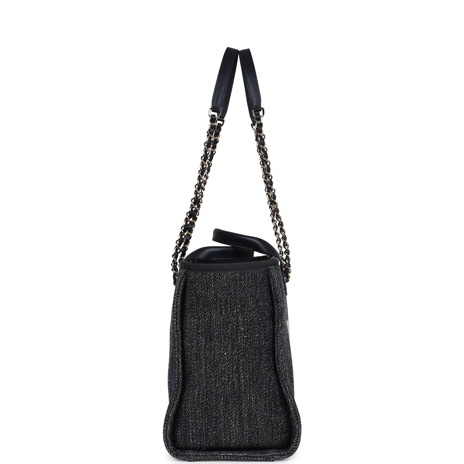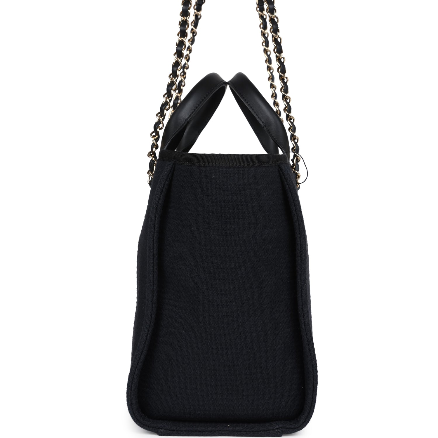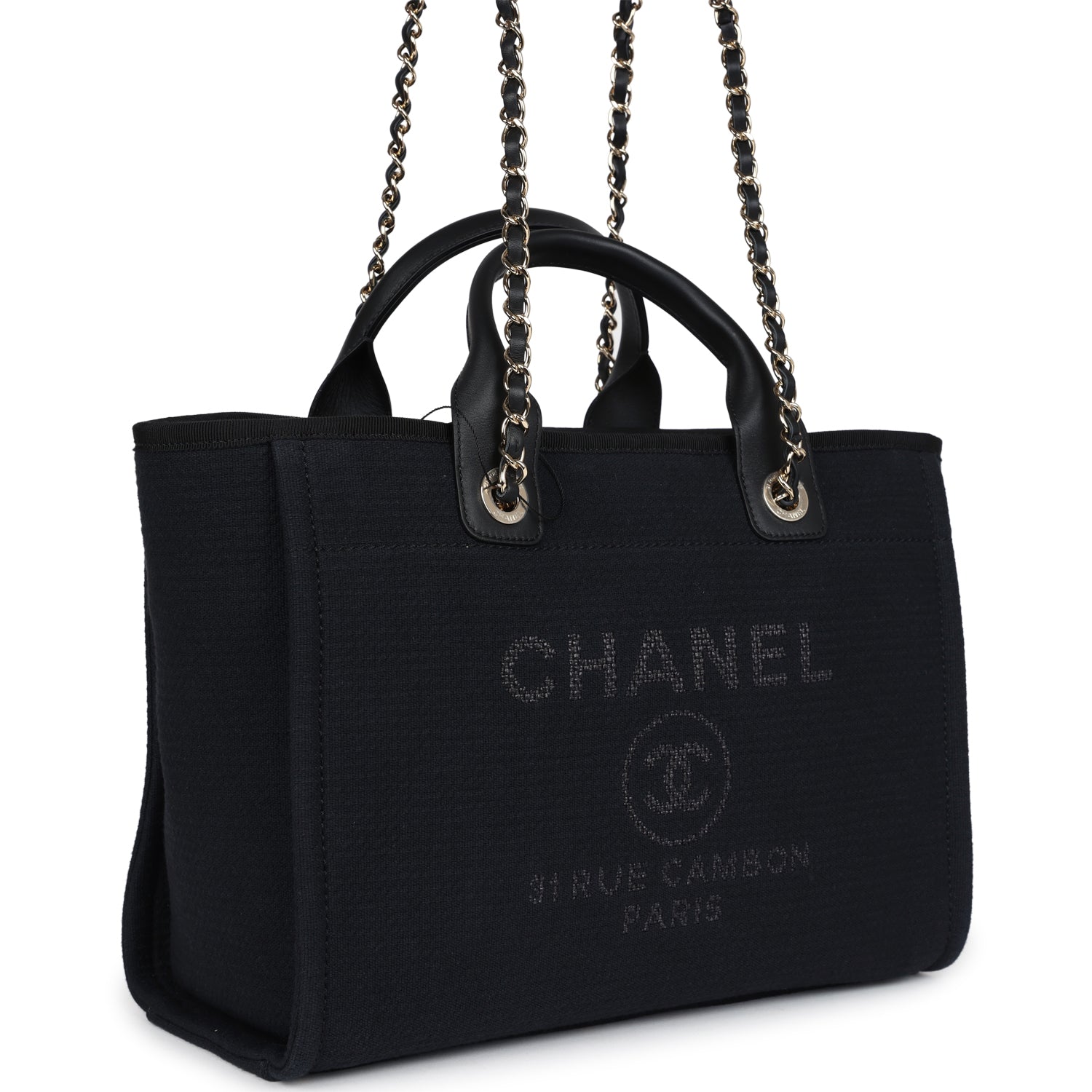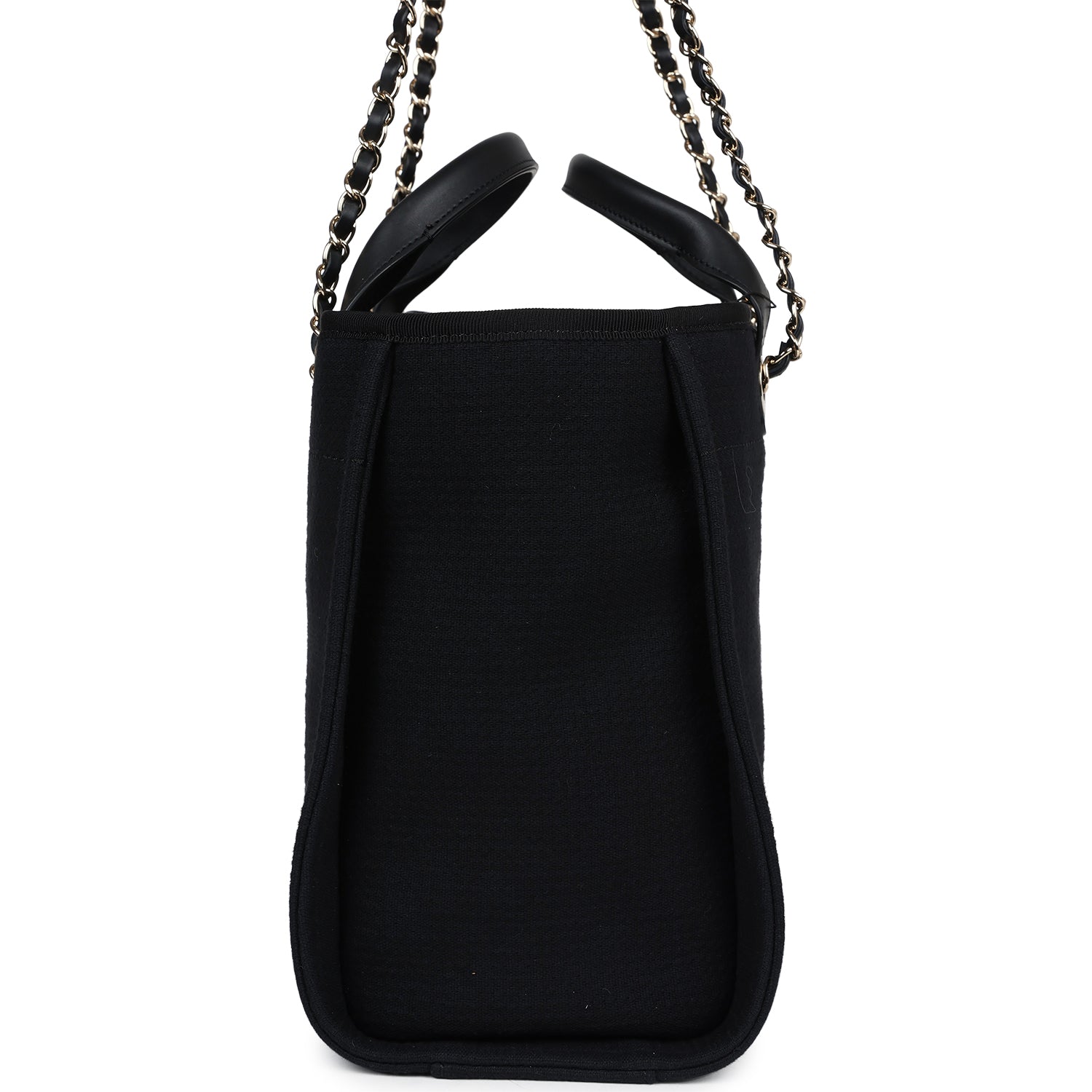 Chanel Small Deauville Shopping Tote Black Canvas Light Gold Hardware