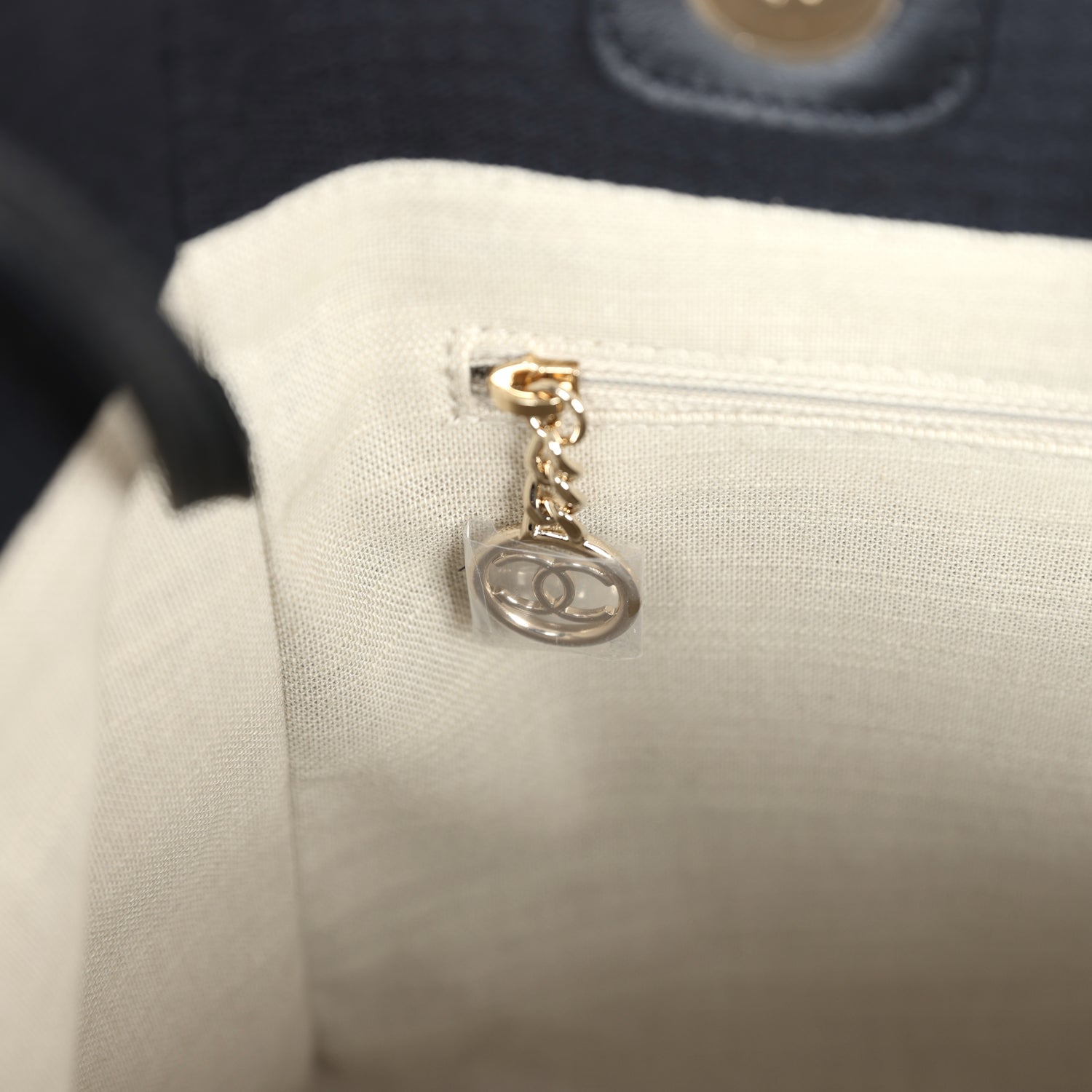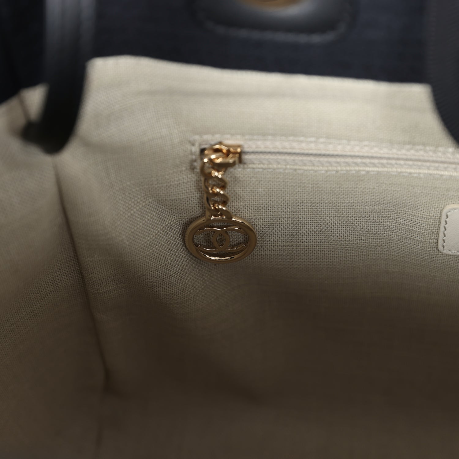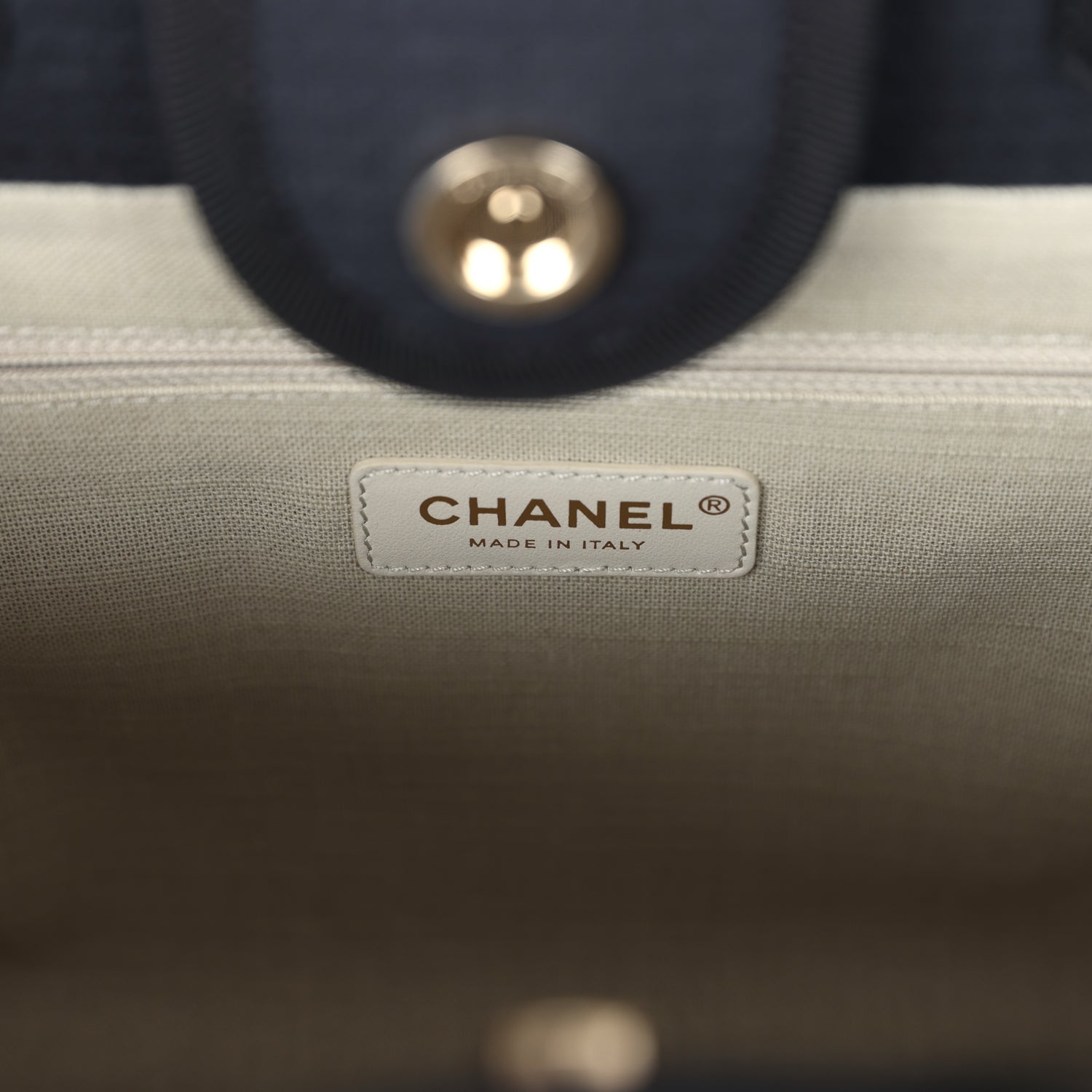 Chanel Small Deauville Shopping Tote Dark Blue Denim Light Gold Hardware