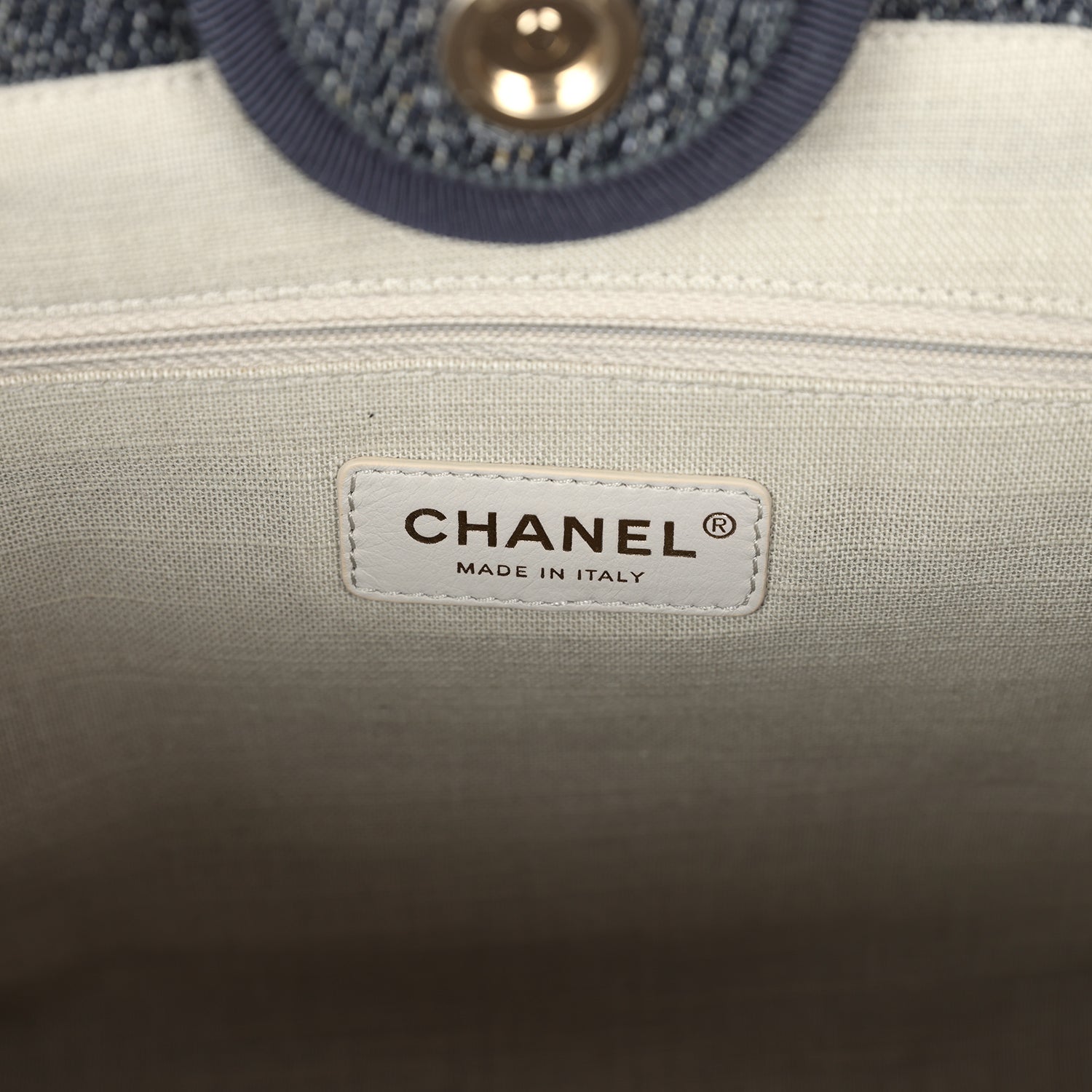 Chanel Small Deauville Shopping Tote Blue and Beige Boucle Light Gold Hardware