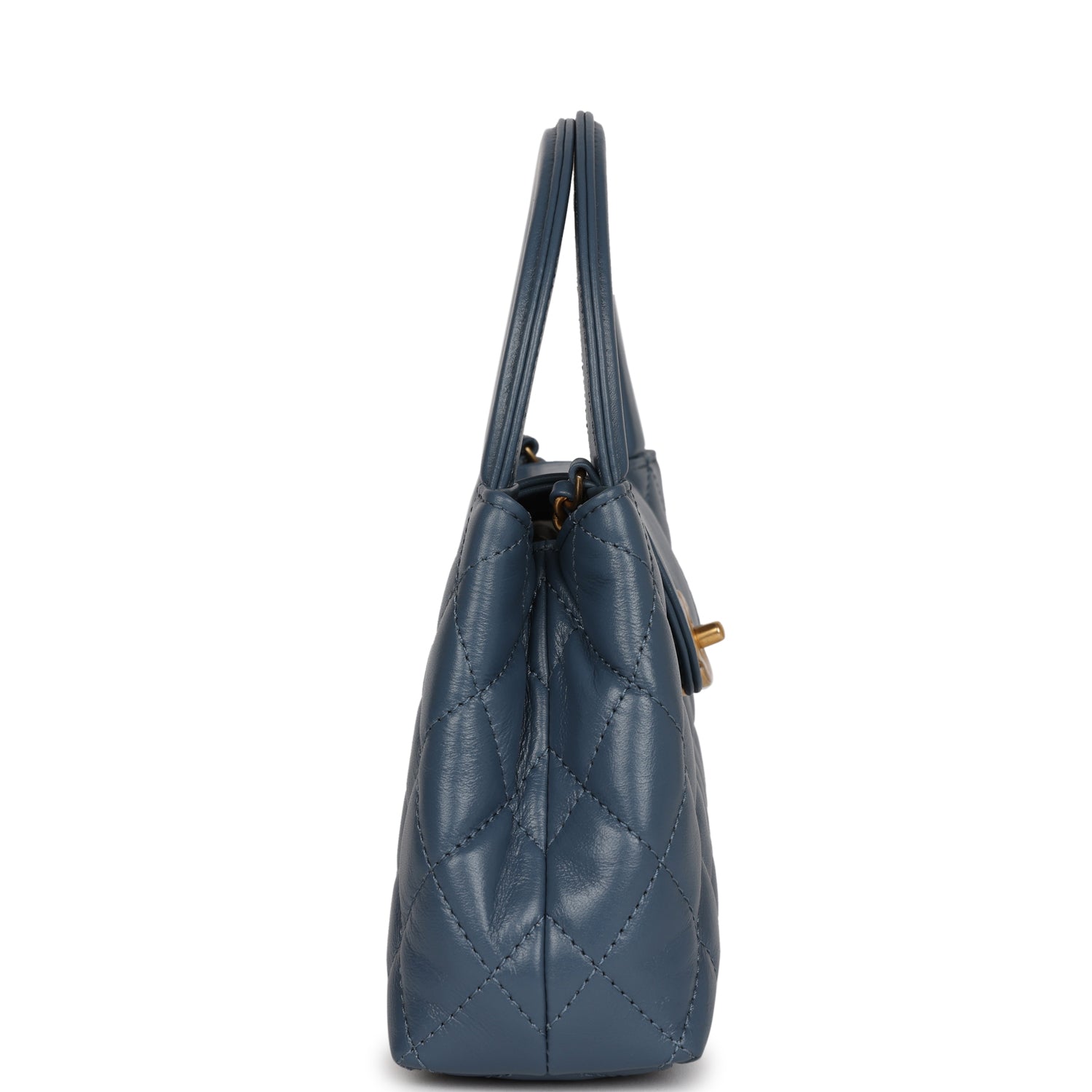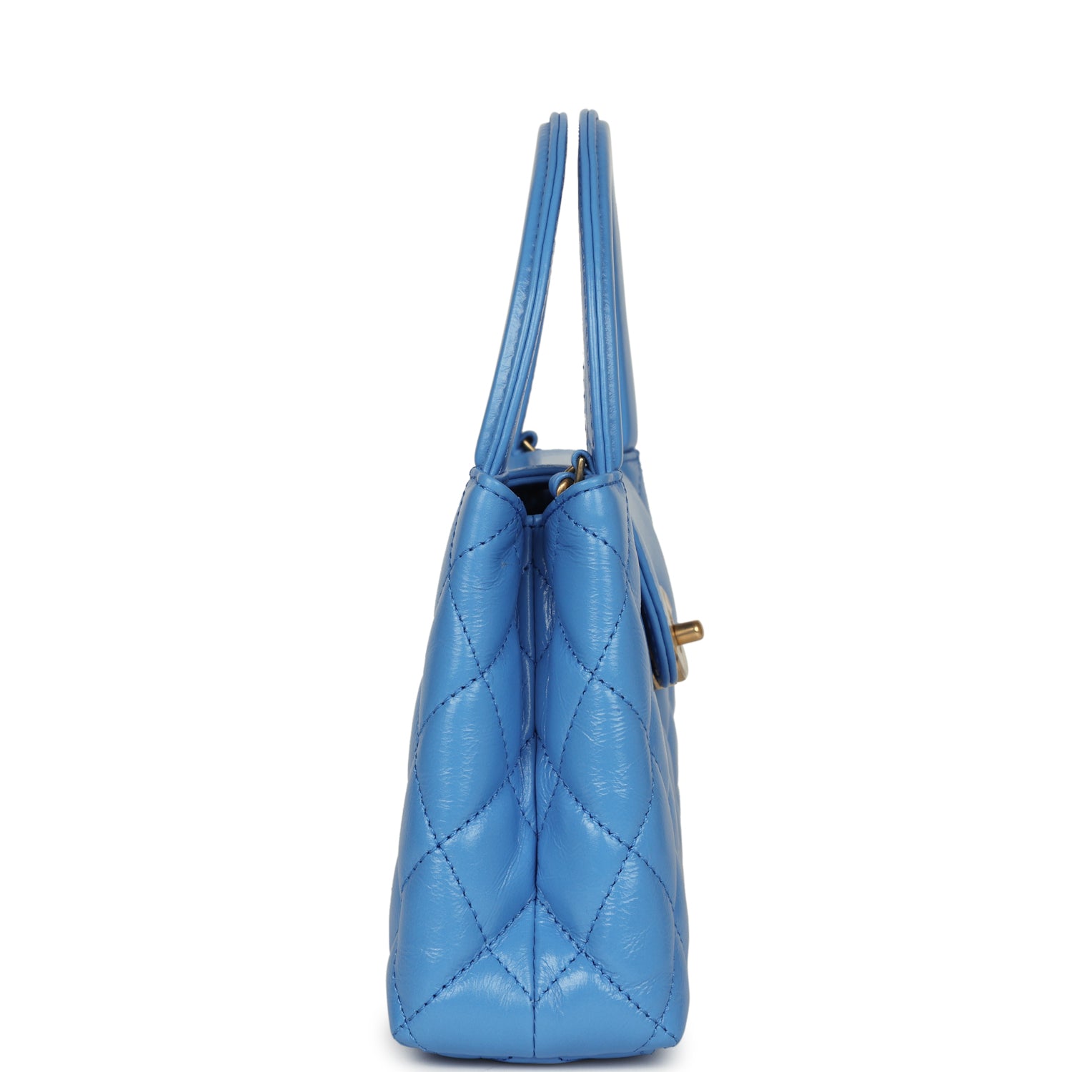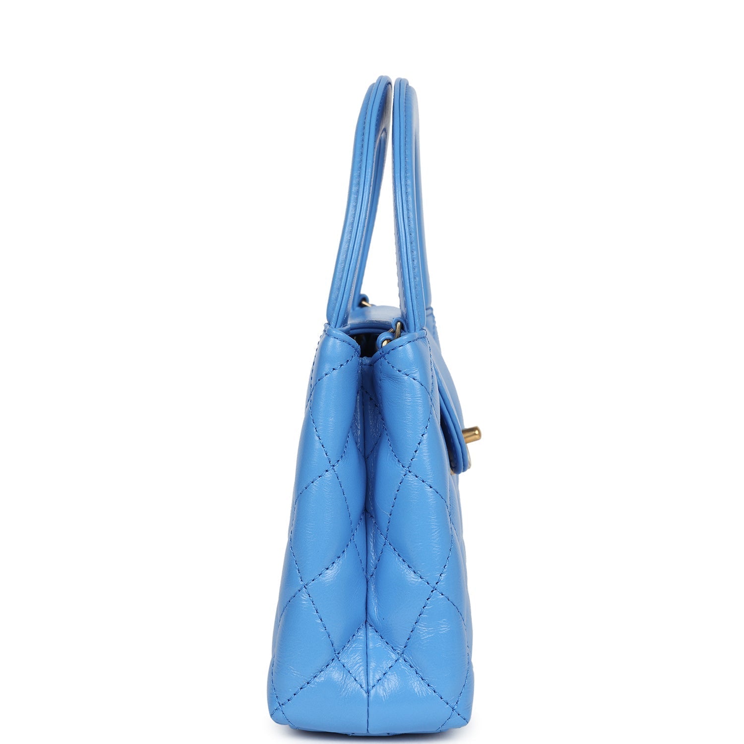 Chanel Small Kelly Shopper Blue Shiny Aged Calfskin Brushed Gold Hardware