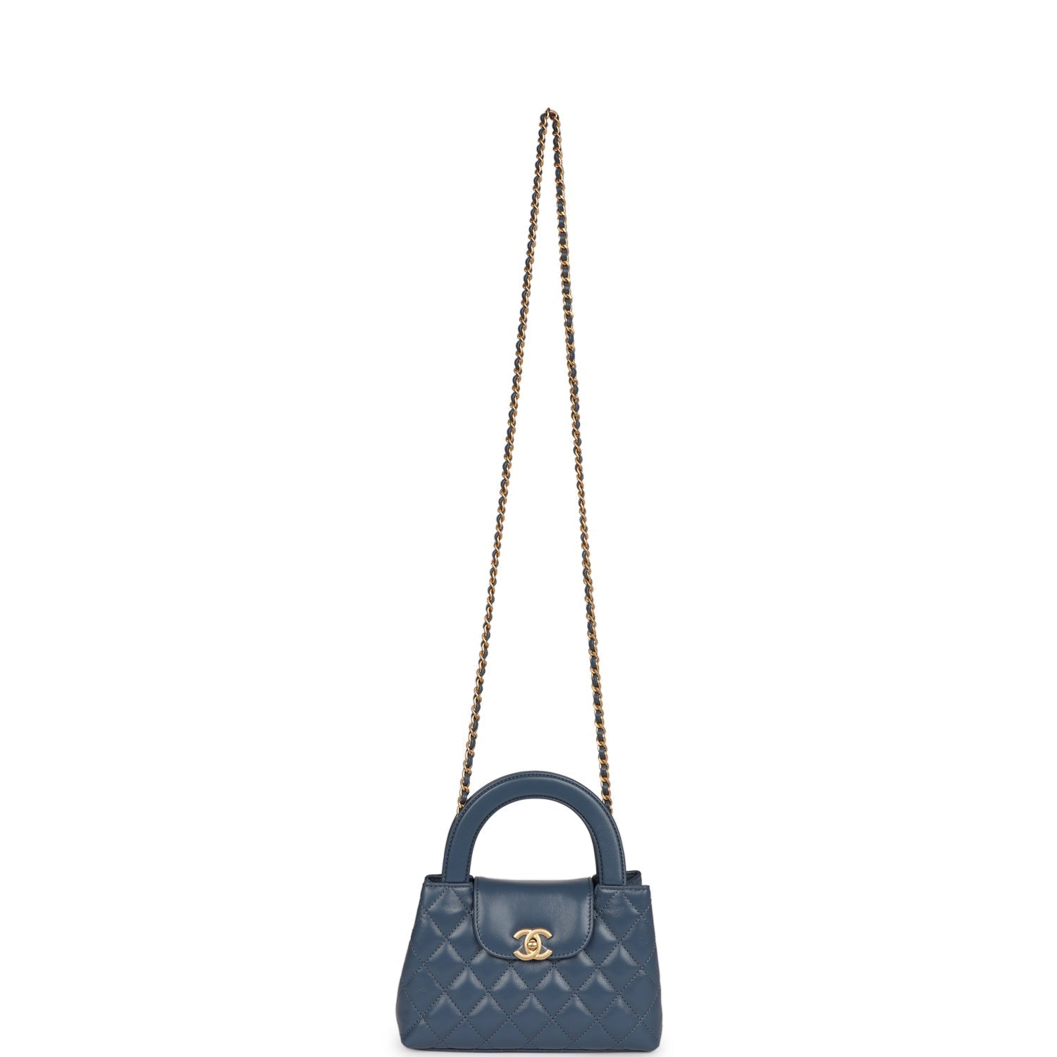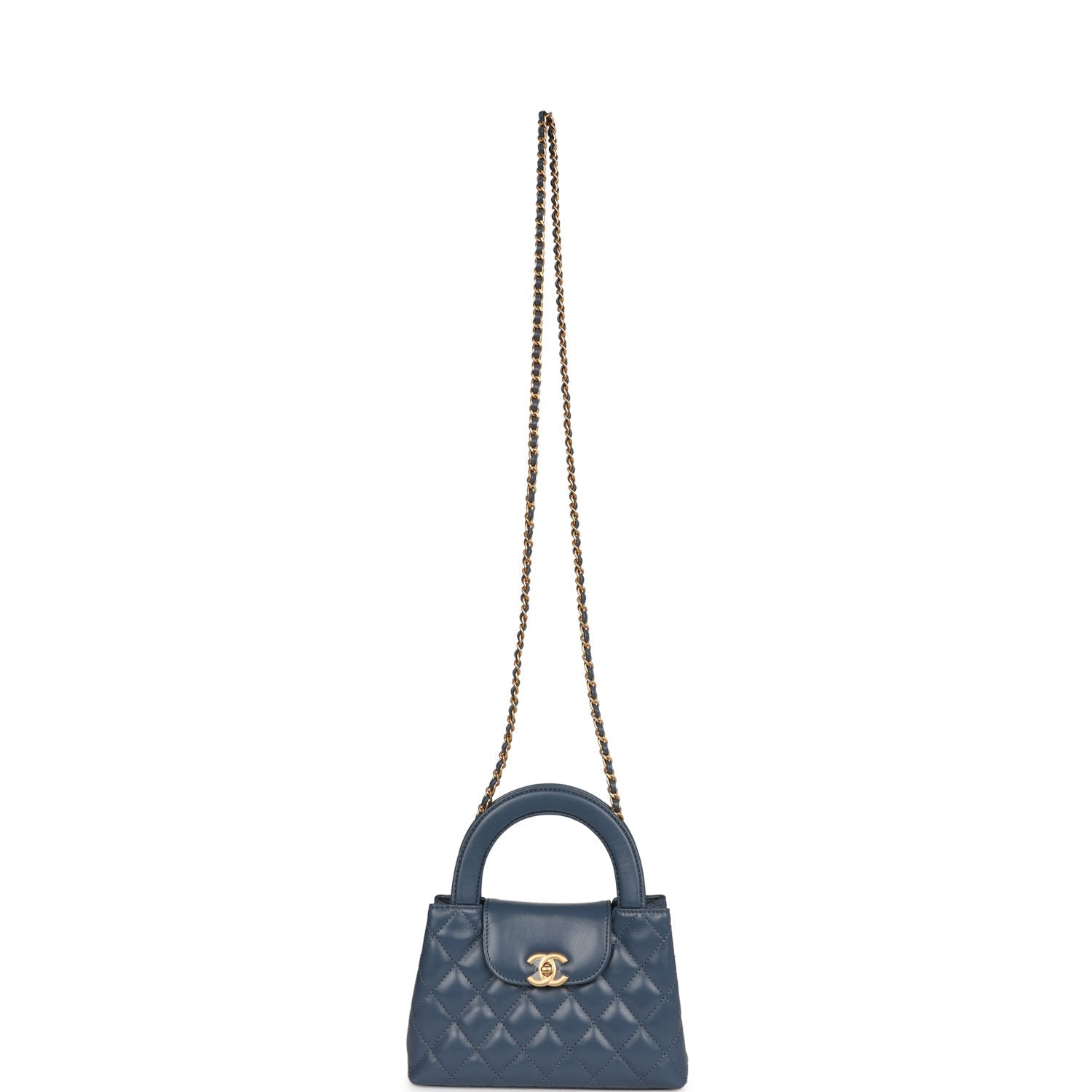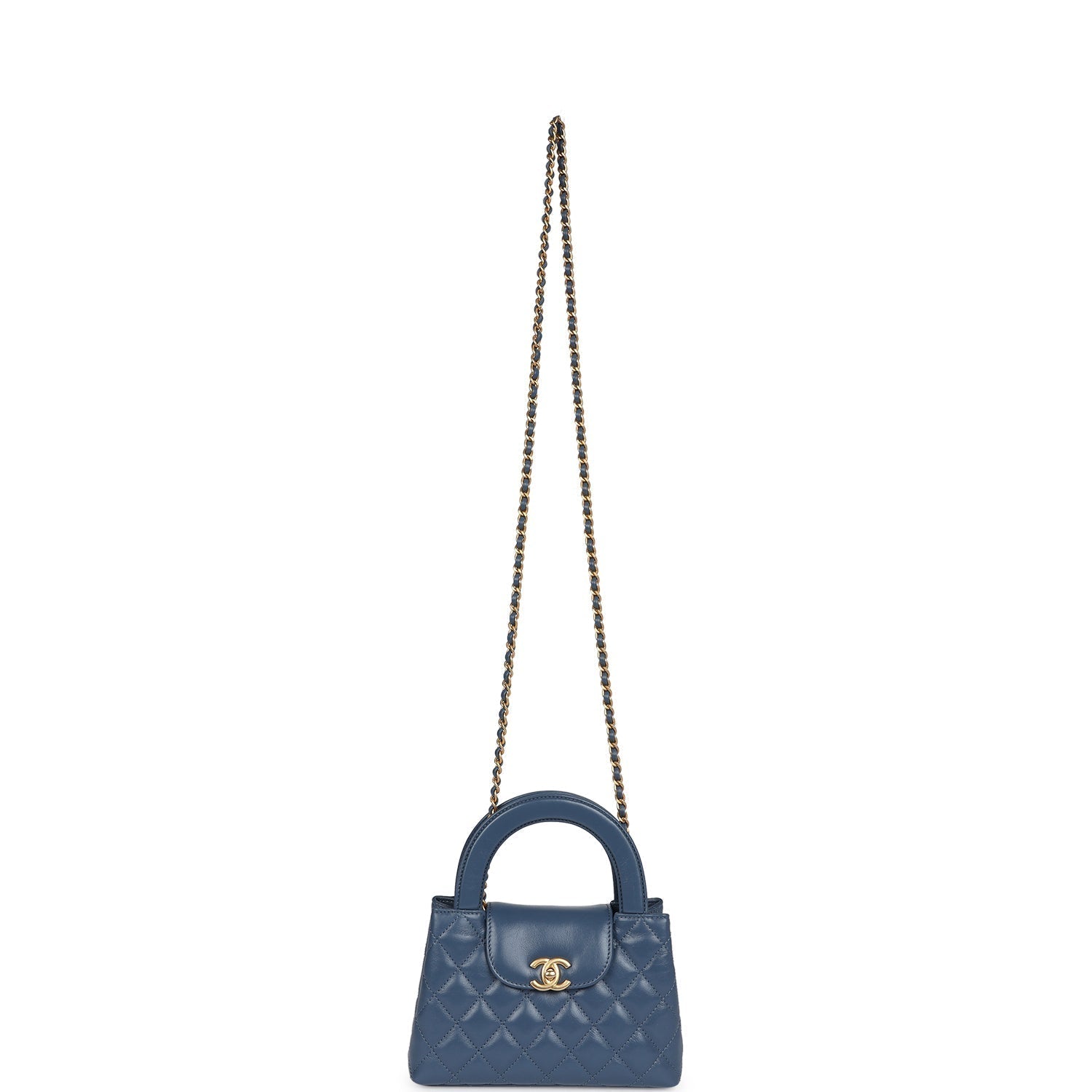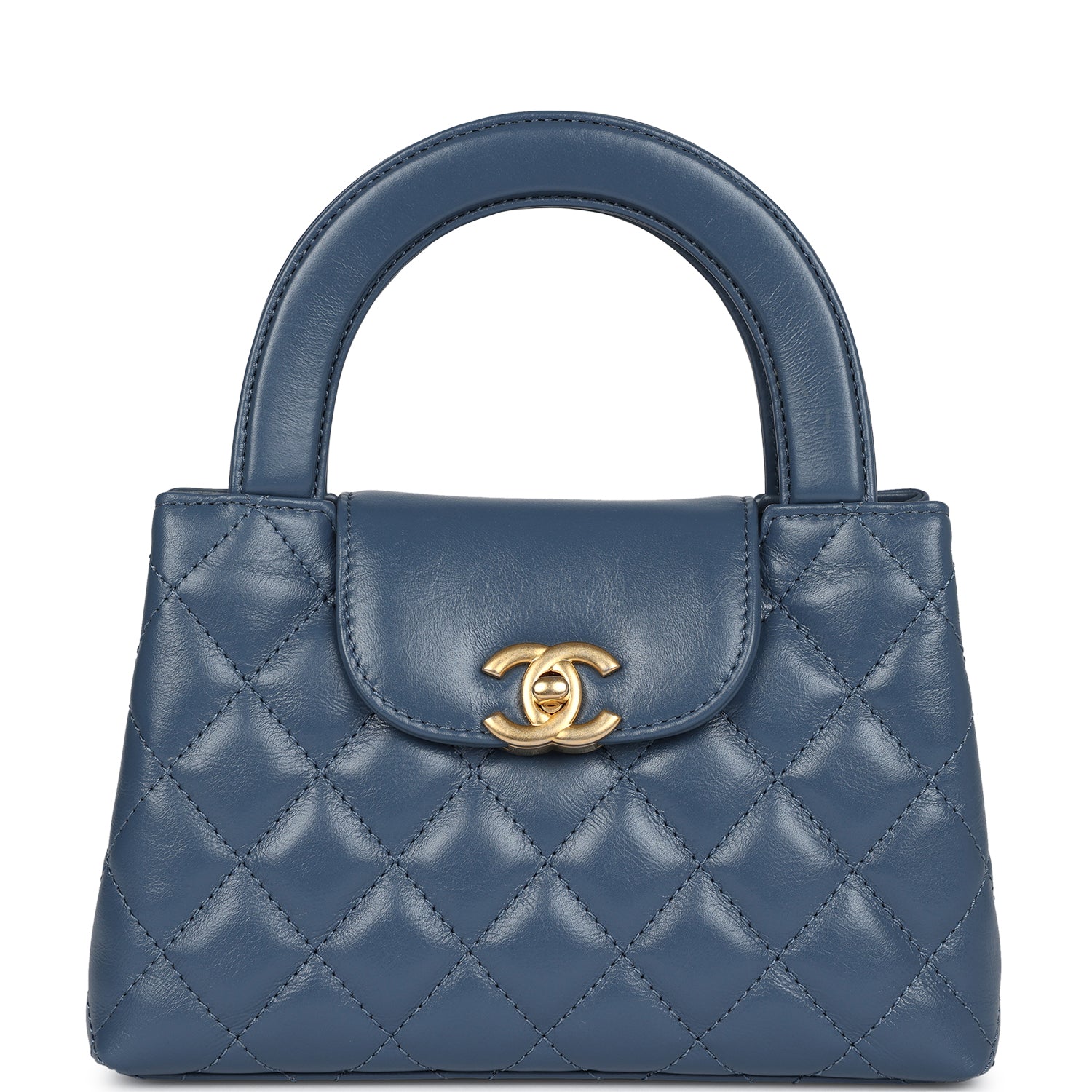 Chanel Small Kelly Shopper Blue Shiny Aged Calfskin Brushed Gold Hardware