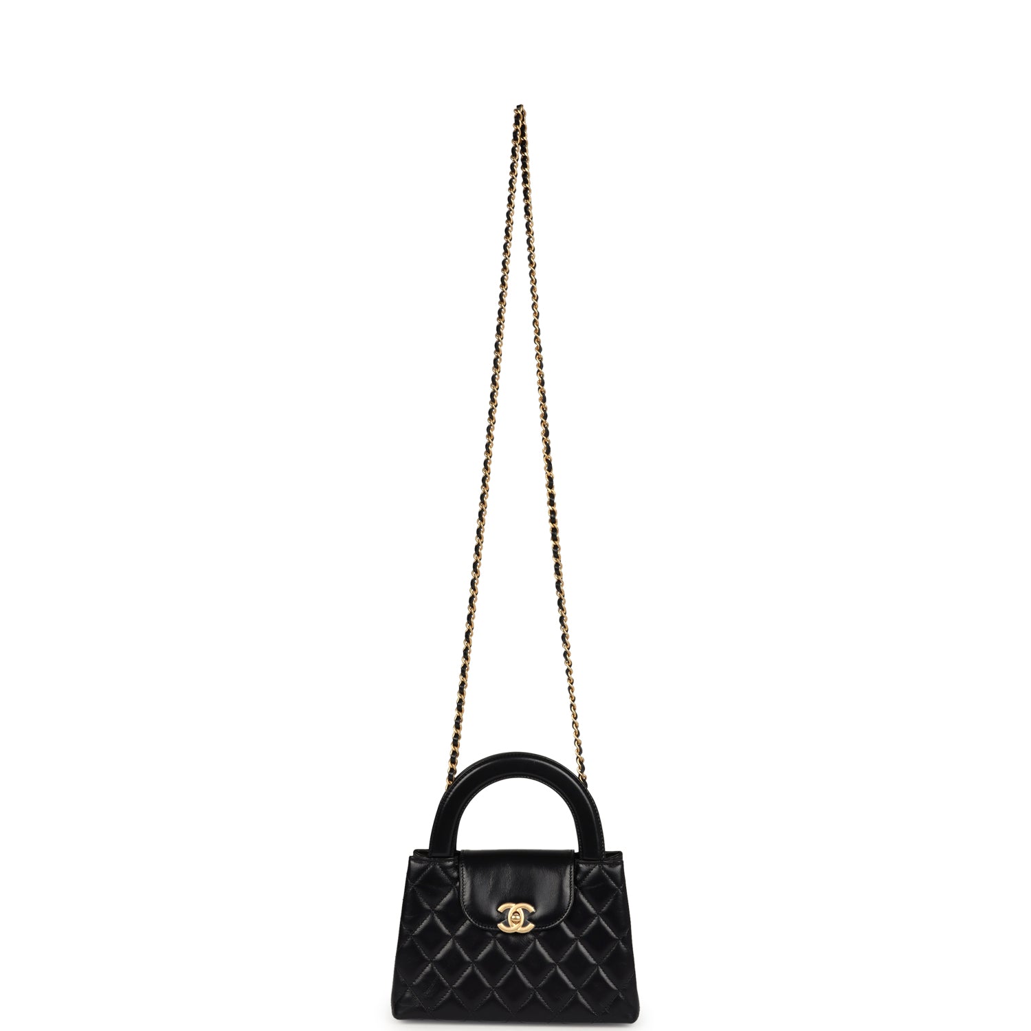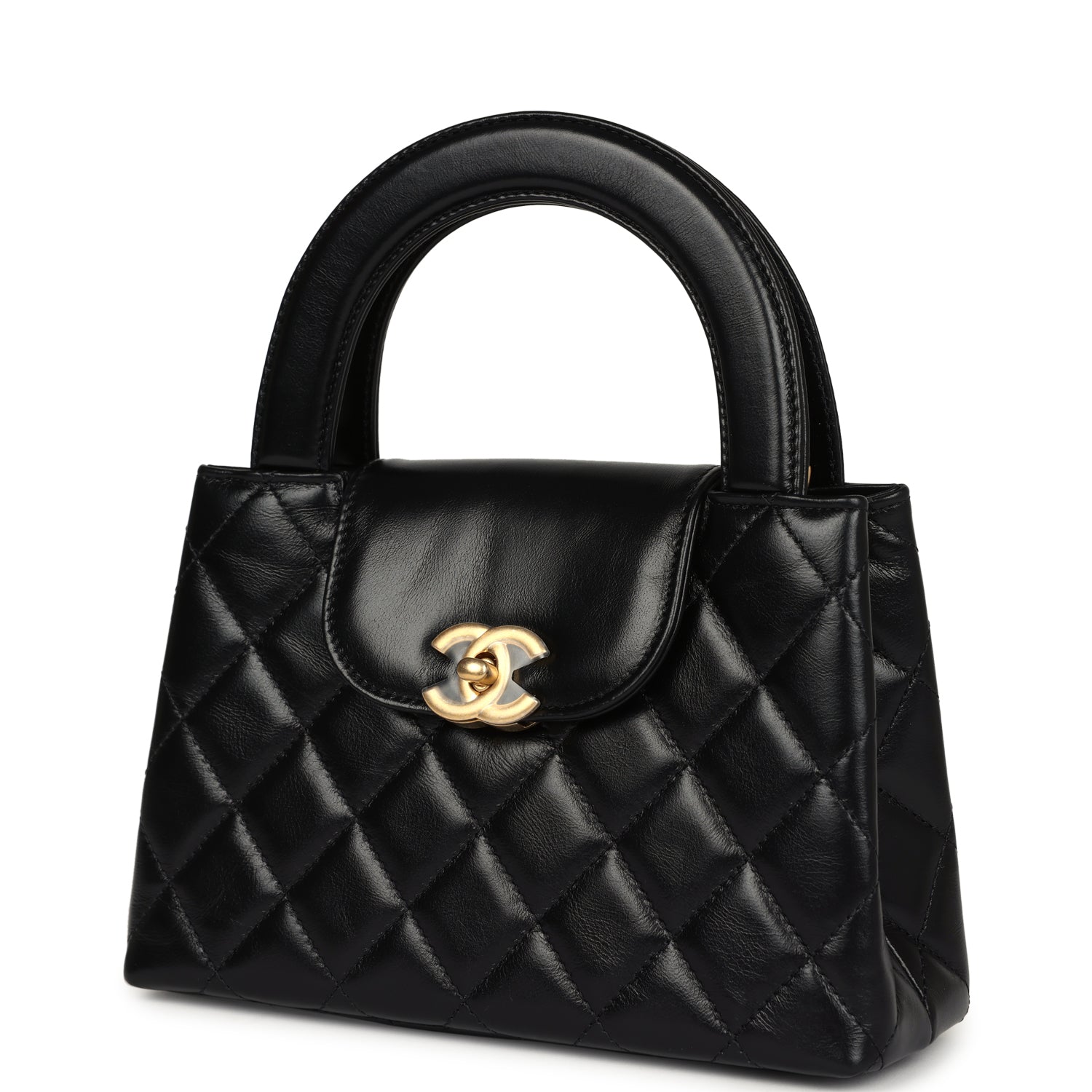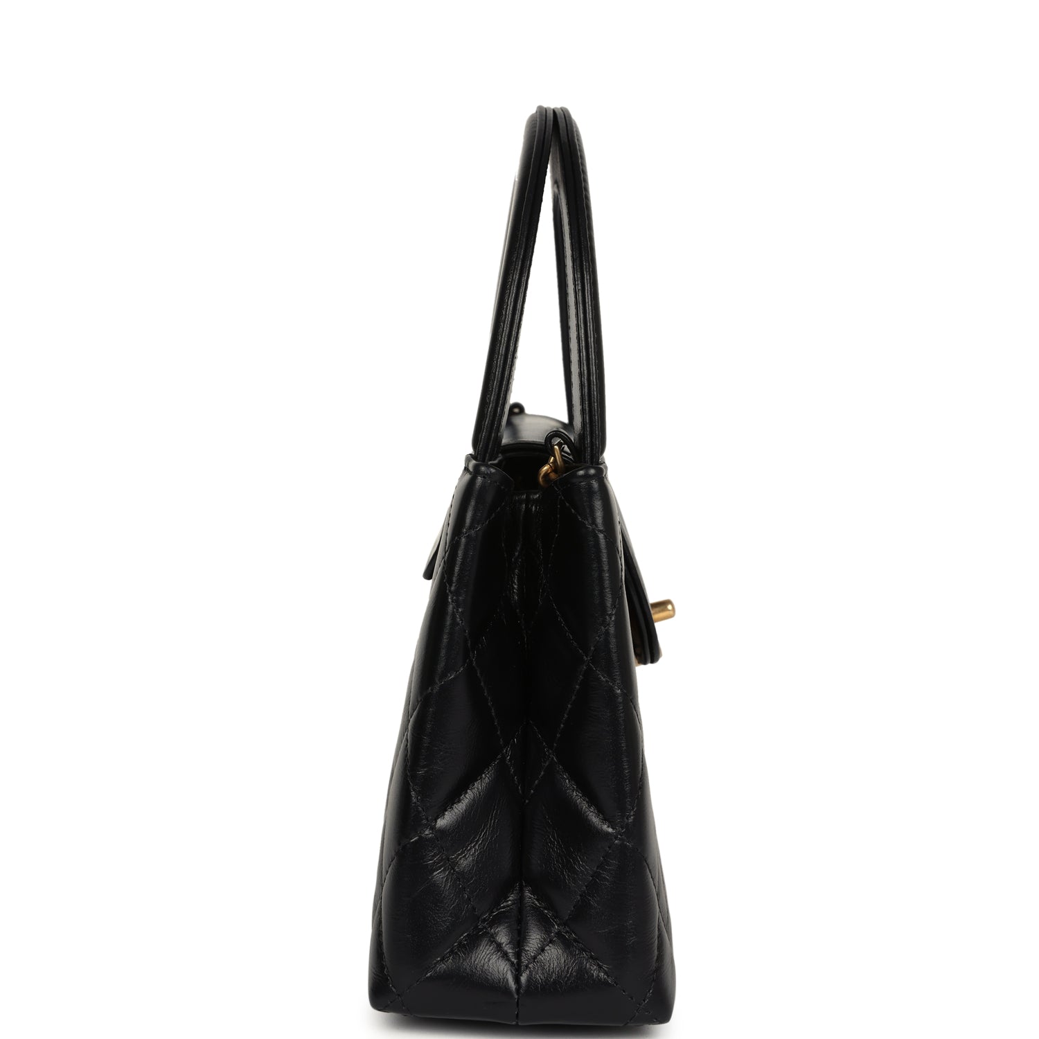 Chanel Small Kelly Shopper Black Shiny Aged Calfskin Brushed Gold Hardware