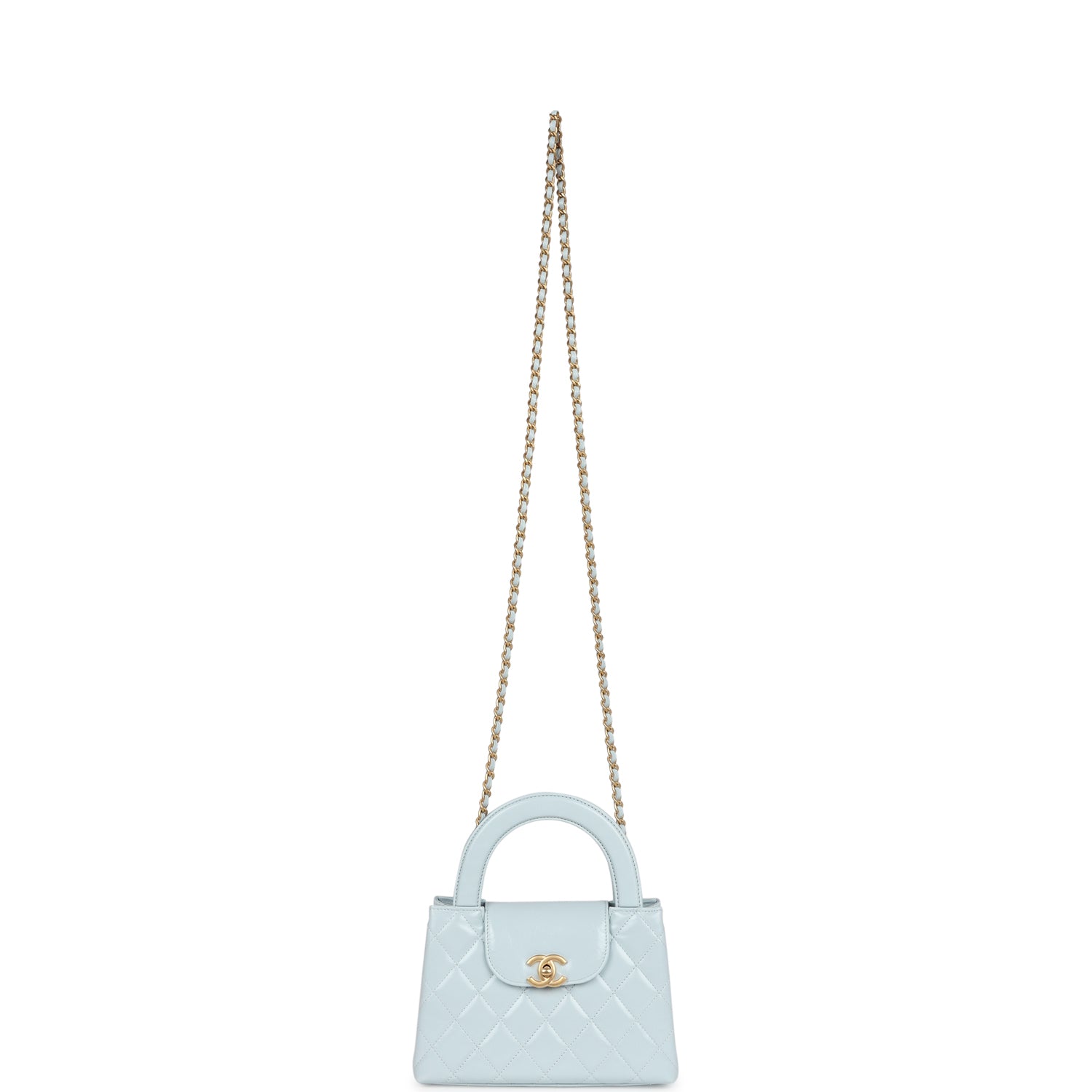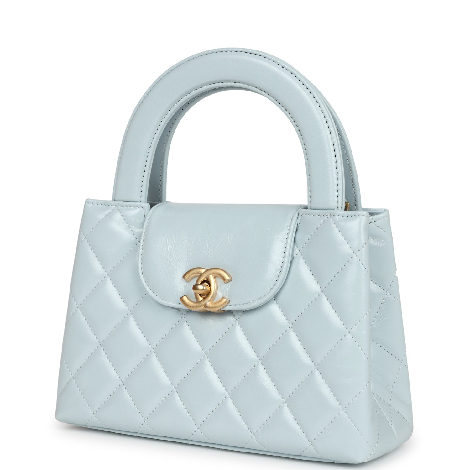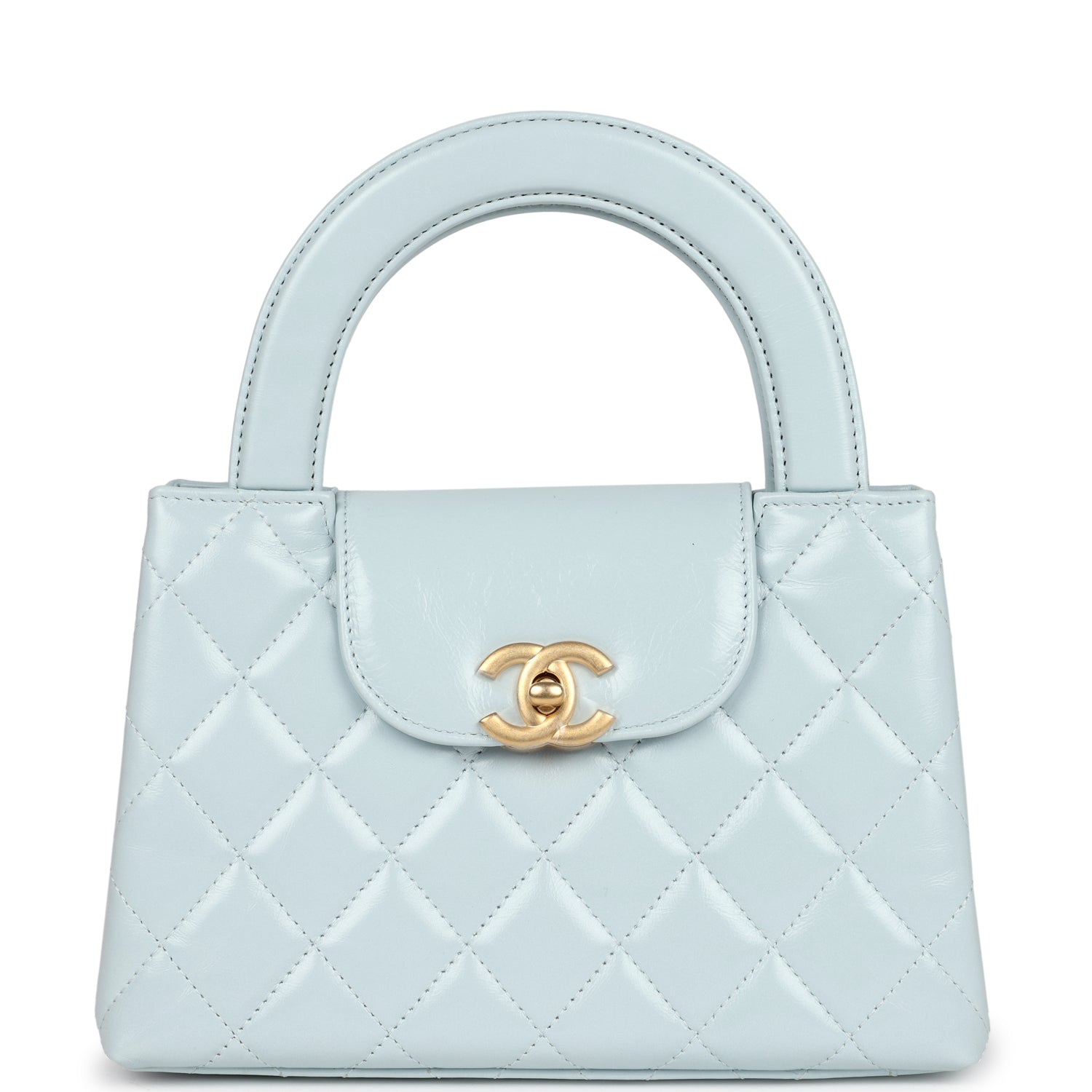 Chanel Small Kelly Shopper Light Blue Shiny Aged Calfskin Brushed Gold Hardware