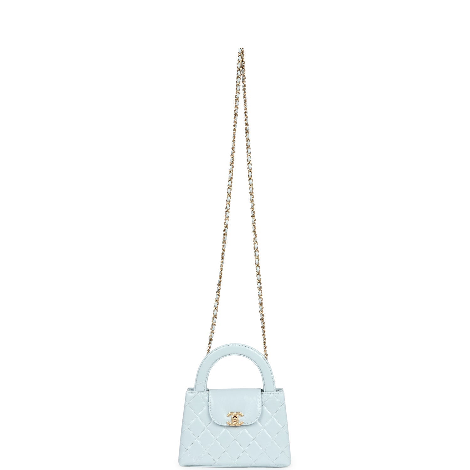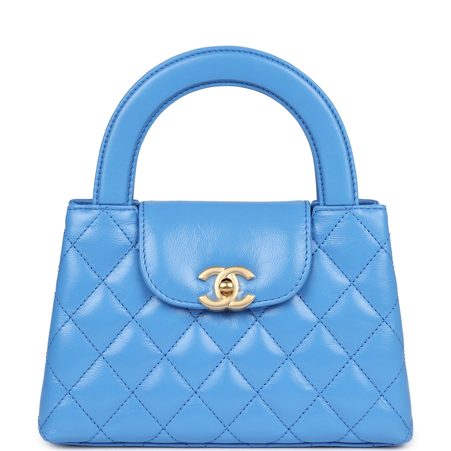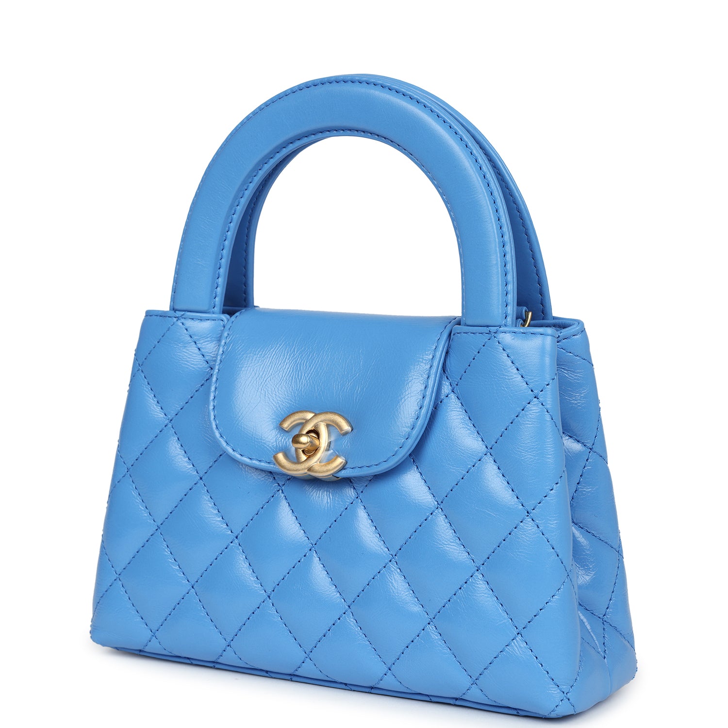 Chanel Small Kelly Shopper Light Blue Shiny Aged Calfskin Brushed Gold Hardware