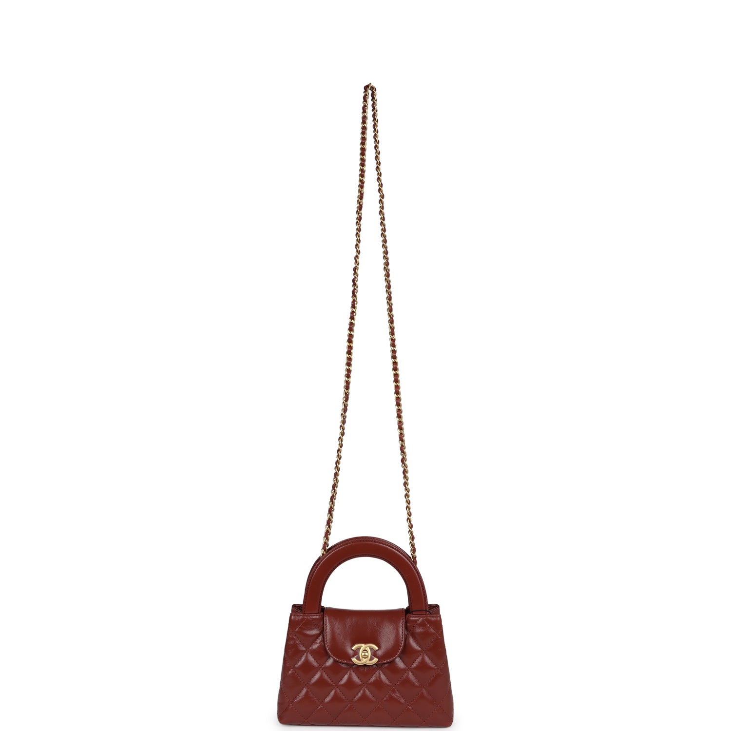 Chanel Small Kelly Shopper Dark Red Shiny Aged Calfskin Brushed Gold Hardware