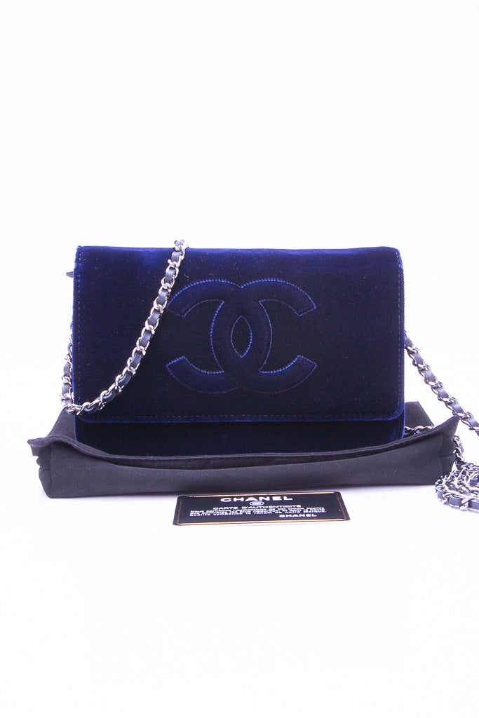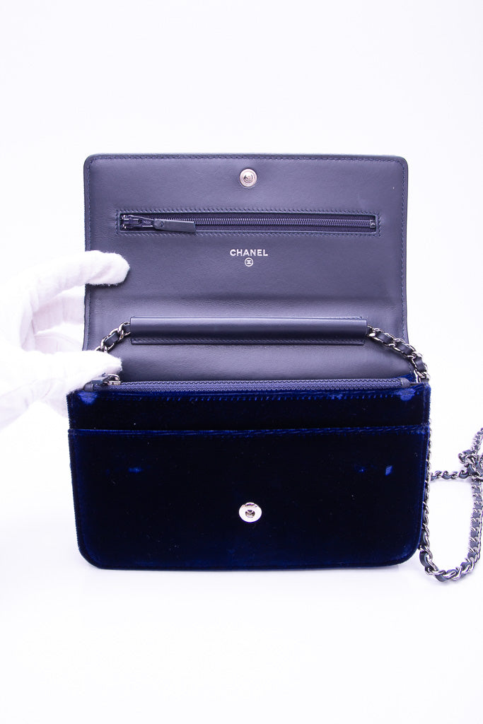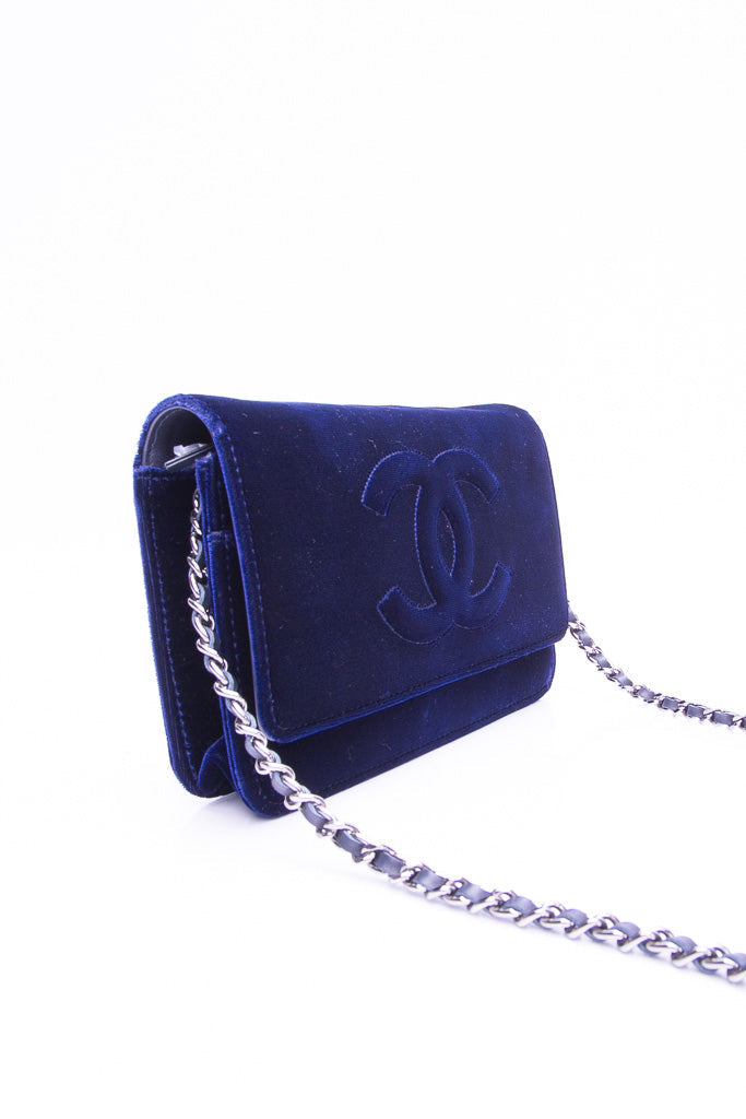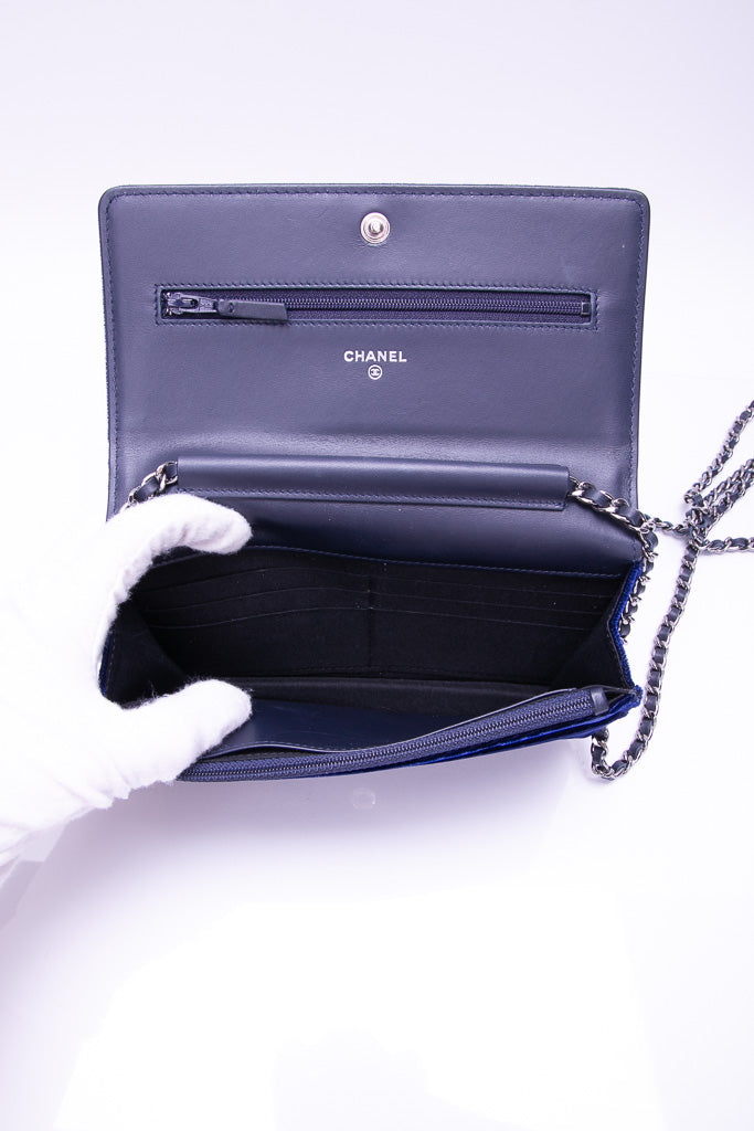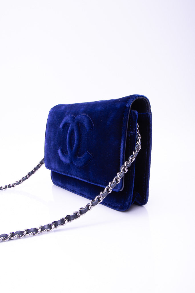 CHANEL Timeless CC Blue Velvet Wallet On Chain WOC