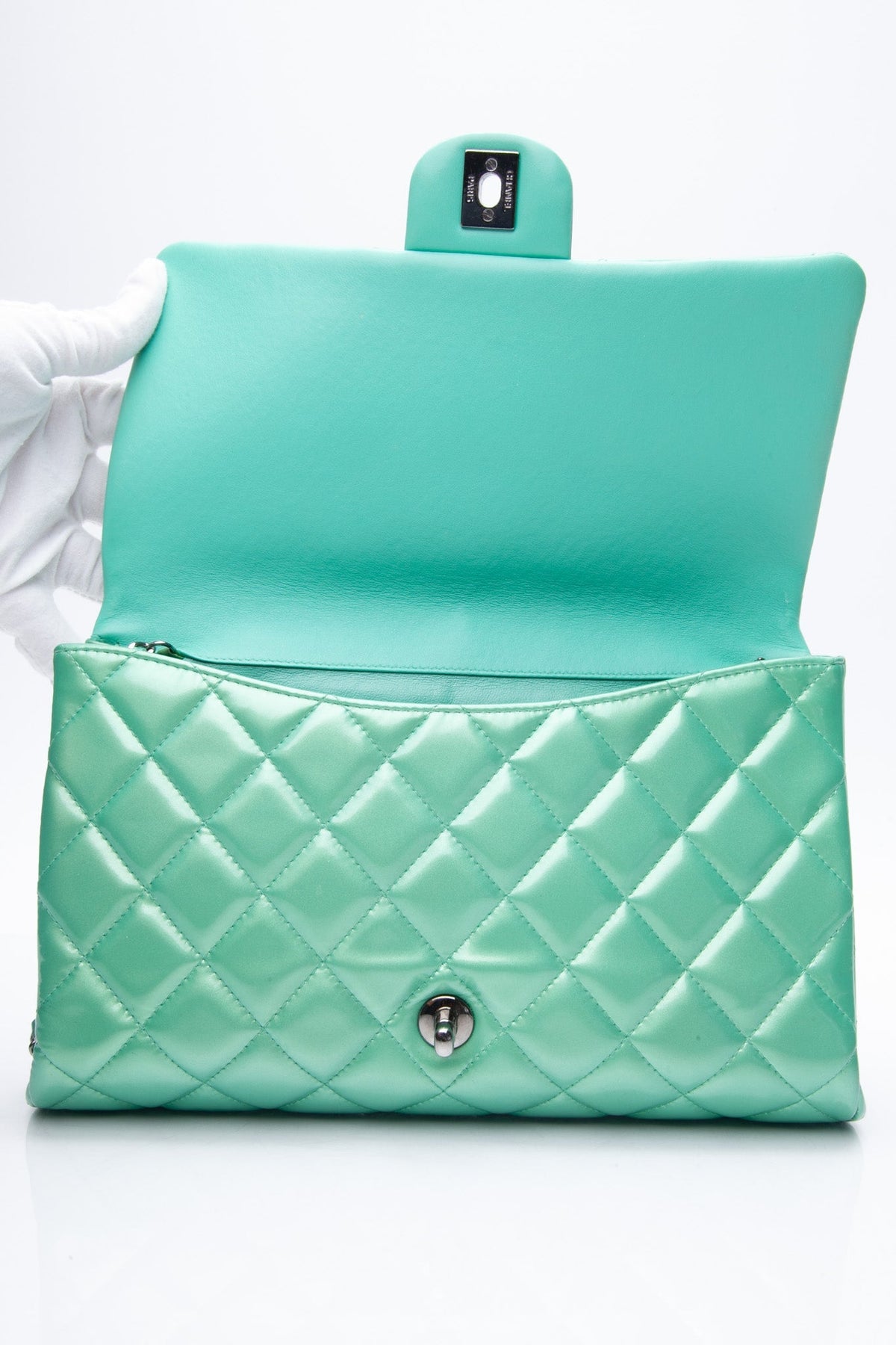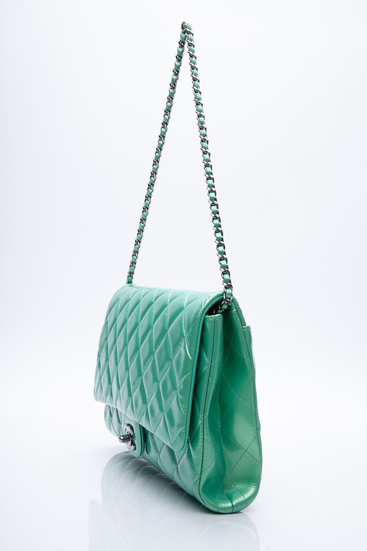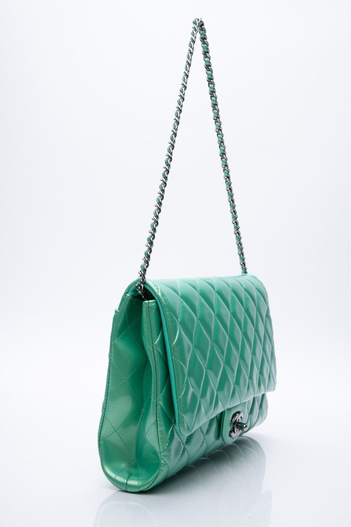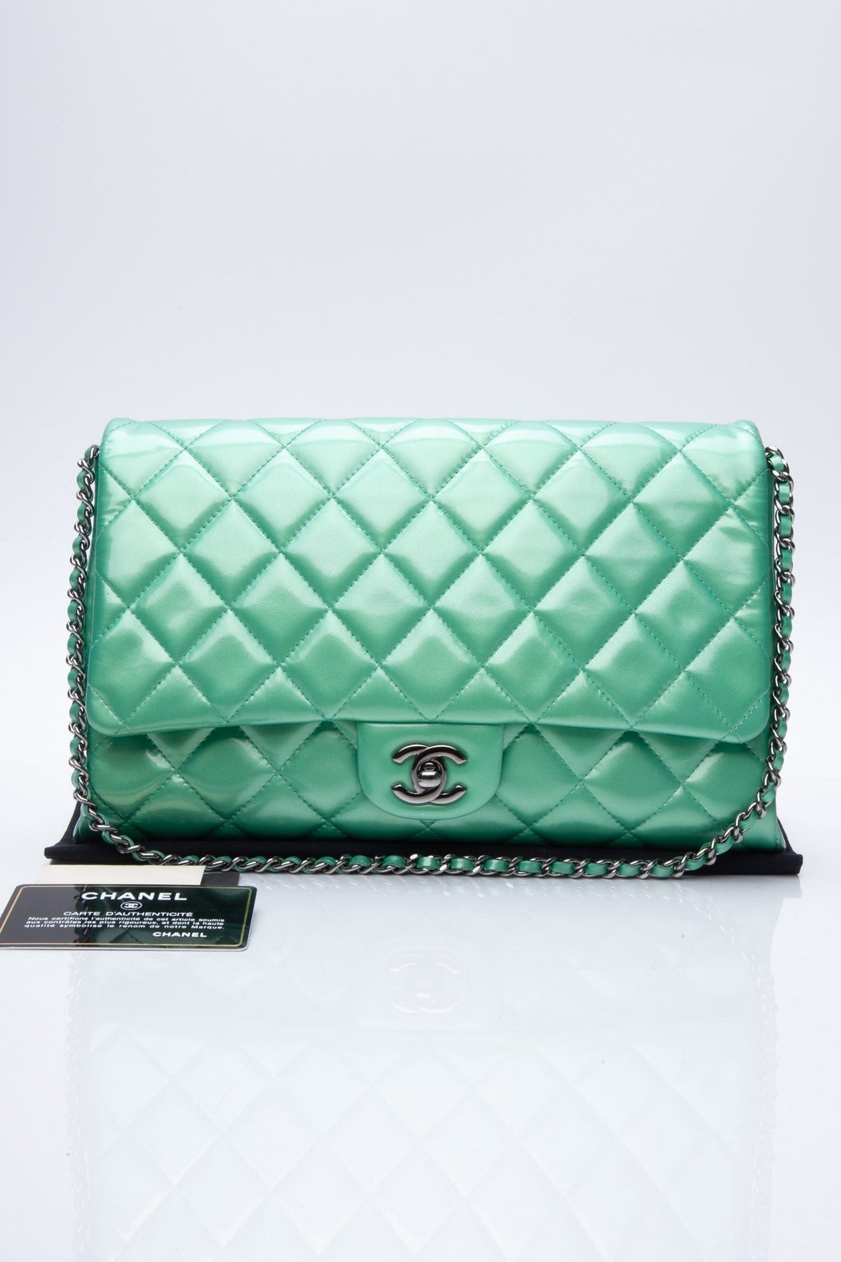 CHANEL Timeless Clutch On Chain Patent Leather Green