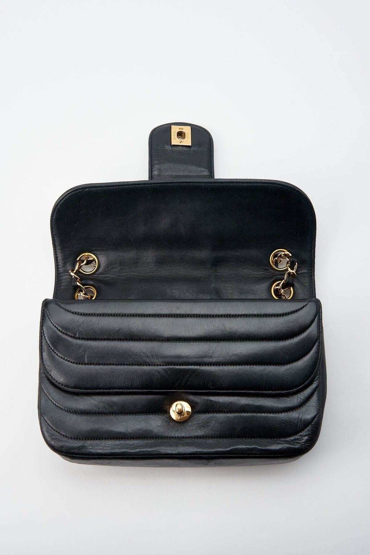 Chanel Vintage Black Single Flap with 24k gold plated hardware and V design